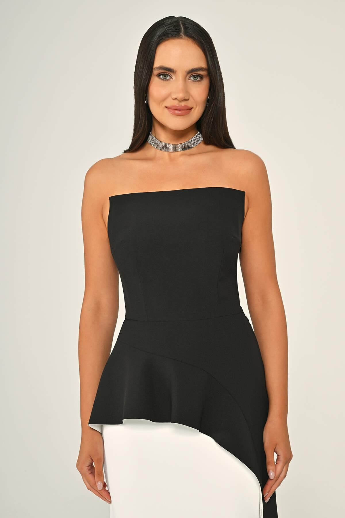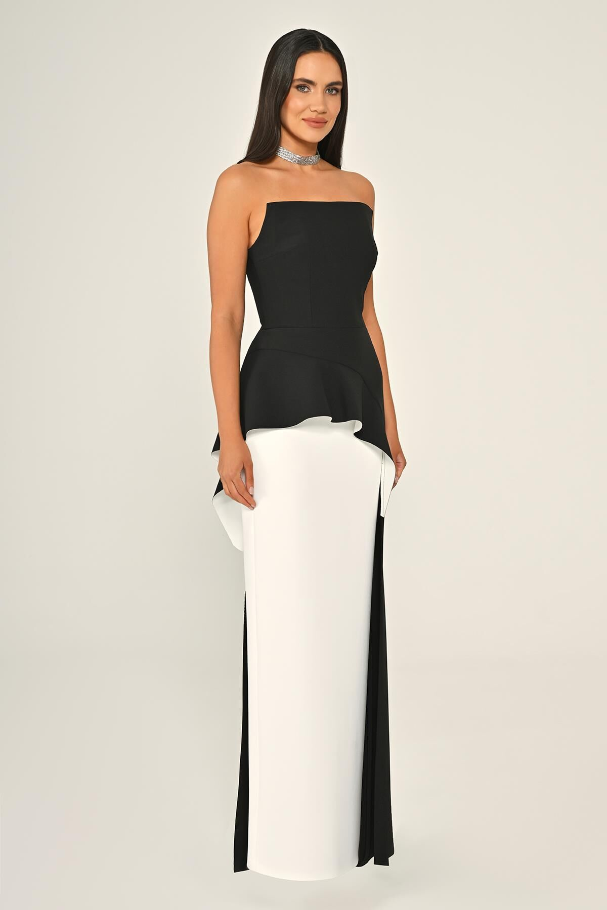 فستان سهرة طويل من الكريب بدون حمالات ومكشكش من ألفا بيتا 25Y6955
