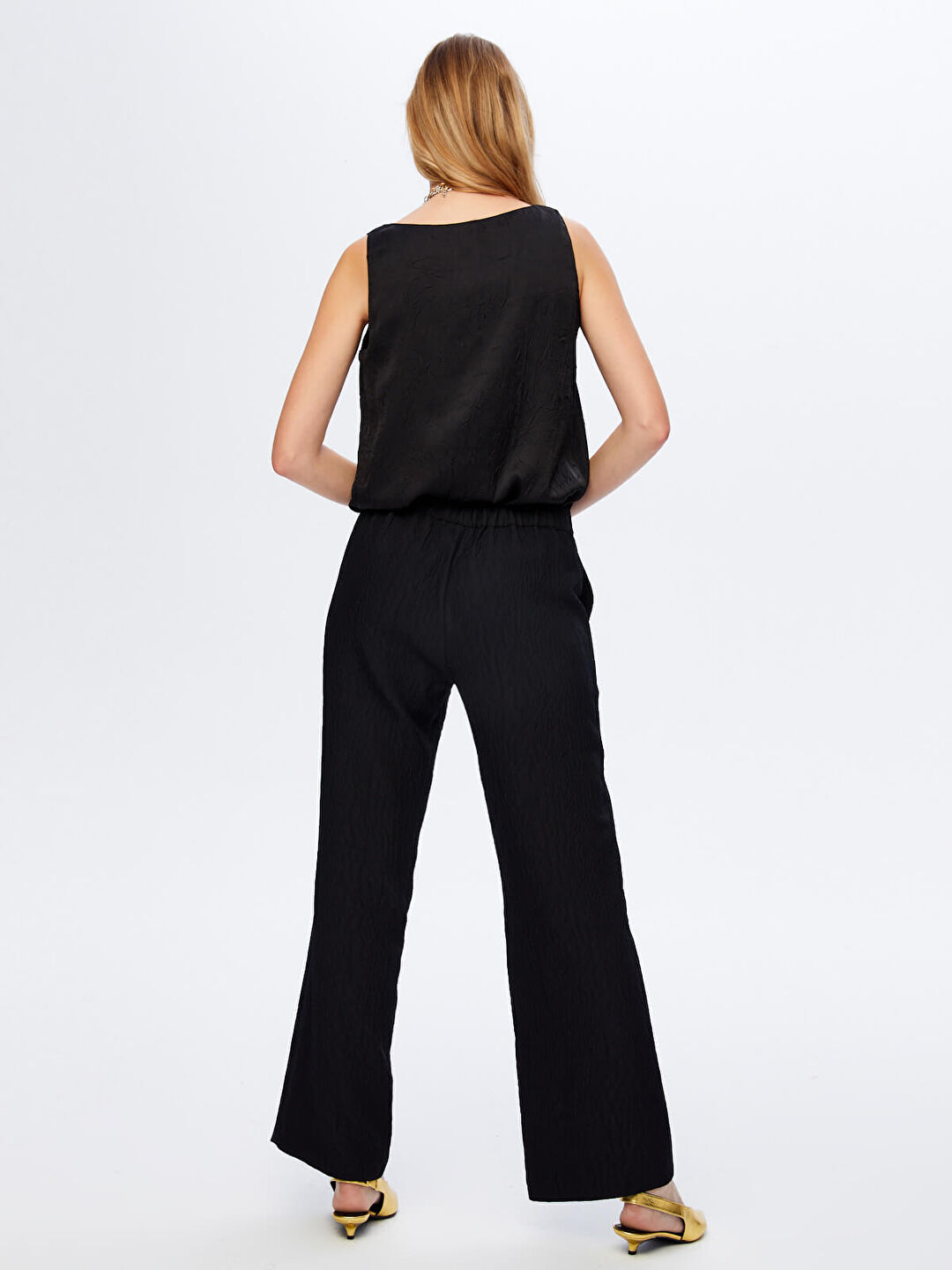 بنطال واسع الساقين بخصر مطاطي ونسيج ذاتي من تصميم فائق سونميز