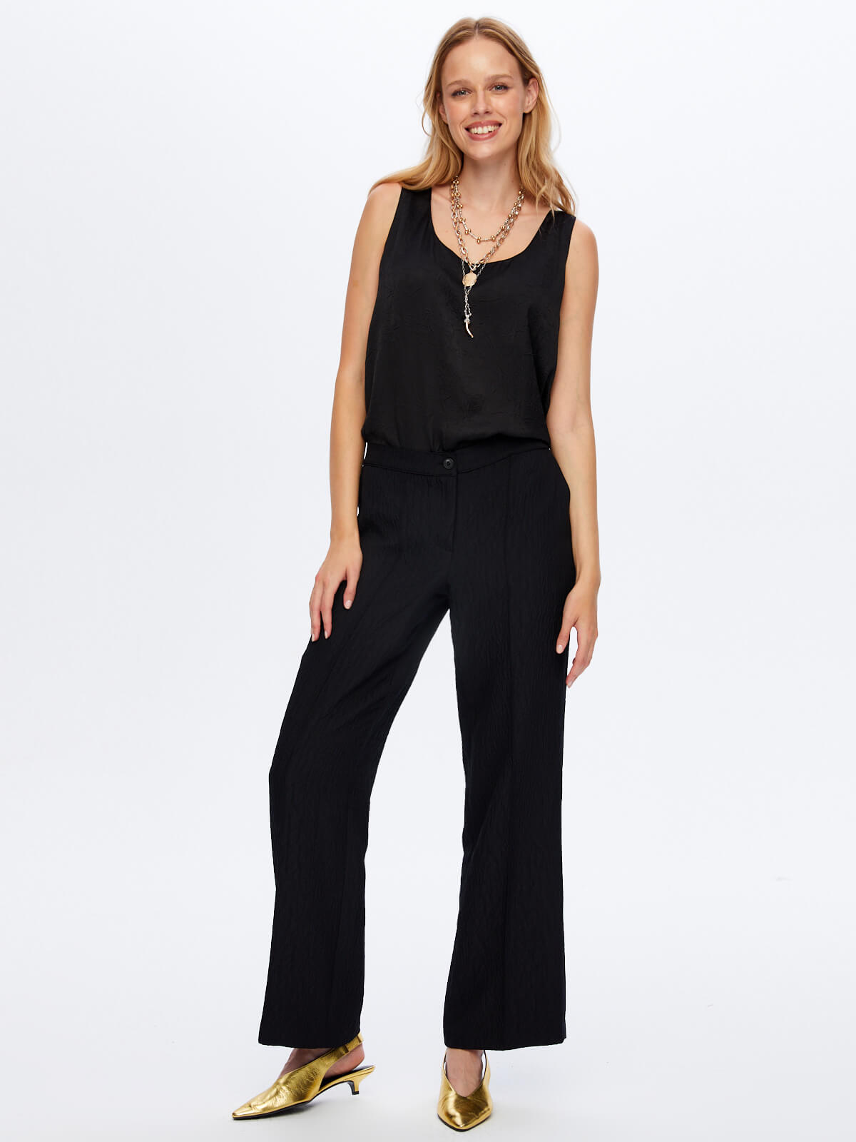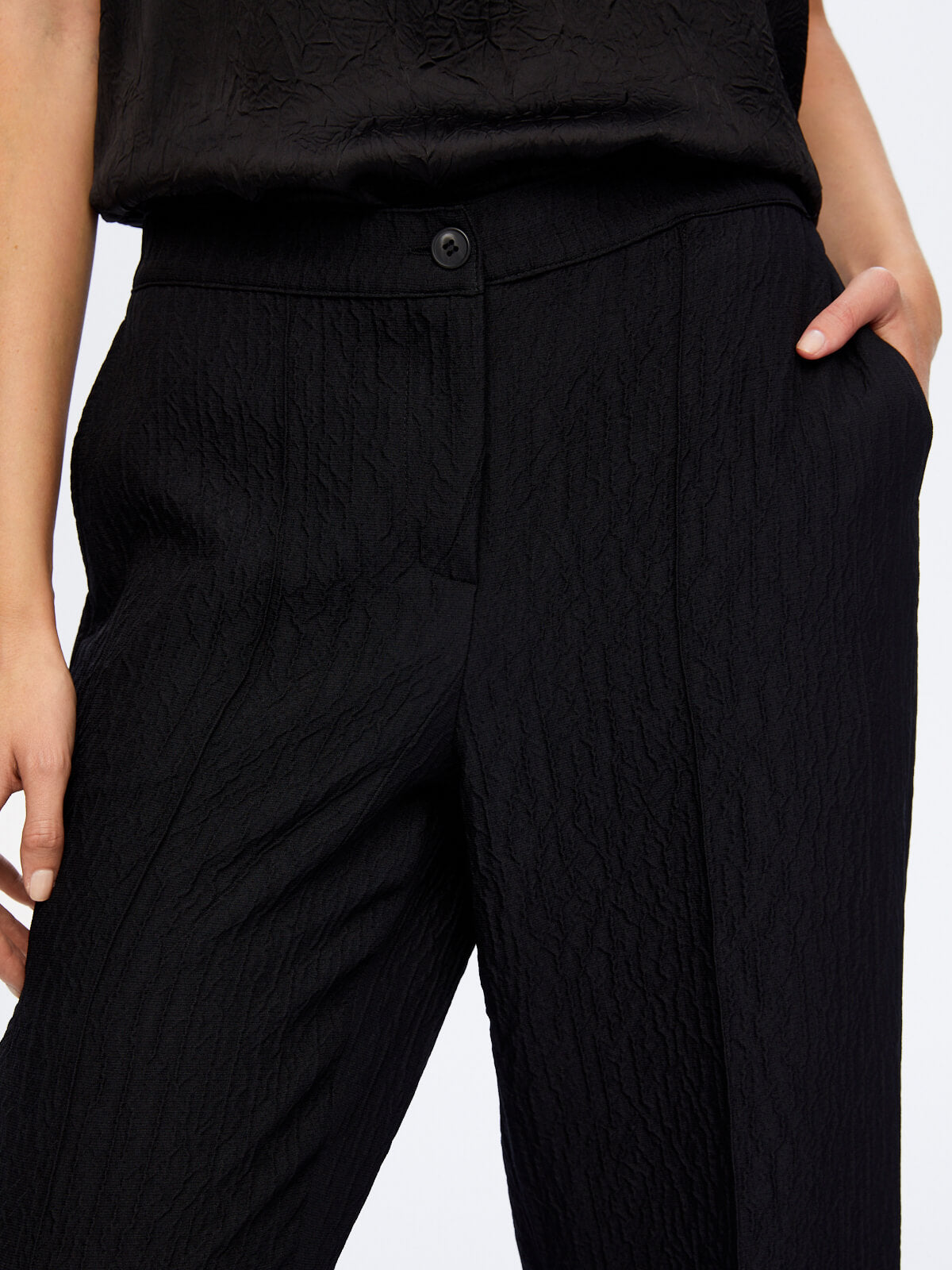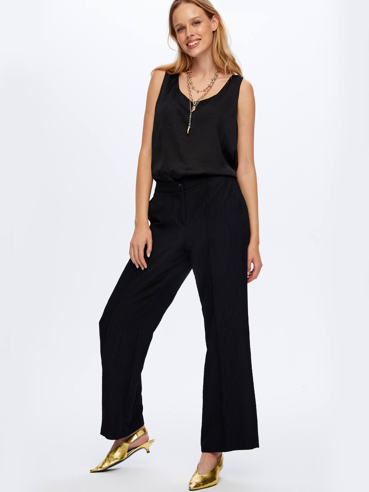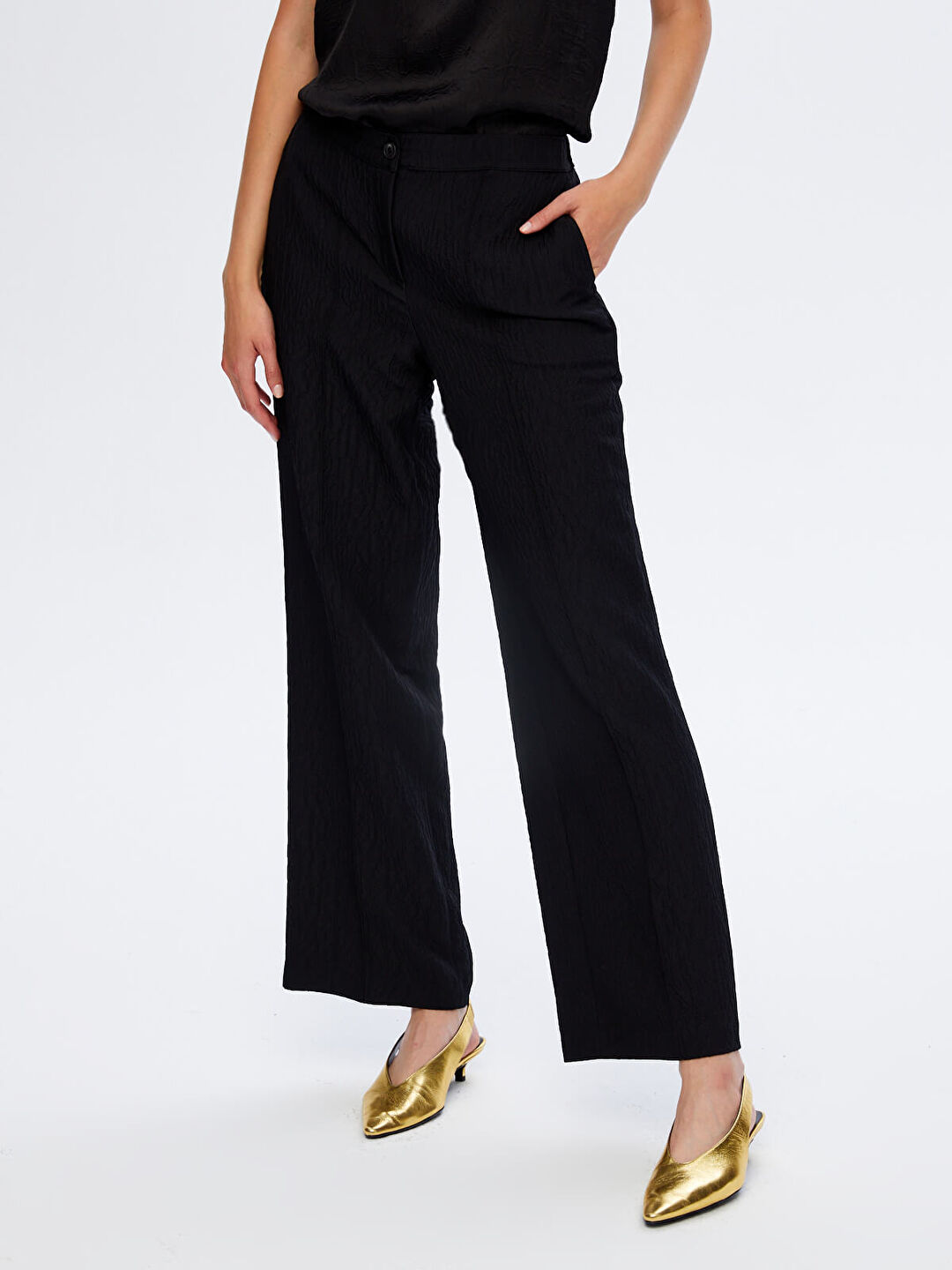 اسم المنتج: بنطال واسع الساقين بخصر مطاطي ونسيج ذاتي W26PNT018