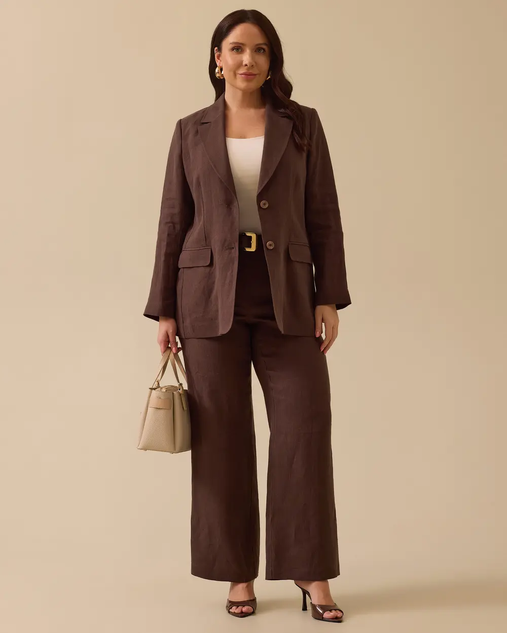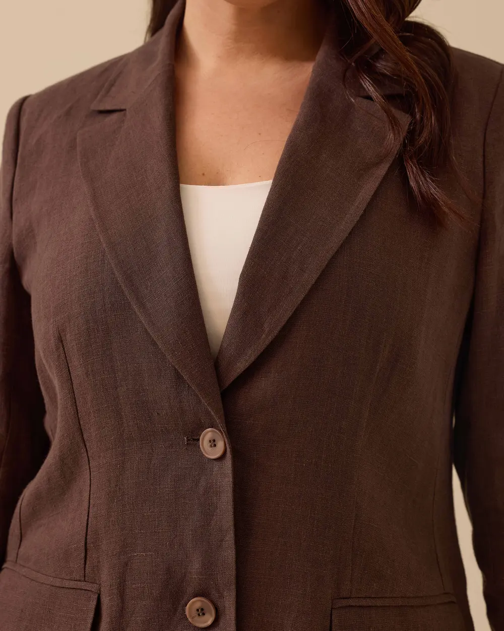 تتميز هذه السترة الكتانية ذات المقاسات الكبيرة والمزودة بزرين بنسيجها الخفيف الذي يوفر الراحة. وتضفي تفاصيل الأزرار والجيوب لمسة عصرية.