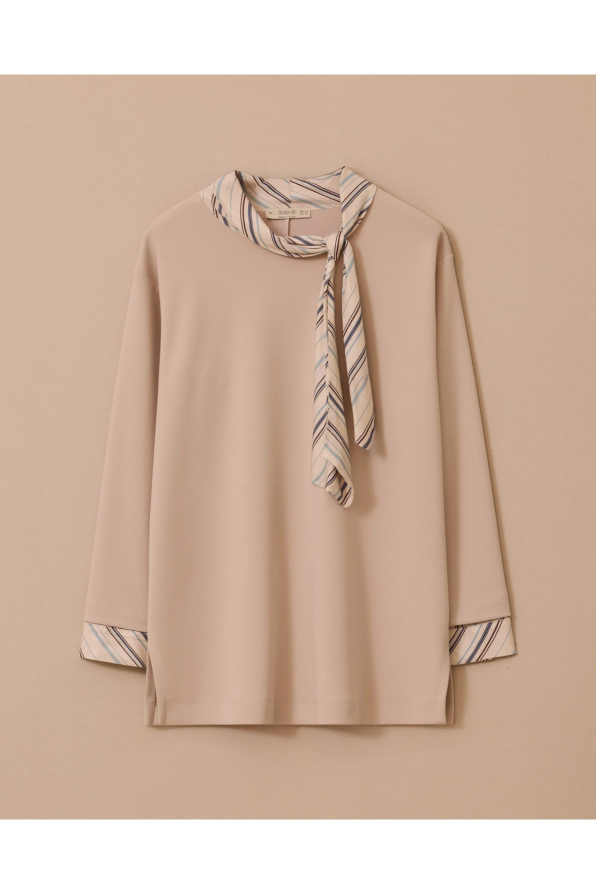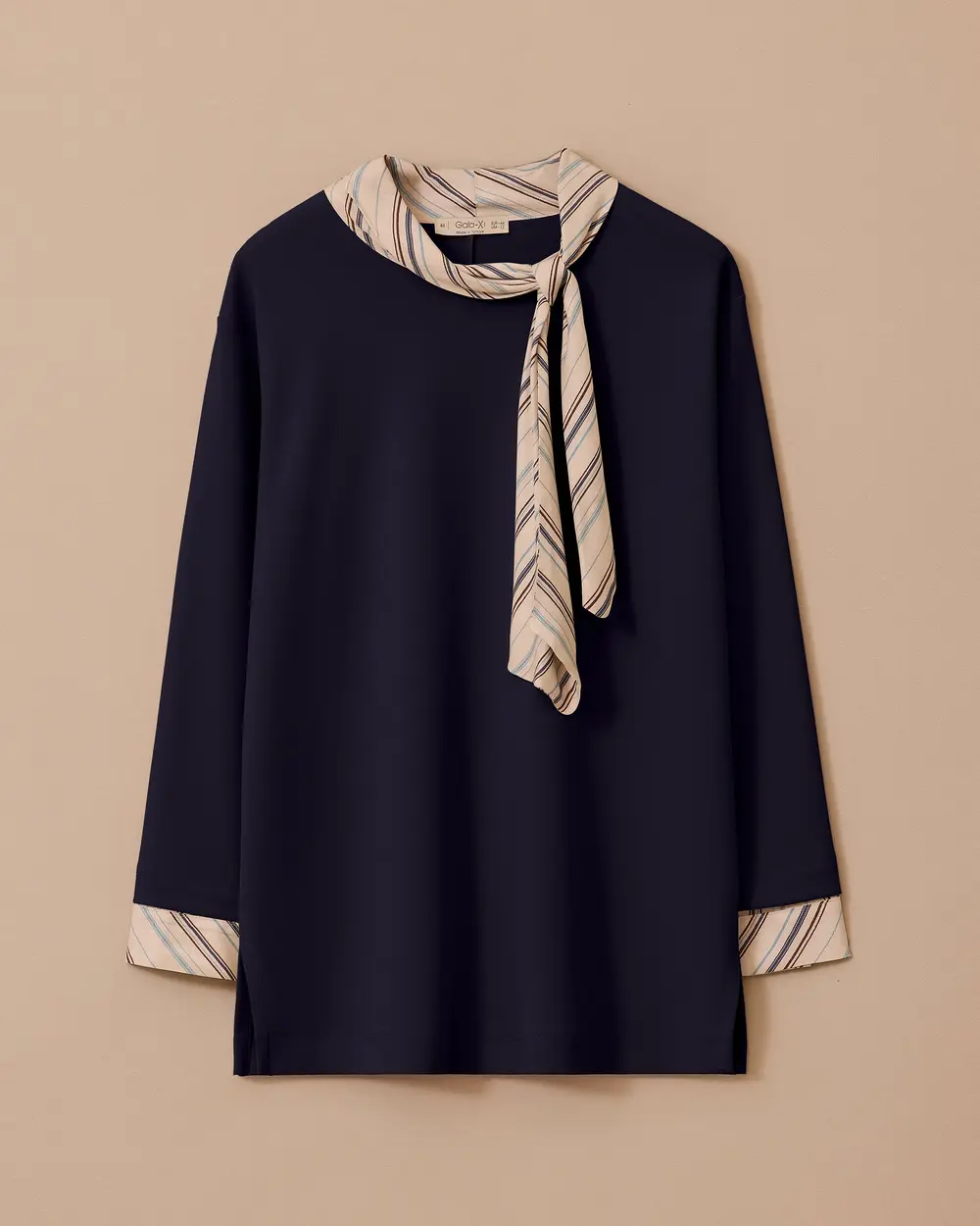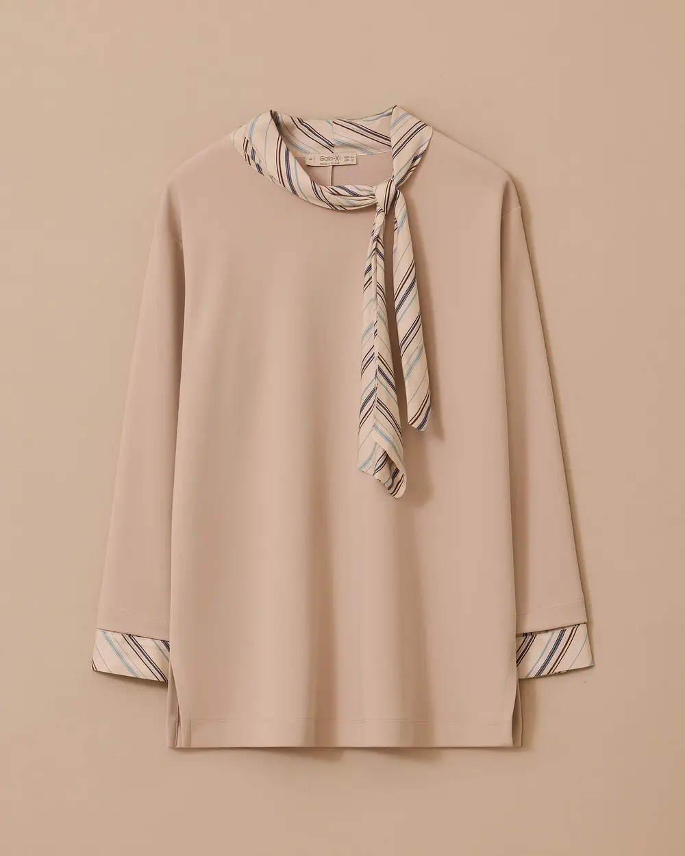 تضفي هذه البلوزة ذات الياقة المزينة بوشاح، والمصممة بمقاسات كبيرة، لمسة من الأناقة على إطلالتك بفضل تصميم الياقة الأنيق ومظهرها الراقي.