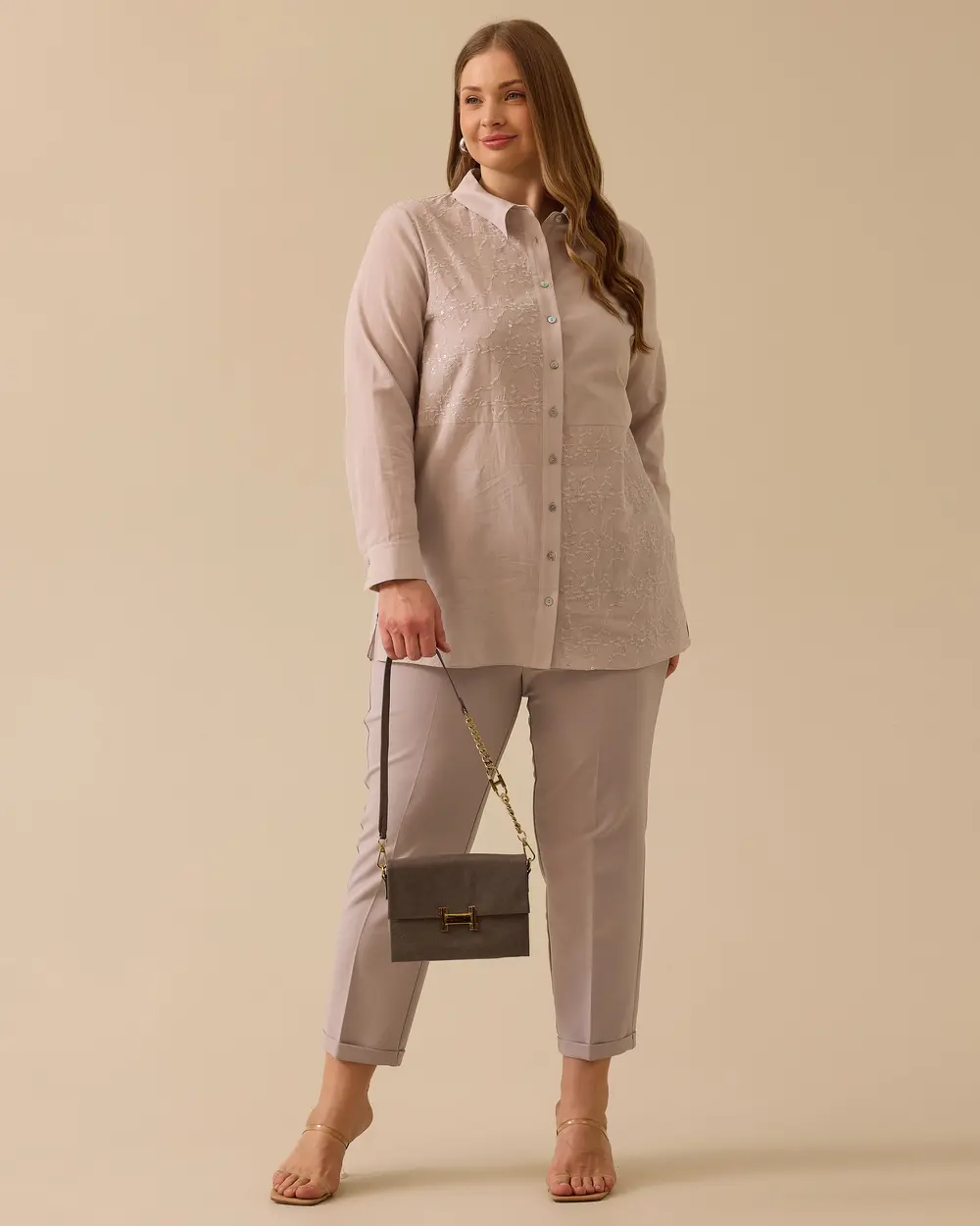 تونيك مطرز بمقاسات كبيرة مزين بالترتر، من تصميم جالا-شي