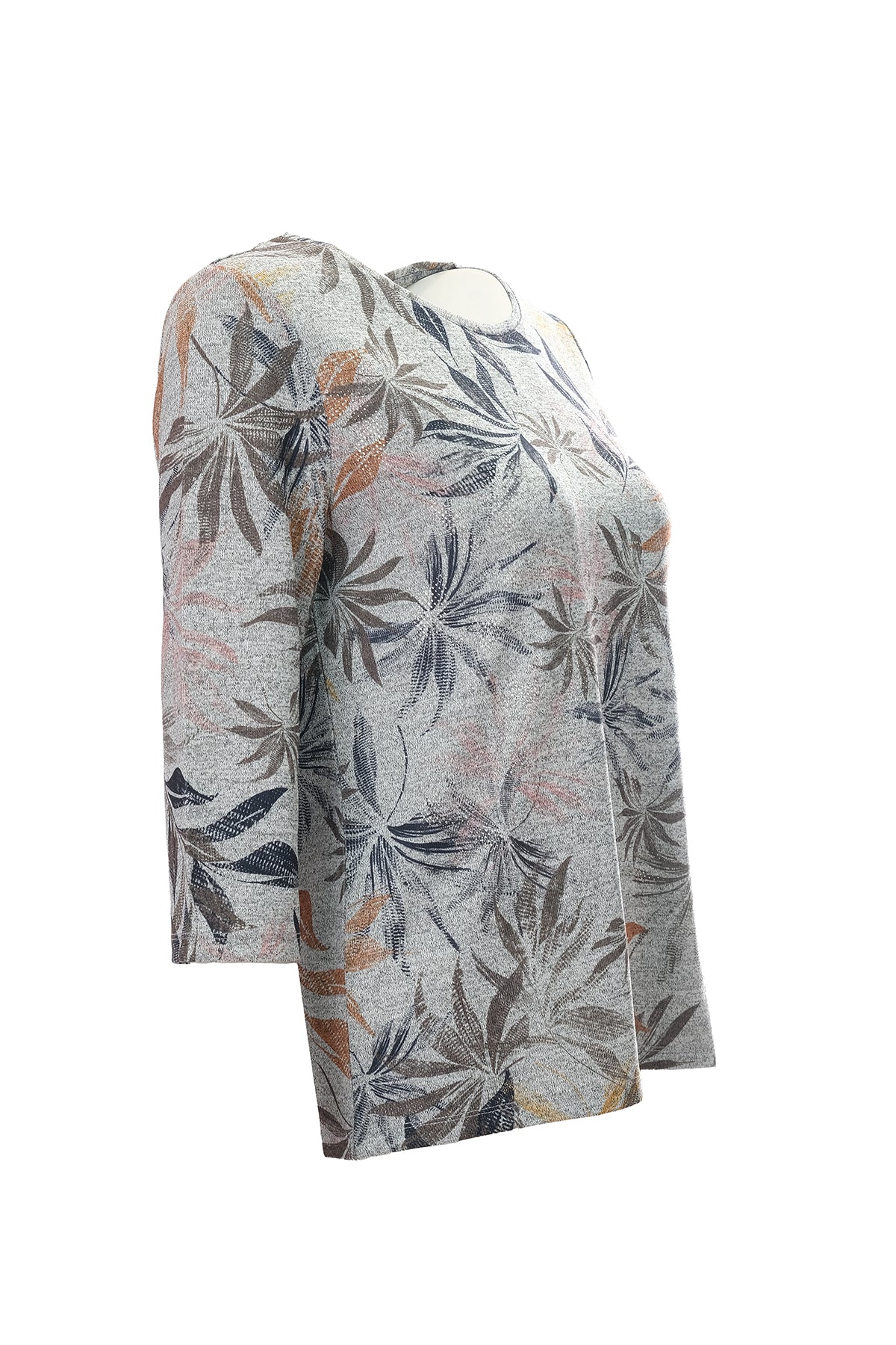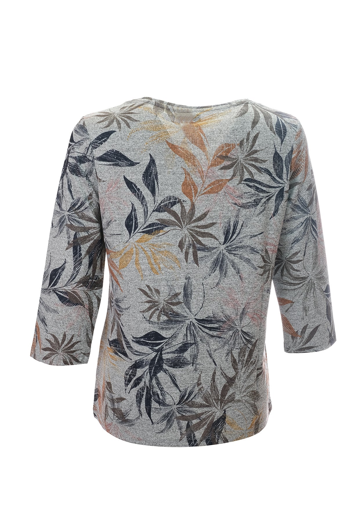 بلوزة نسائية من كانيل بتصميم بسيط، بأكمام ثلاثة أرباع وياقة مثلثة - بنقشة زهور