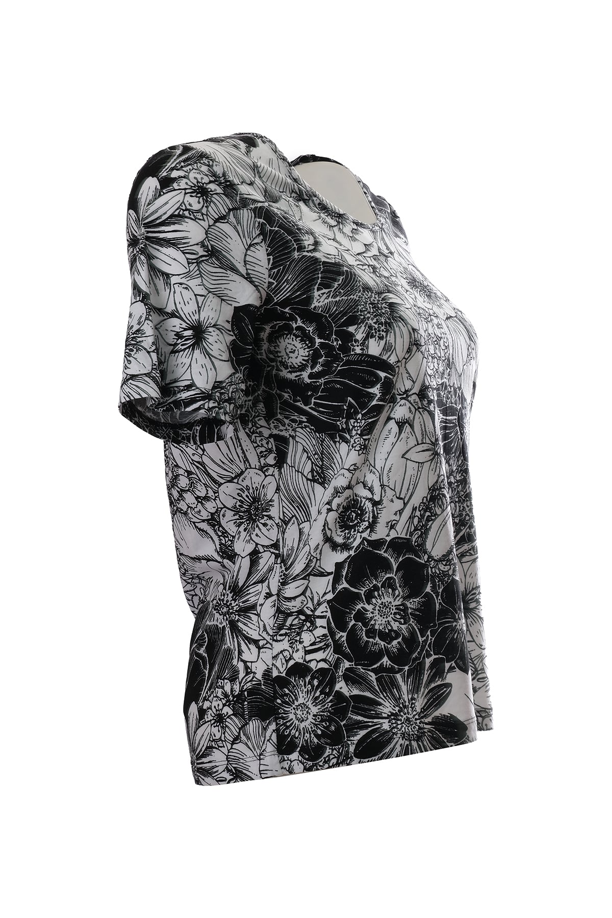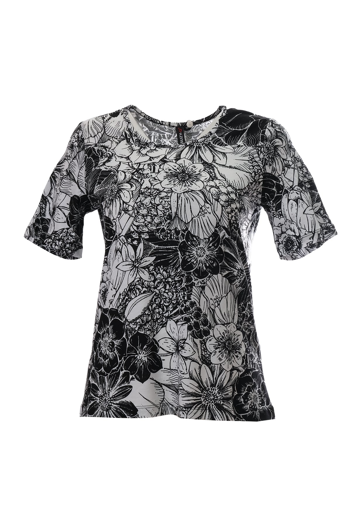 تيشيرت نسائي من كانيل، بتصميم بسيط وطبعة زهور، بأكمام قصيرة وقصة عادية - مناسب للإطلالات اليومية