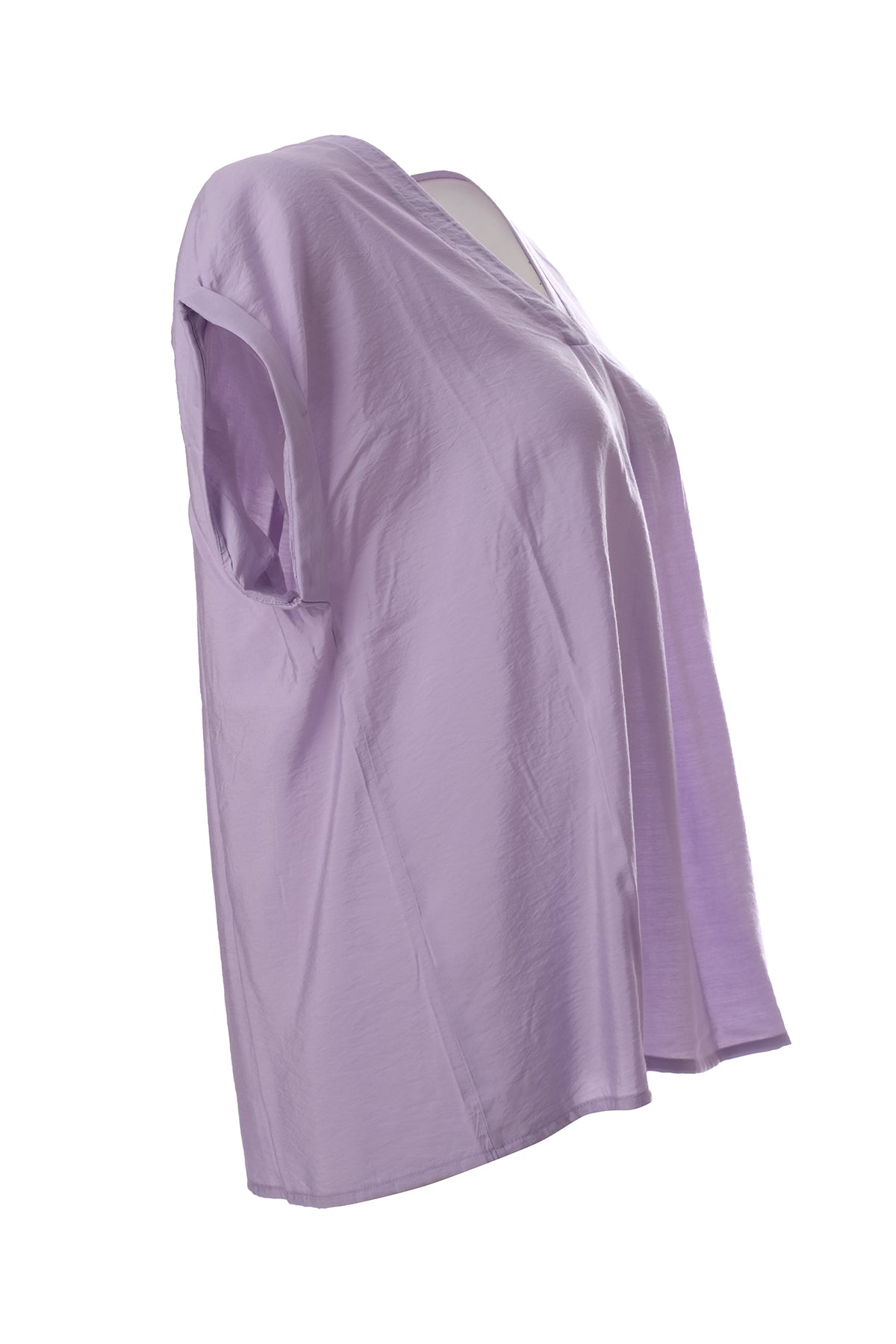 بلوزة نسائية واسعة ذات ياقة على شكل حرف V وأكمام قصيرة بتصميم بسيط من كانيل
