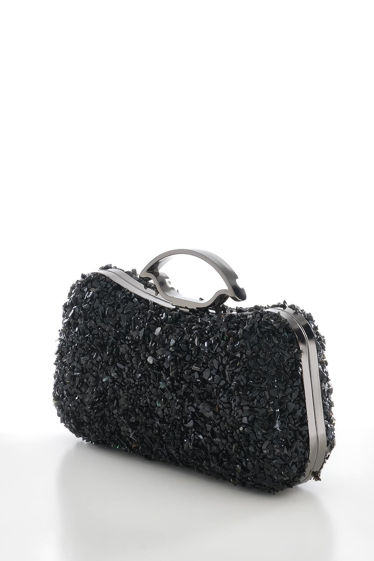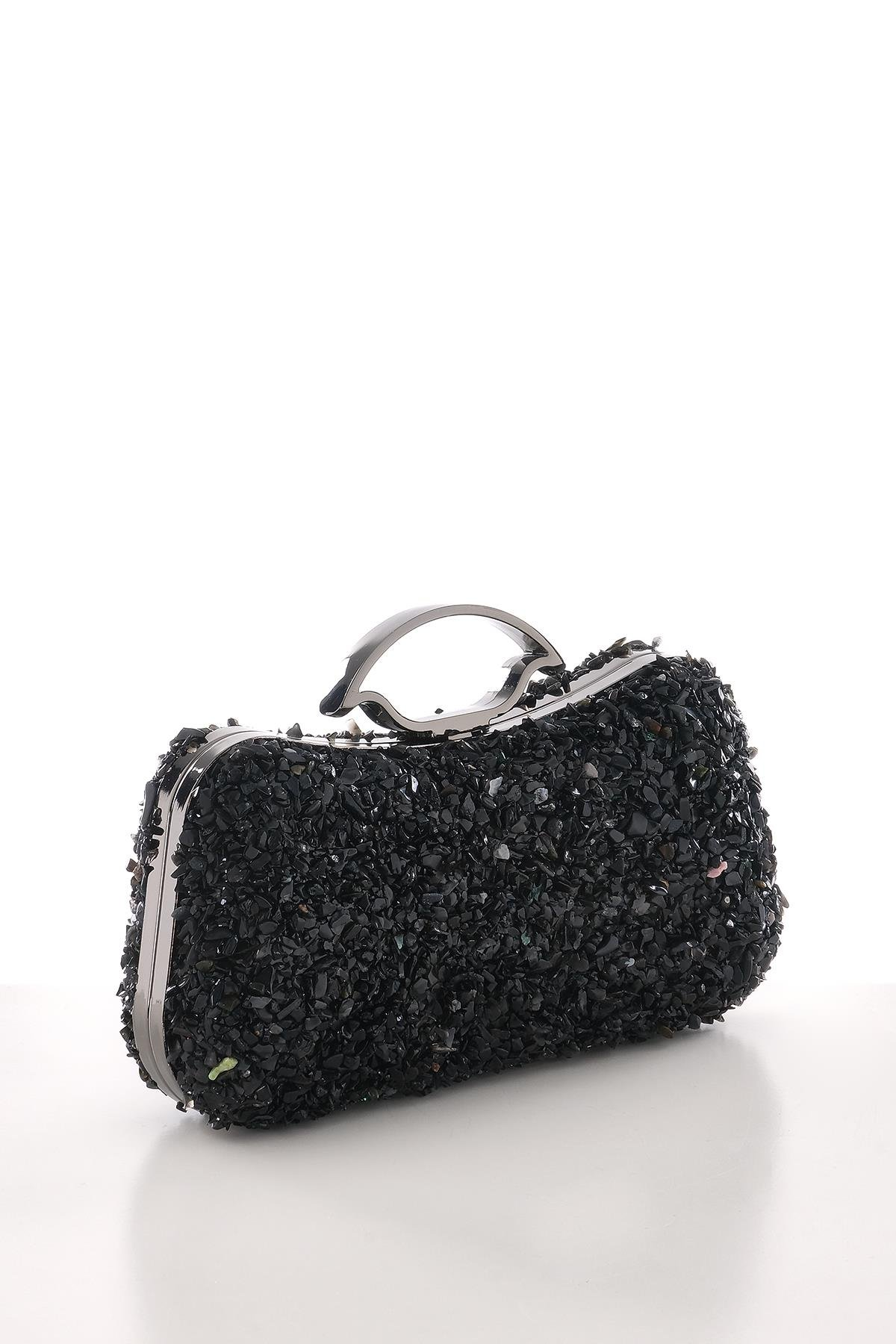 حقيبة سهرة أنيقة بتصميم انفجاري مع حزام سلسلة من الأحجار الطبيعية