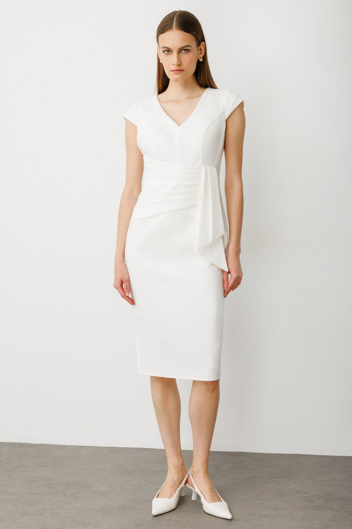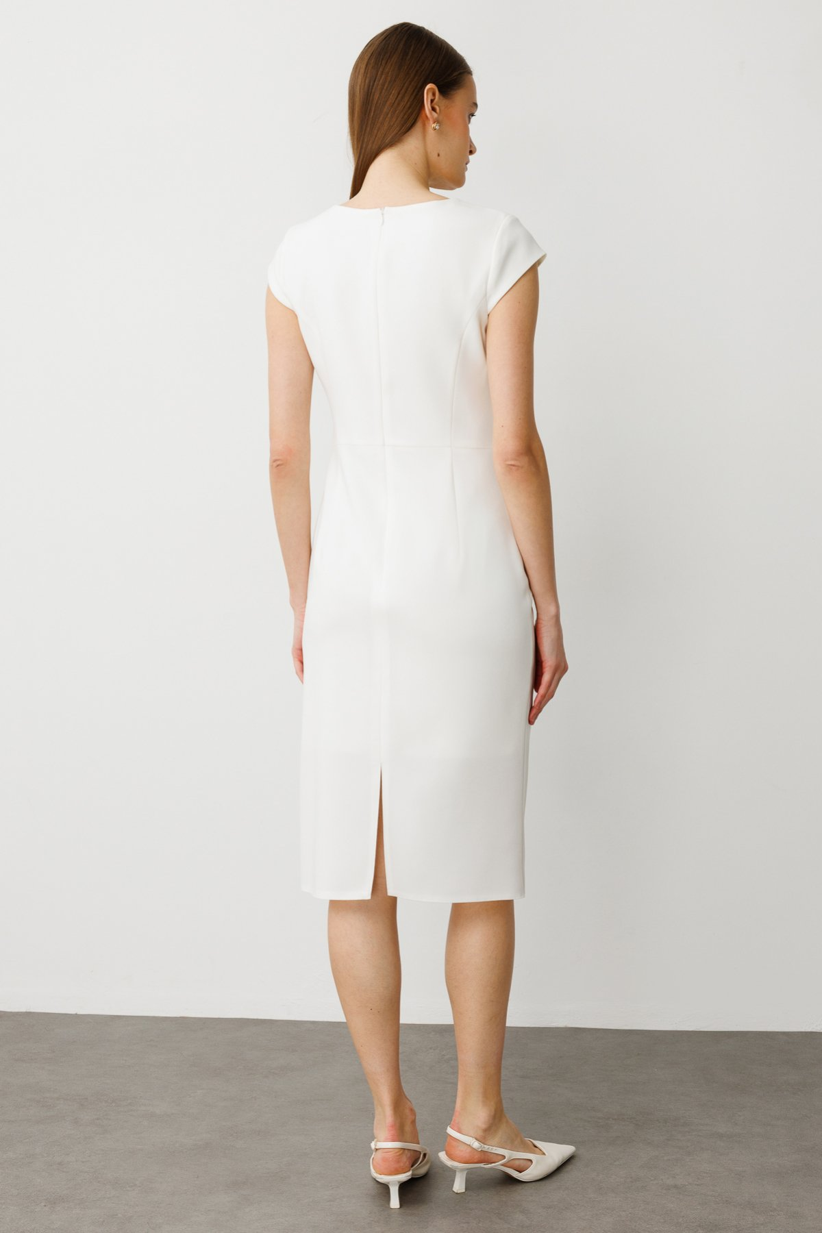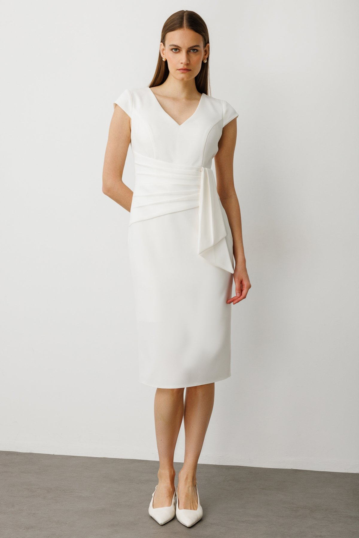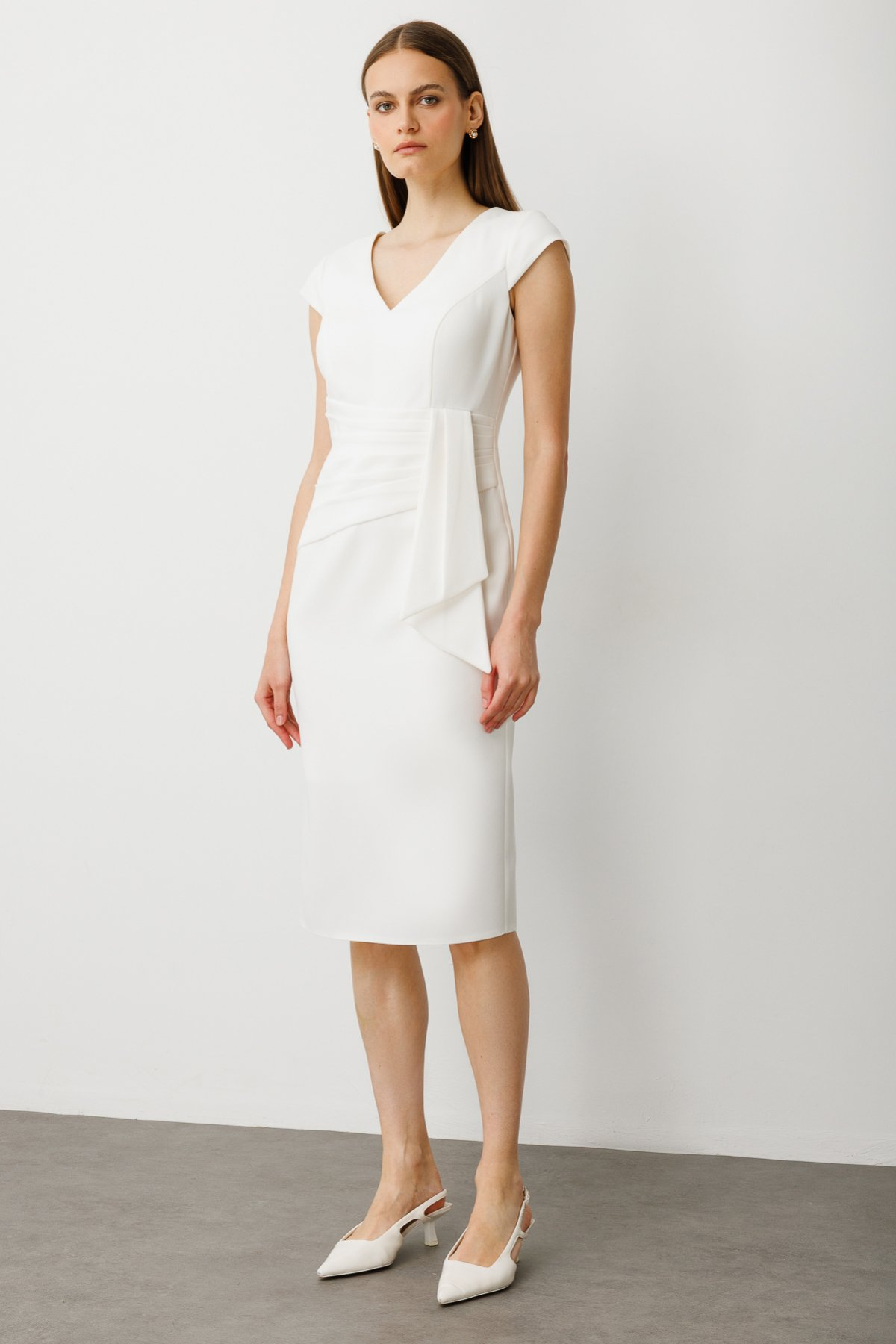 فستان سهرة متوسط الطول بحزام من إيكول