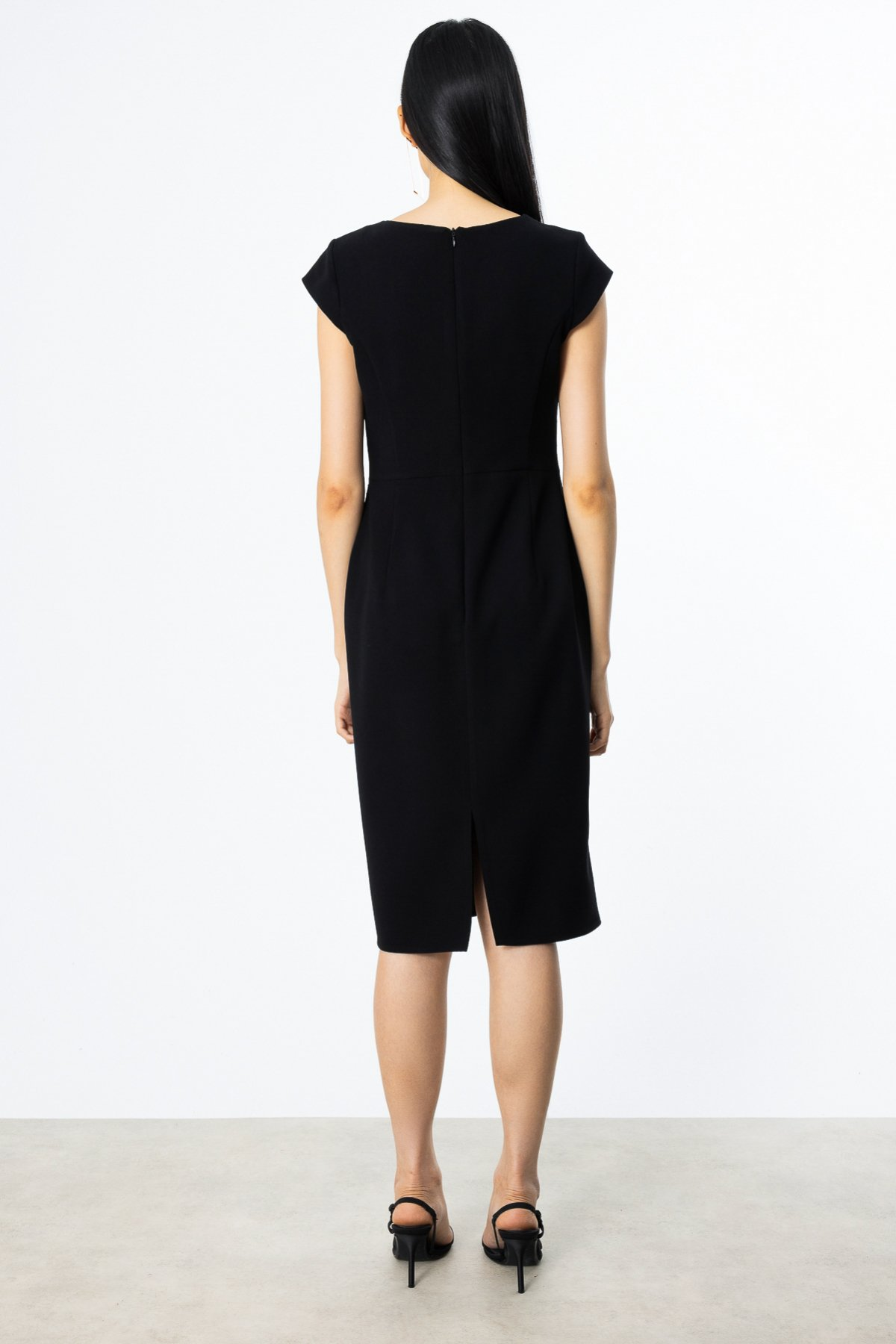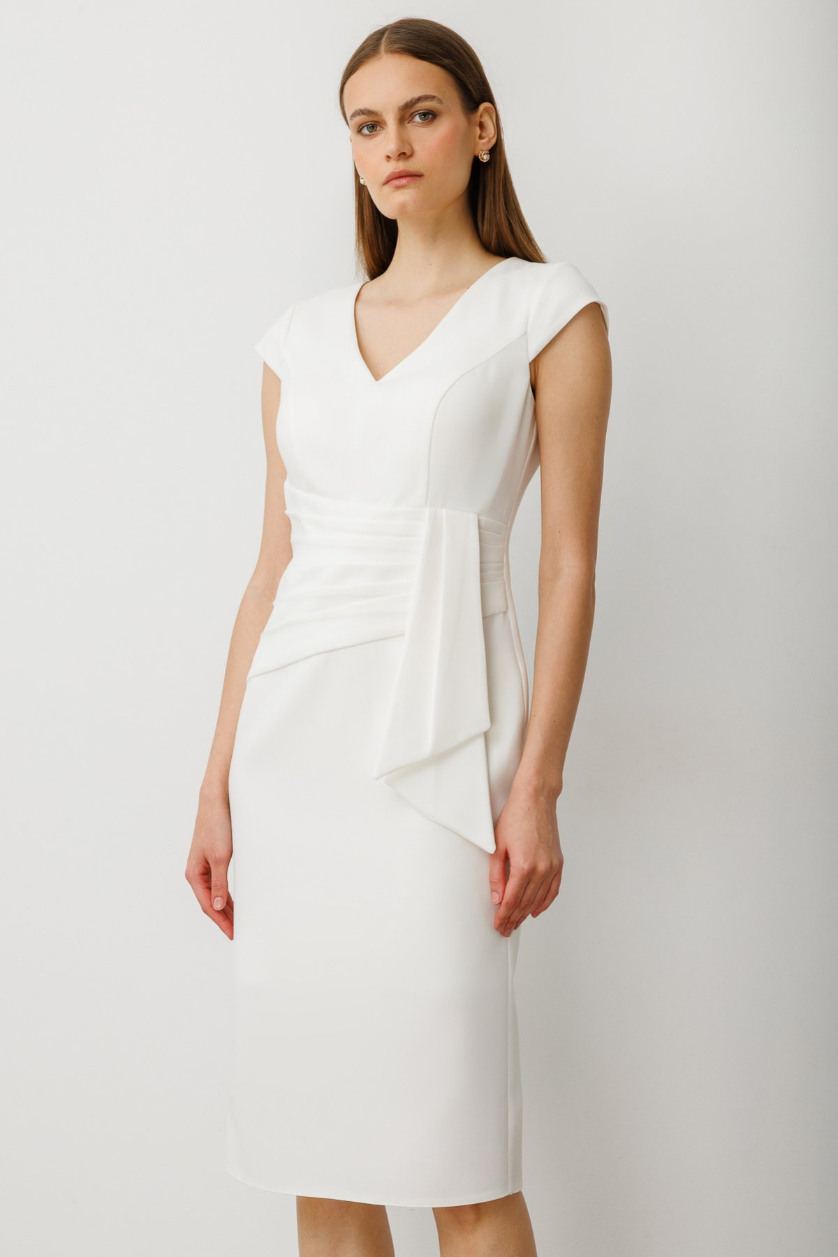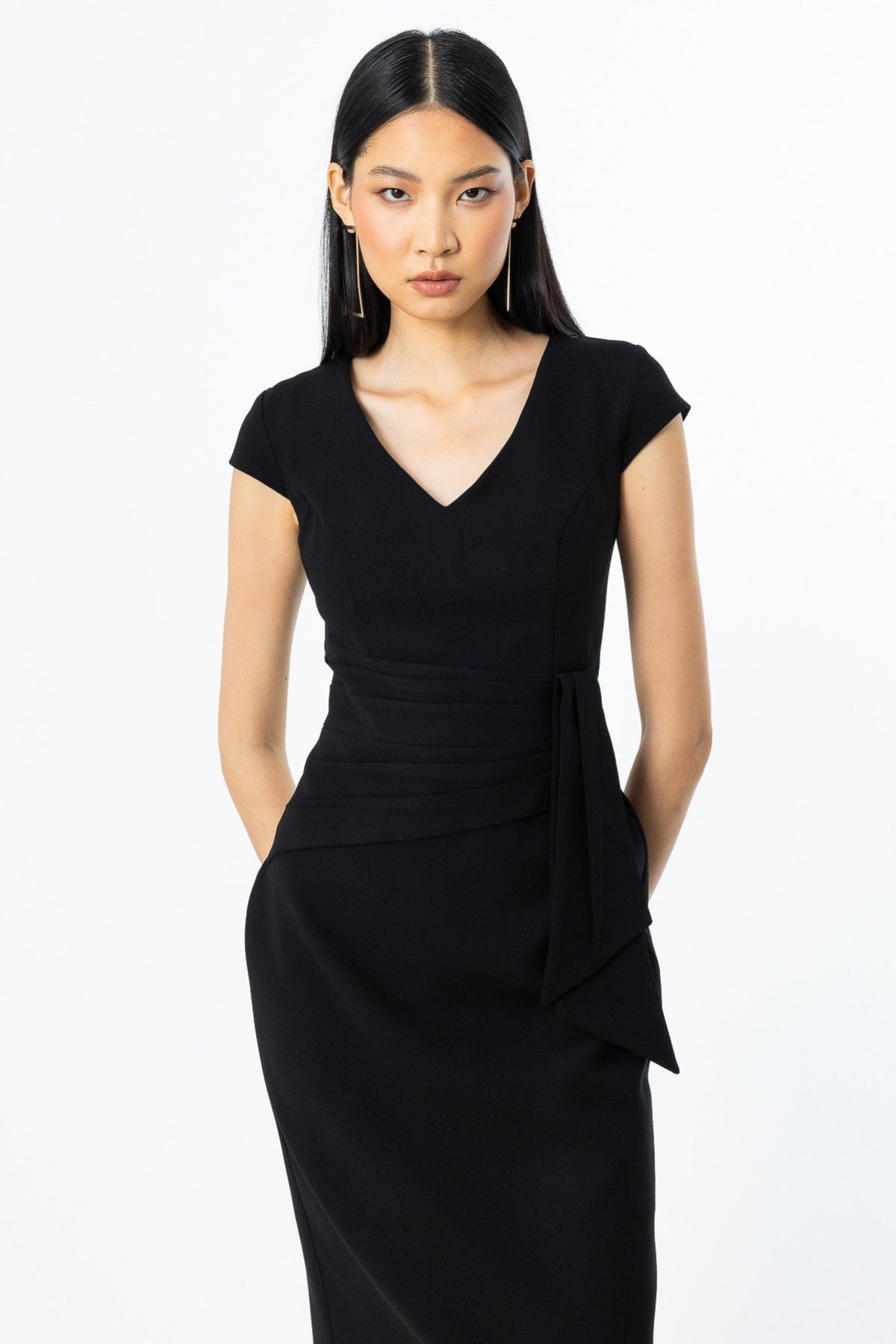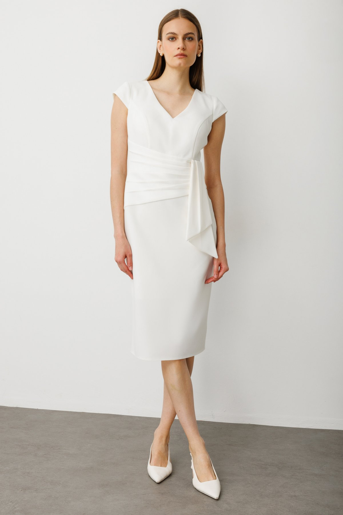 فستان سهرة متوسط الطول بحزام من إيكول