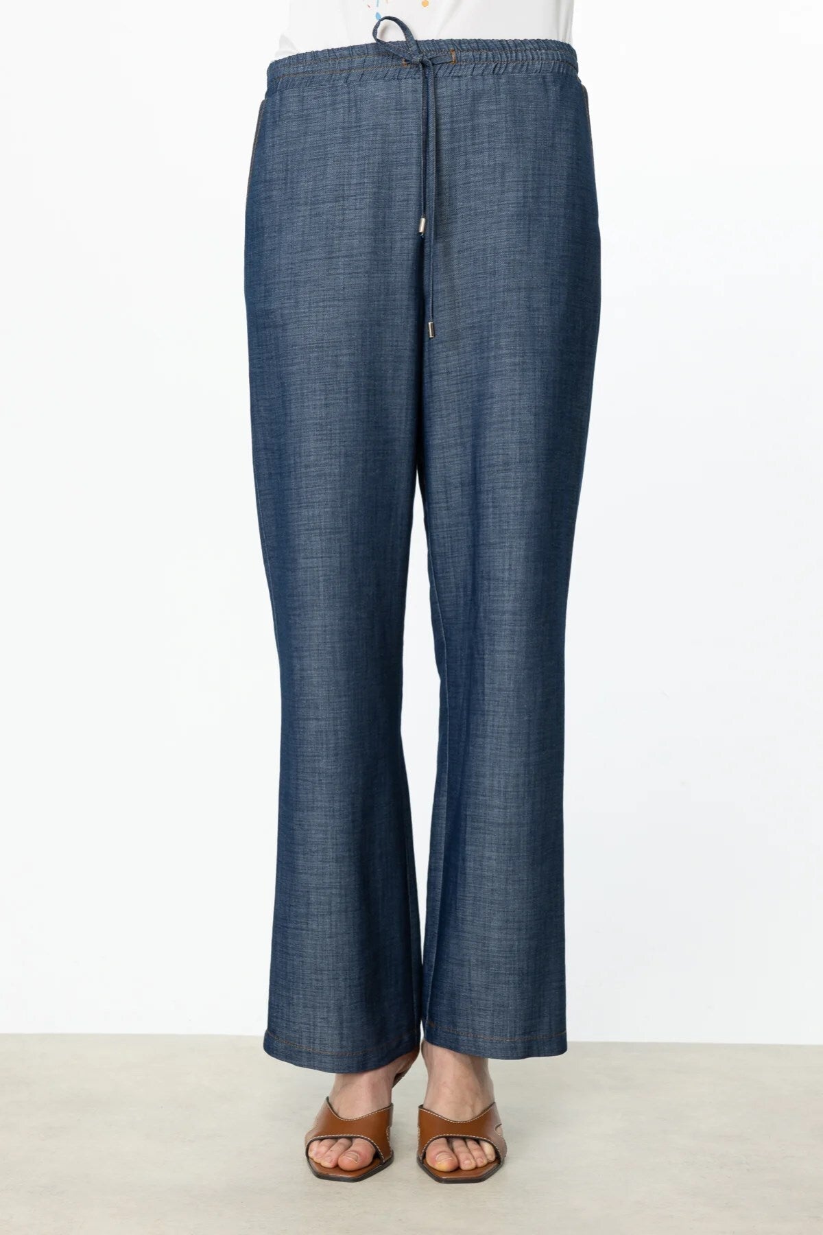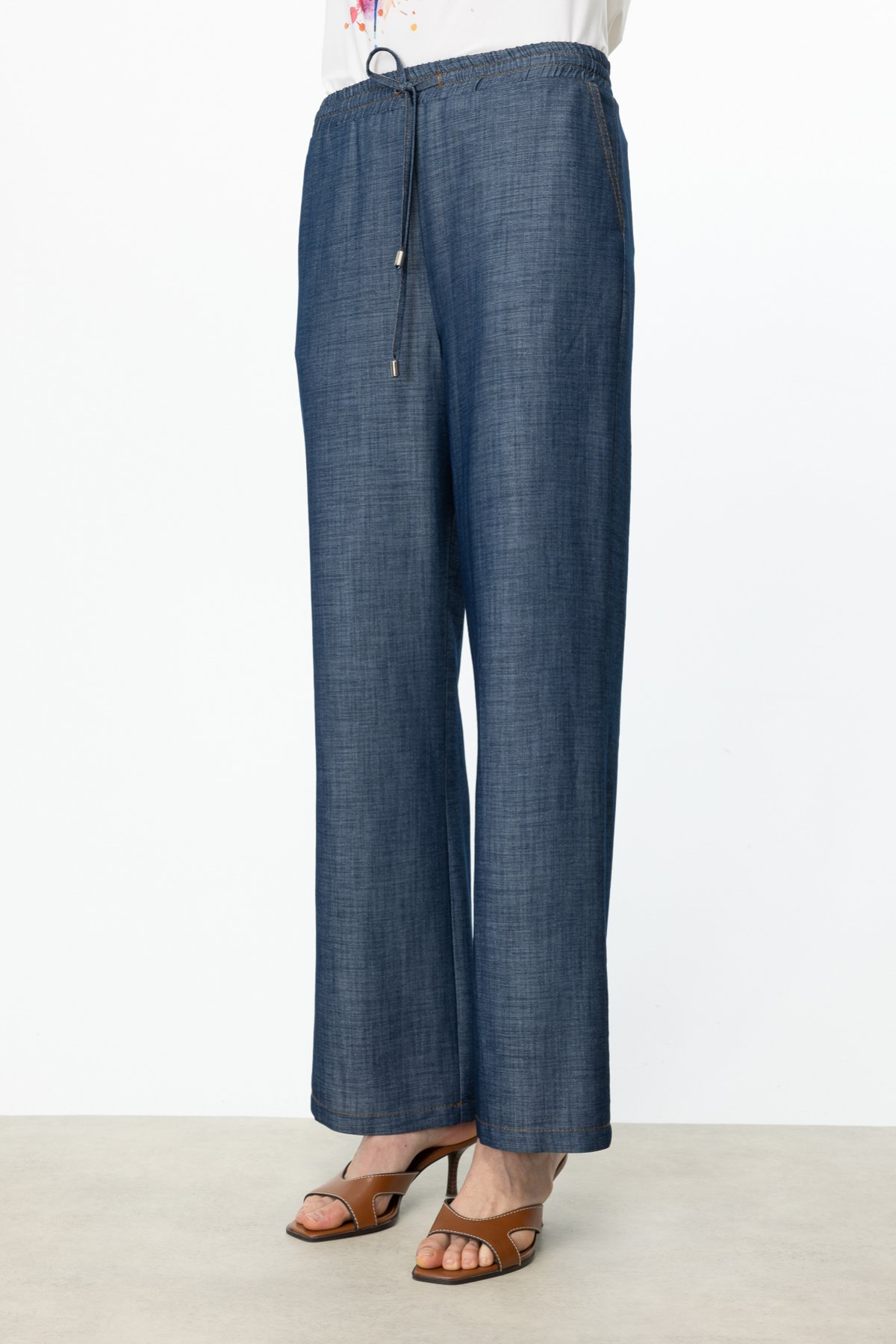 بنطلون إيكول واسع الساقين بحزام خصر مطاطي