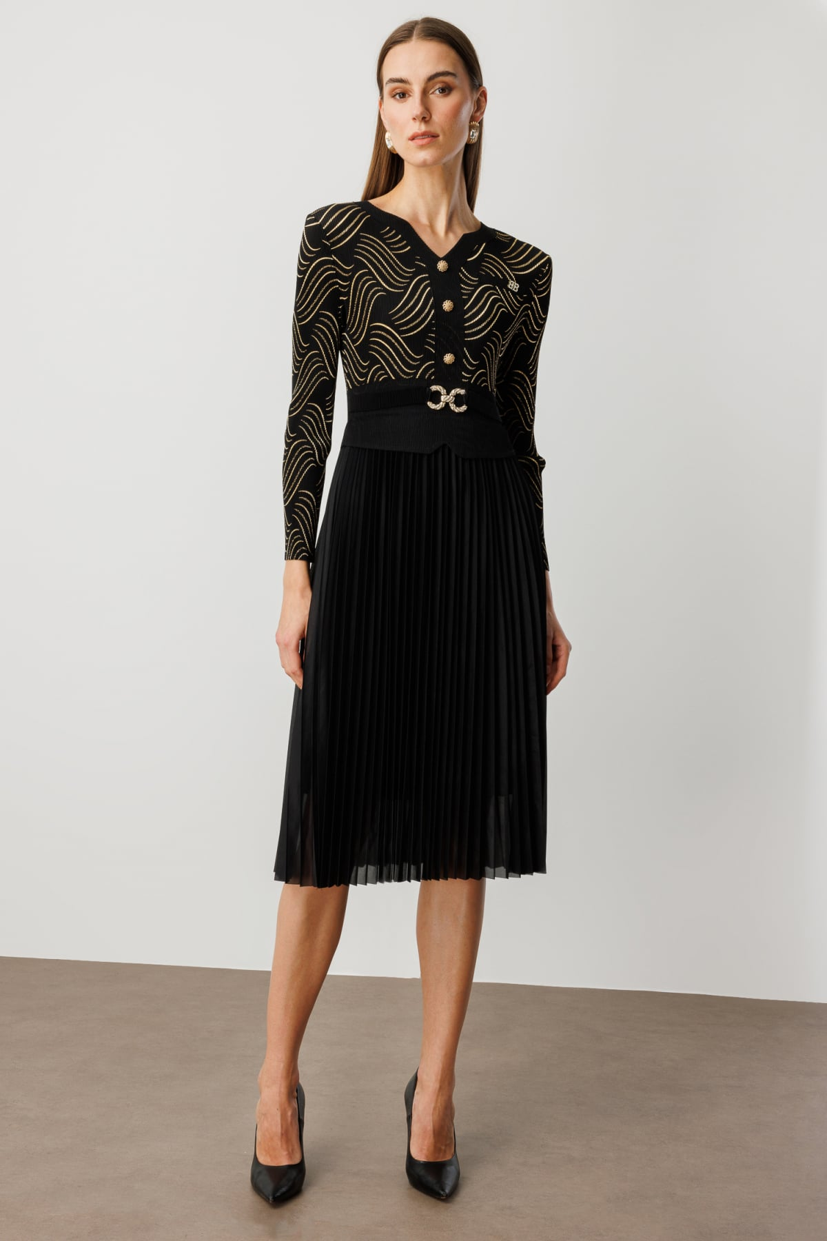 فستان بنقشة إيكول مع إكسسوار معدني للخصر