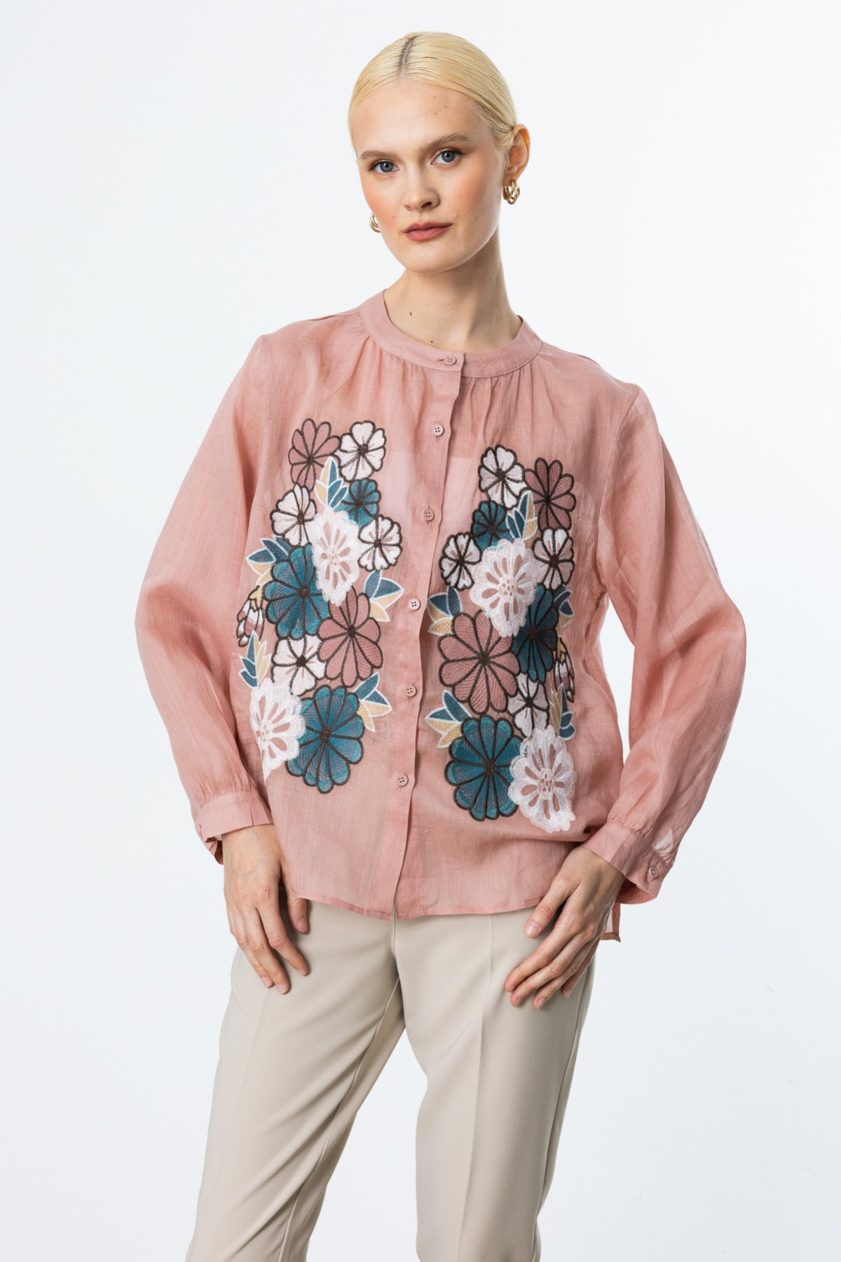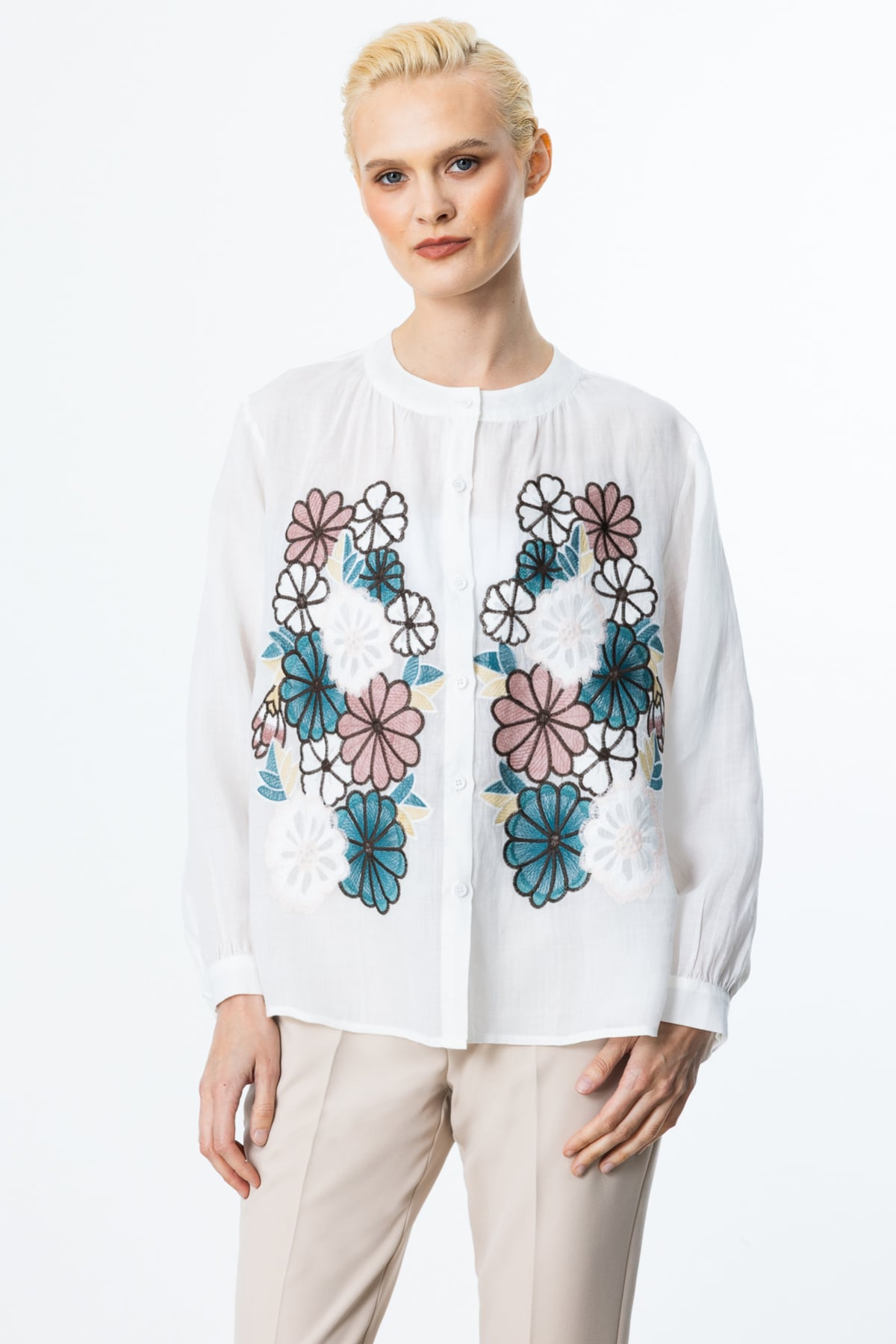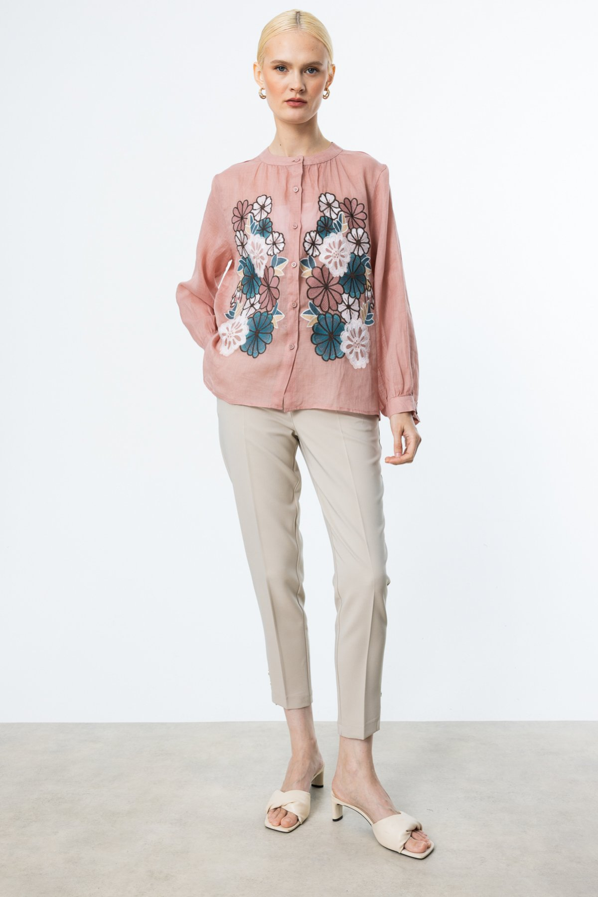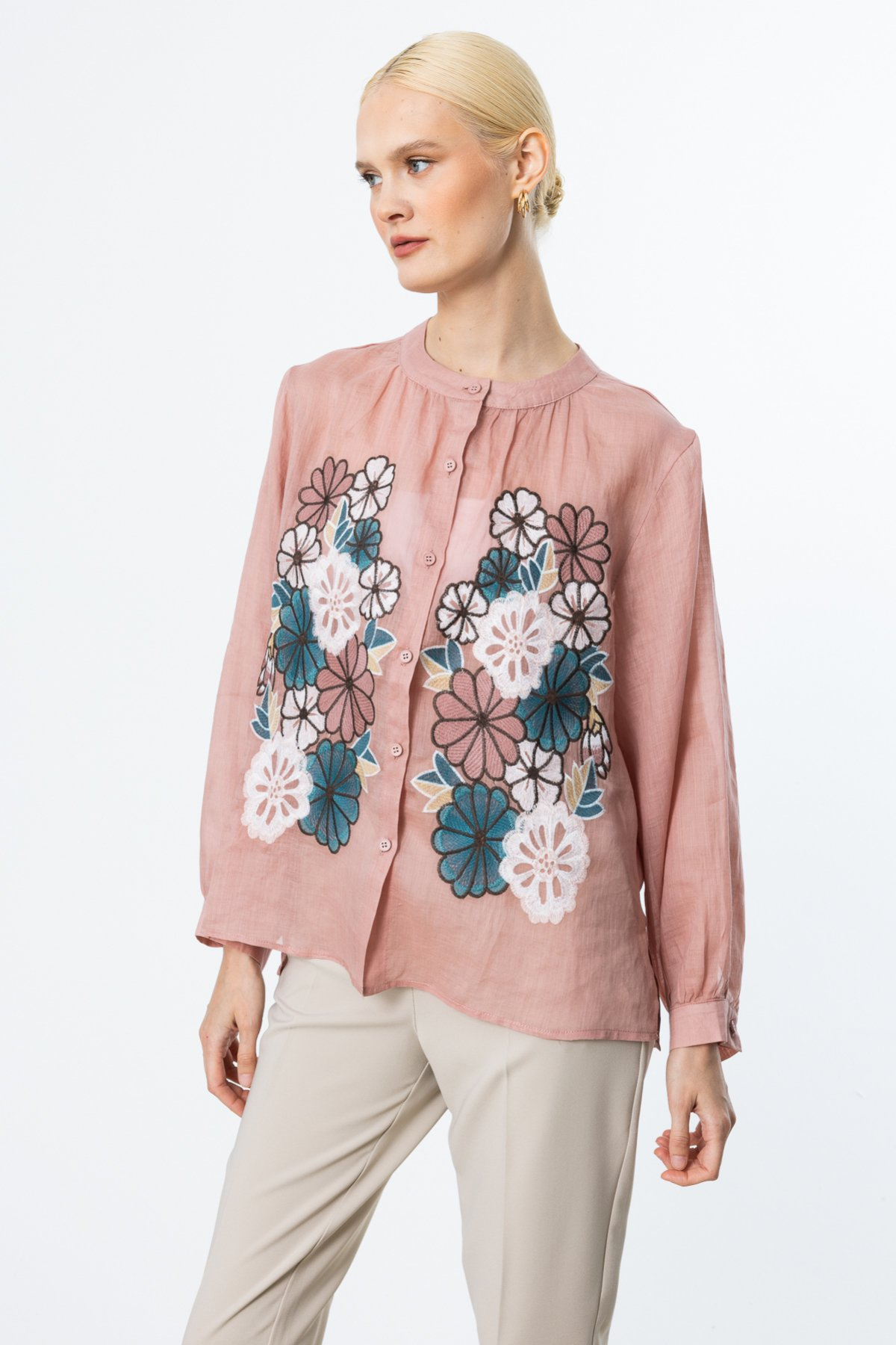 بلوزة من الكتان من إيكول بتطريزات زهرية