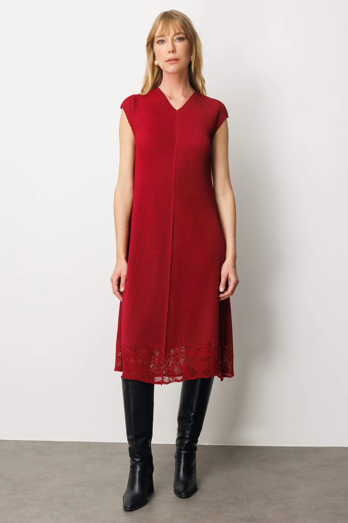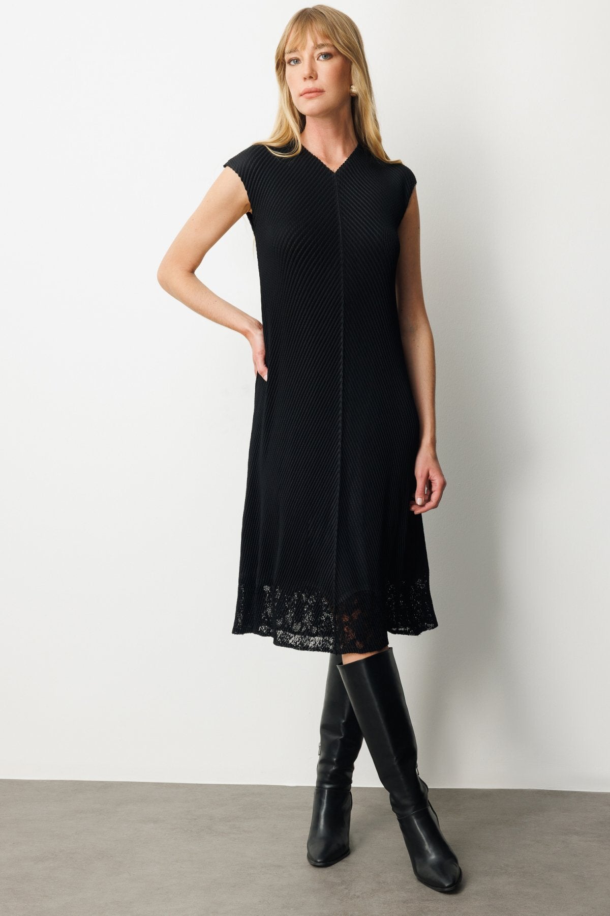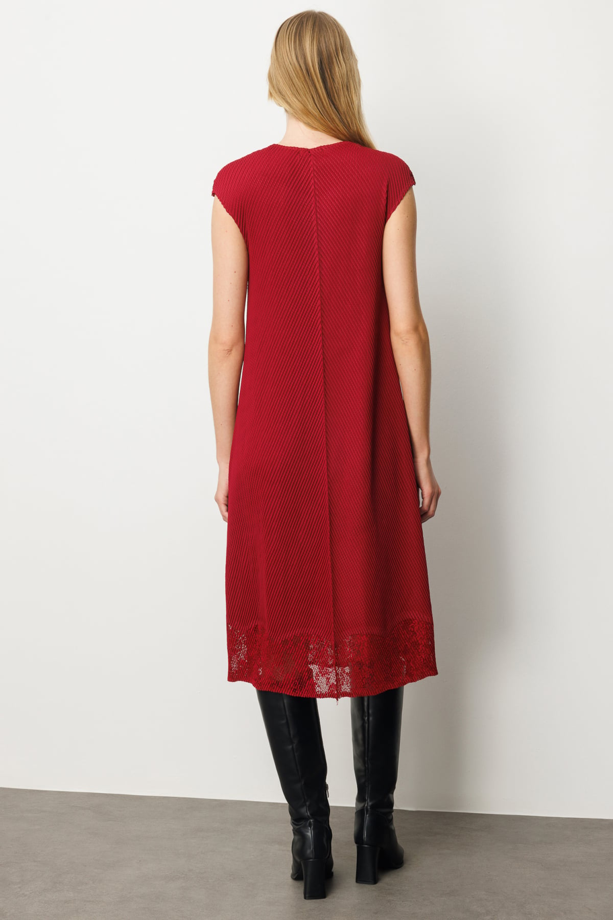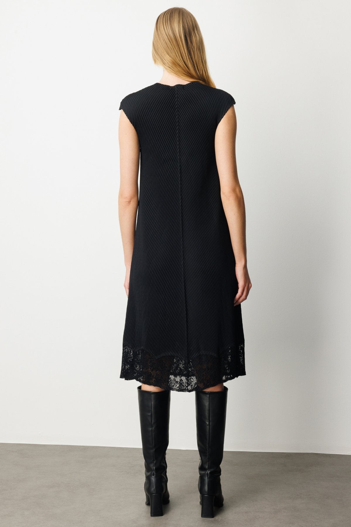 تنورة إيكول بتفاصيل دانتيل وفستان من قماش الأكورديون