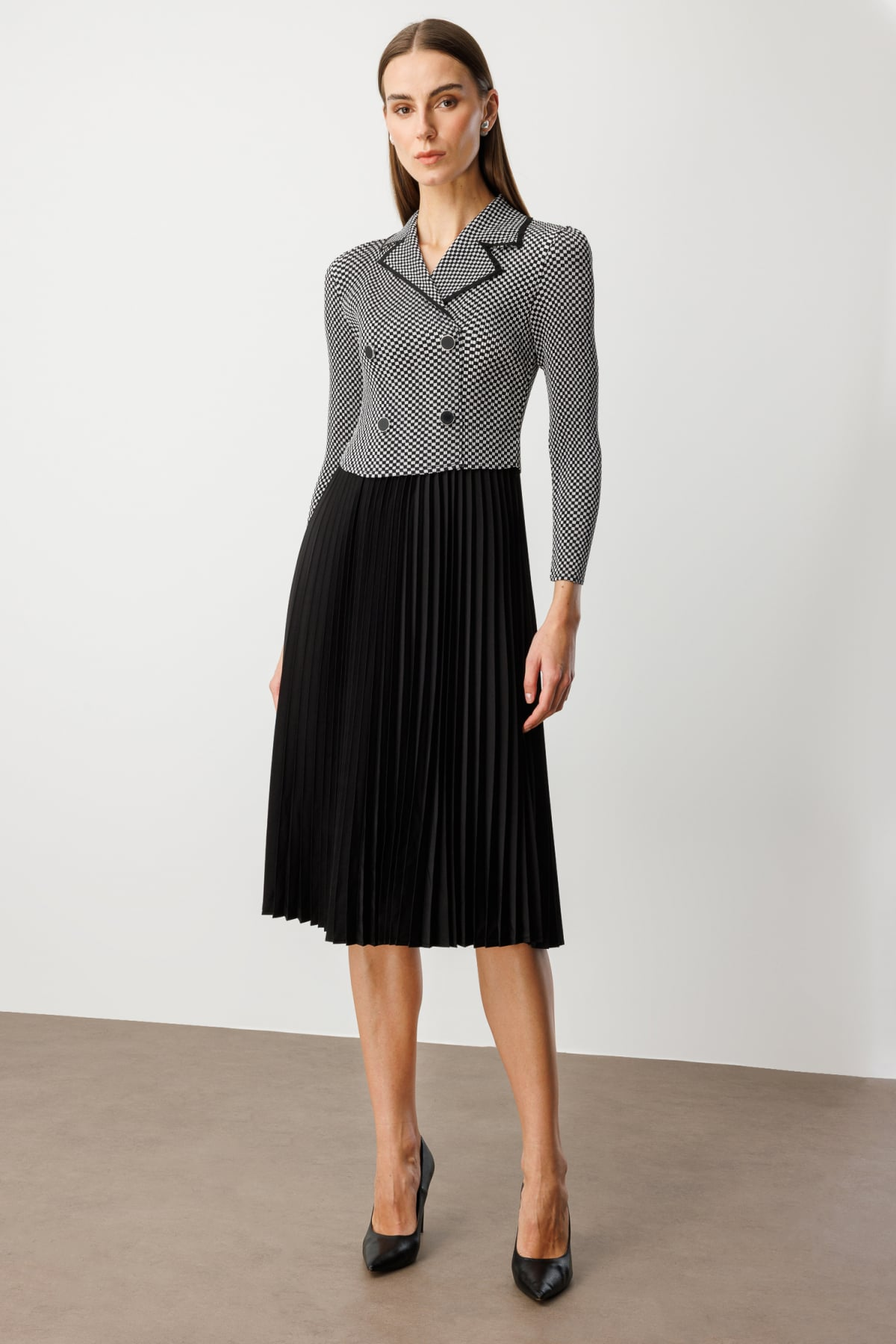 فستان ماكسي بنقشة مربعات من إيكول مع أزرار زخرفية