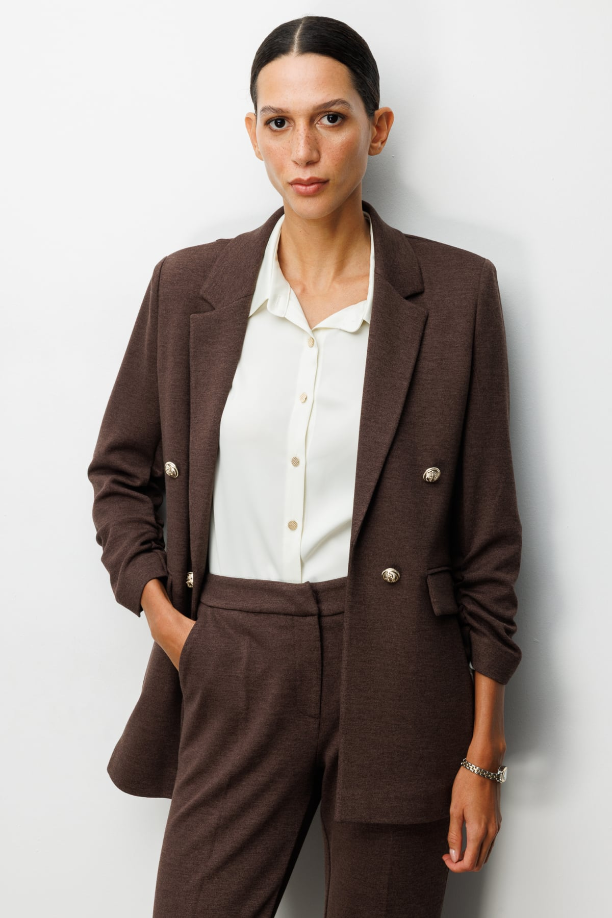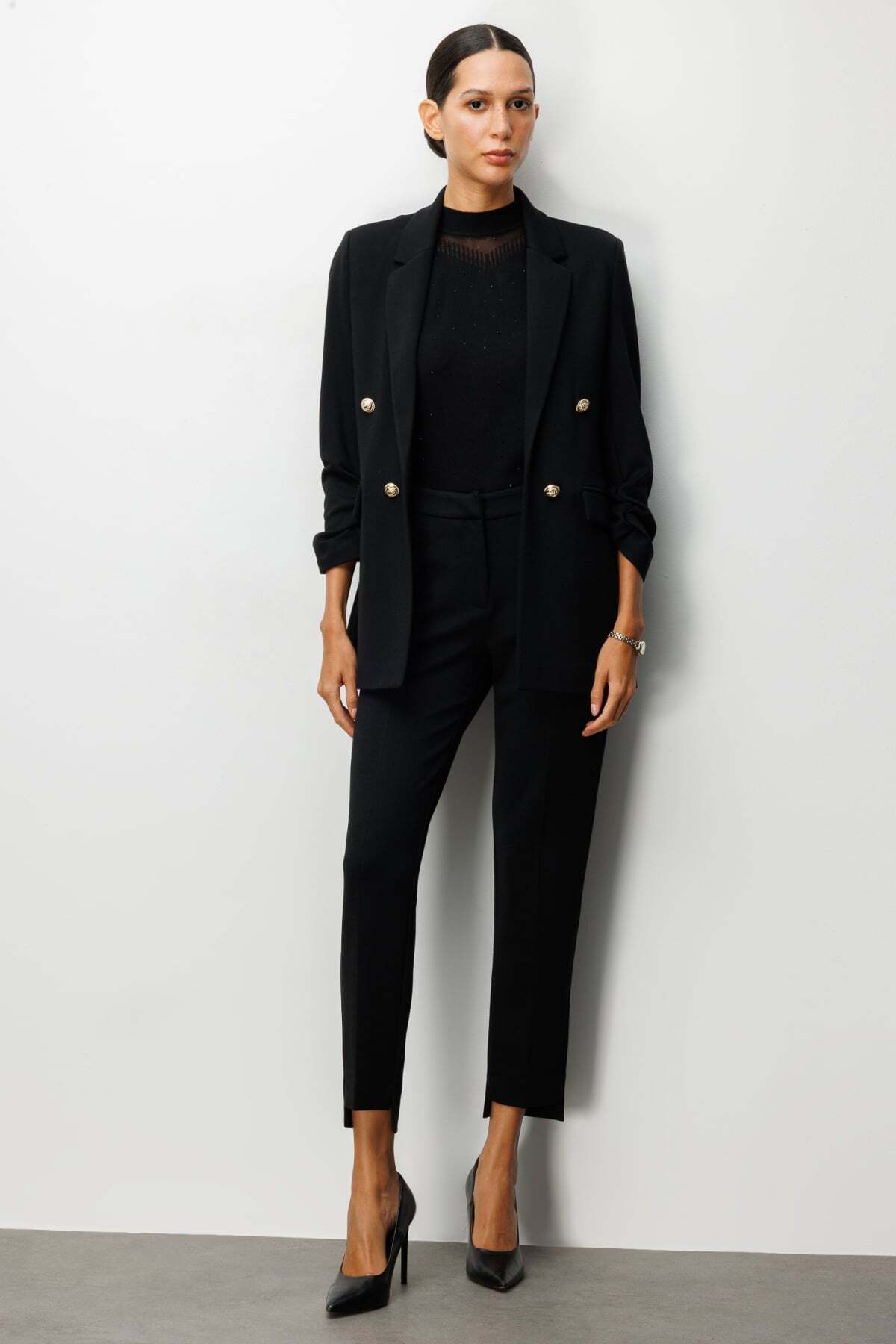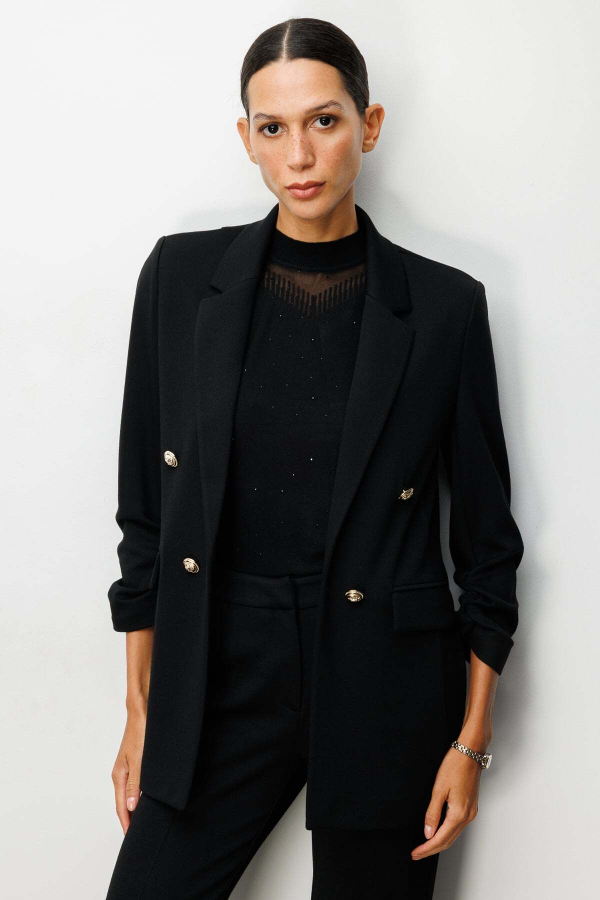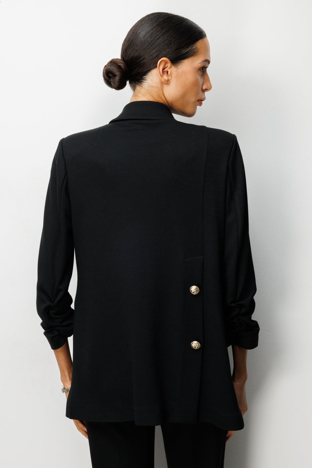 جاكيت إيكول بأكمام مكشكشة وأزرار زخرفية