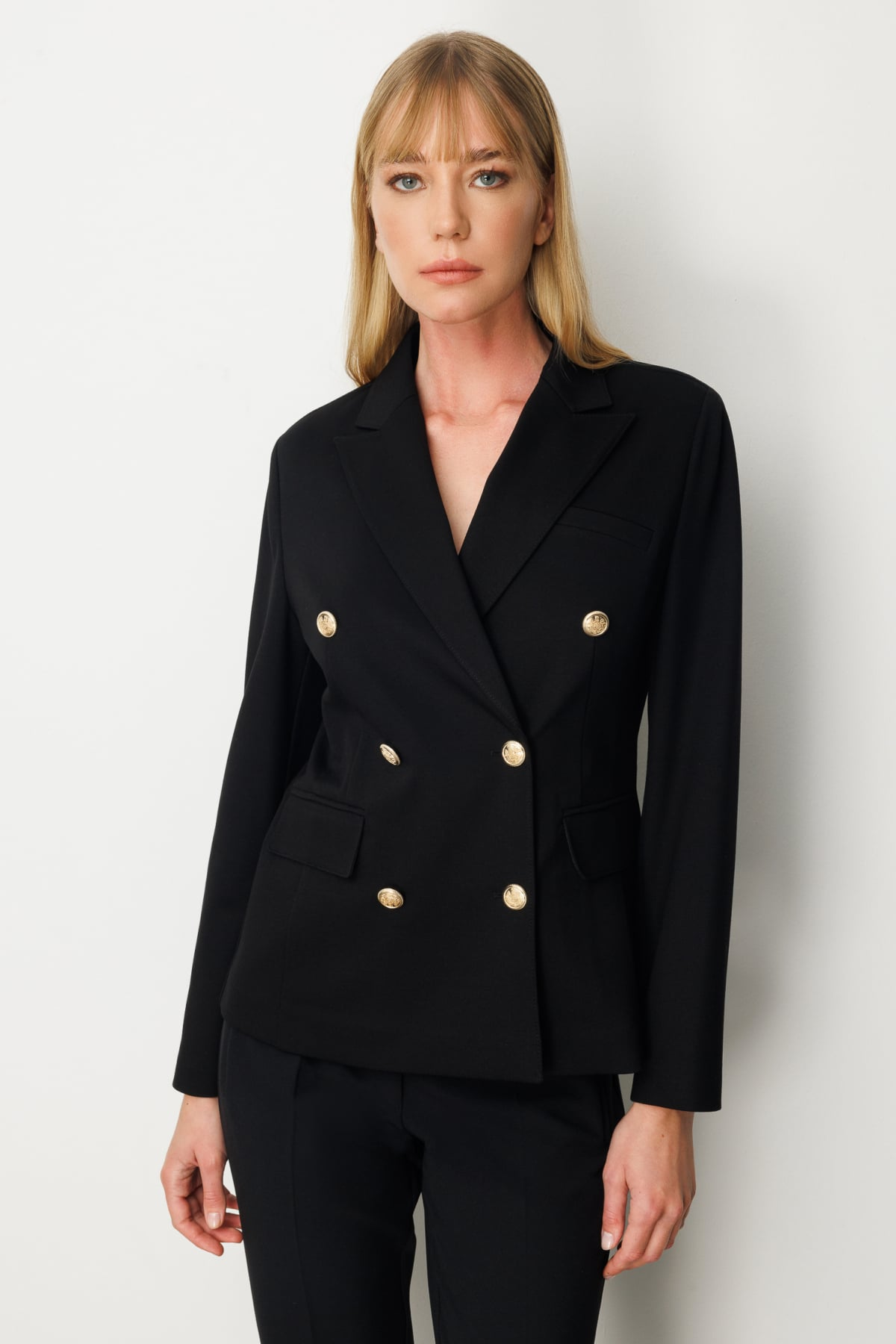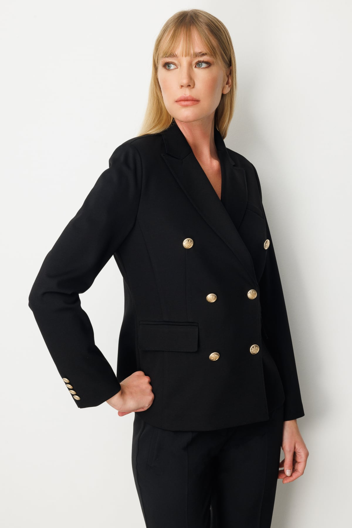 جاكيت إيكول مزدوج الصدر مع جيوب بغطاء