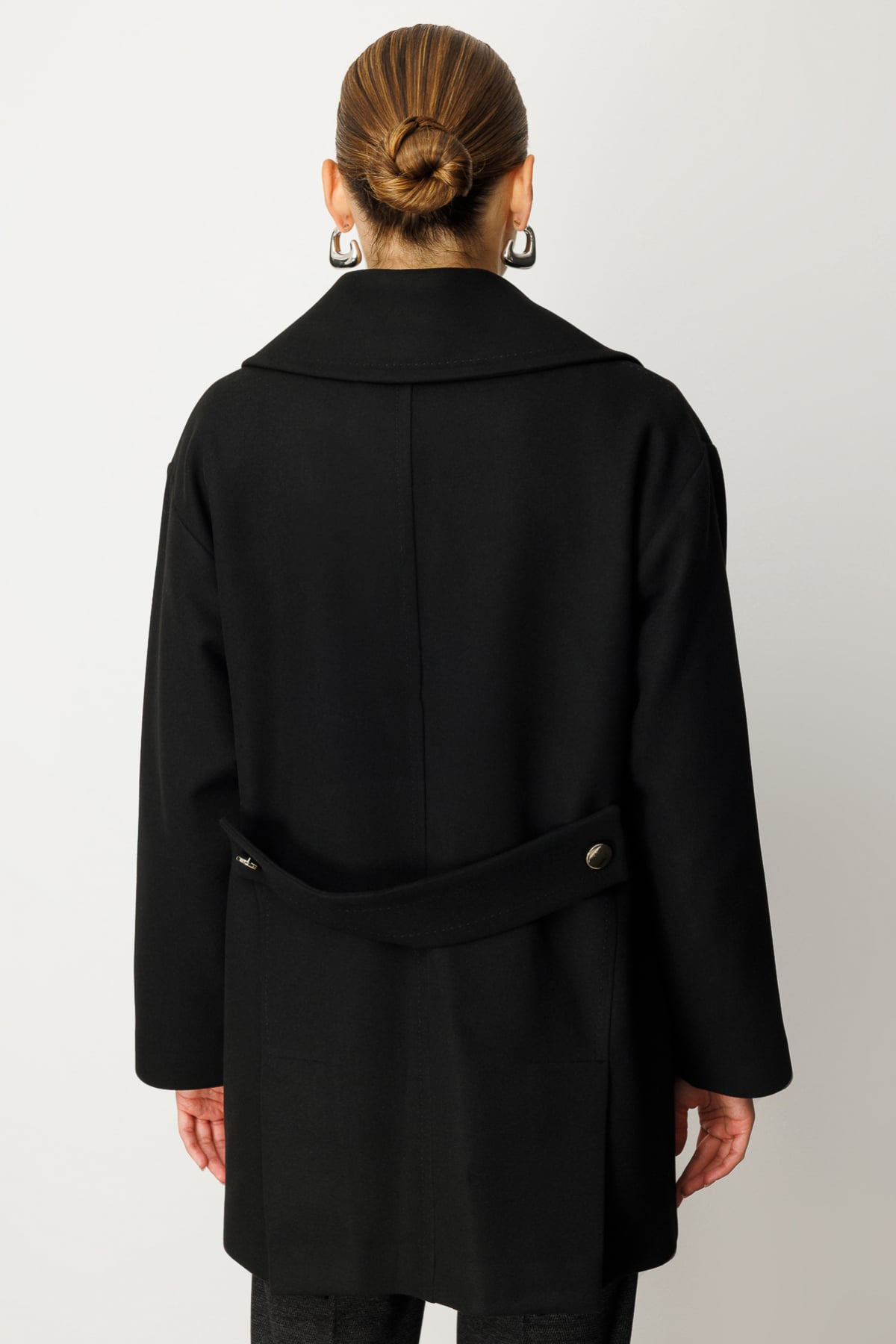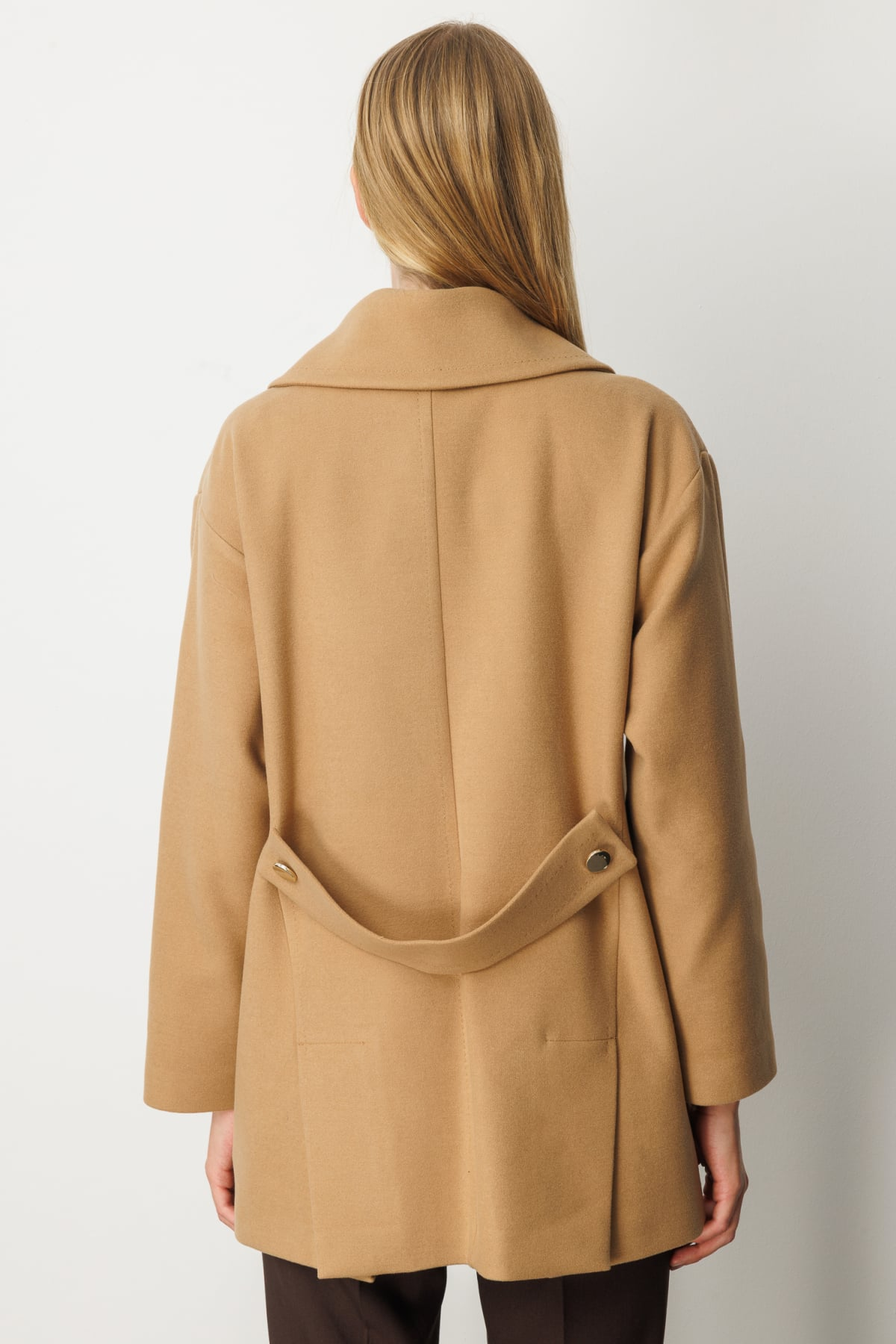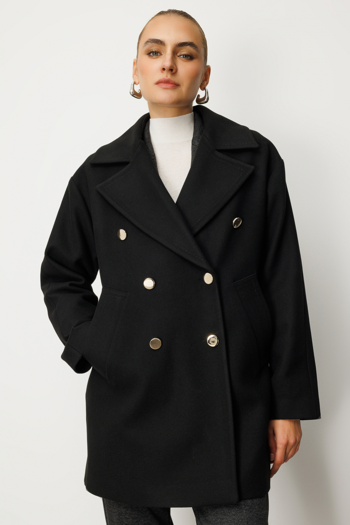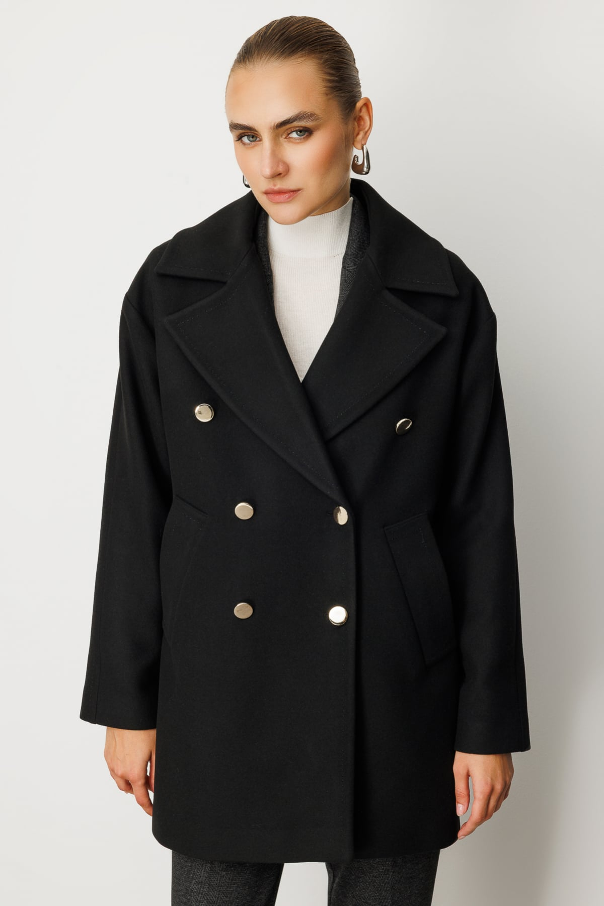 معطف إيكول مزدوج الصدر مع جيوب جانبية