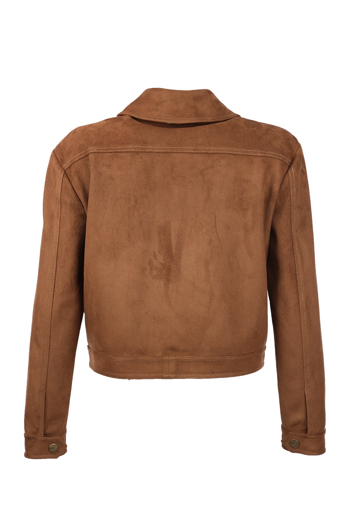 معطف إيكول النسائي القصير من جلد الغزال بتصميم بسيط - أناقة يومية