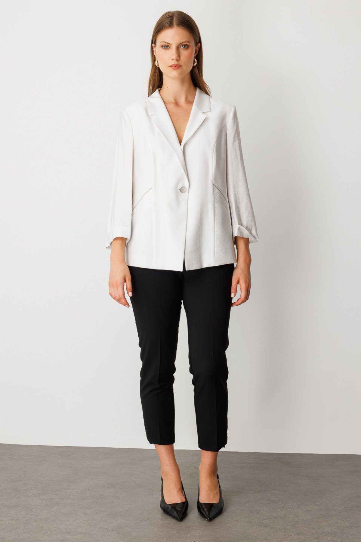 جاكيت إيكول مخطط بتفاصيل حجرية وأكمام مزدوجة