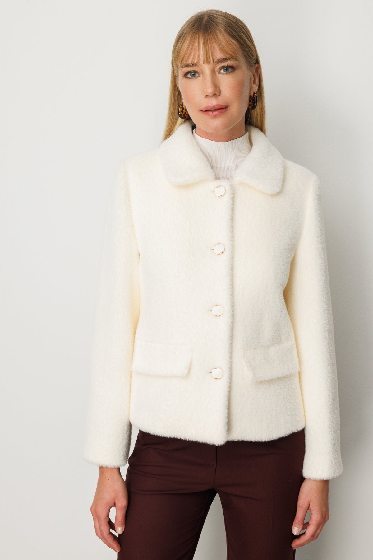 معطف إيكول القطيفة بجيوب رقعة