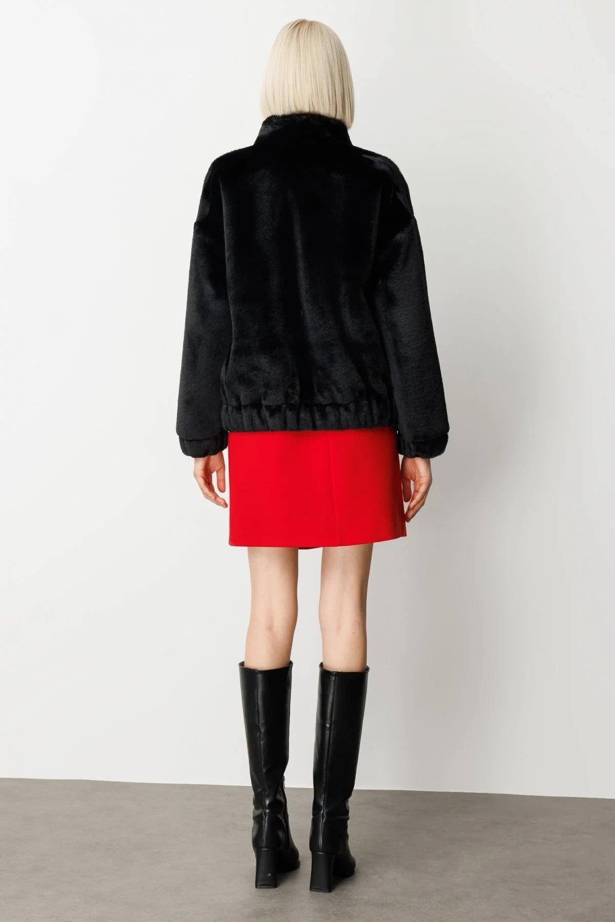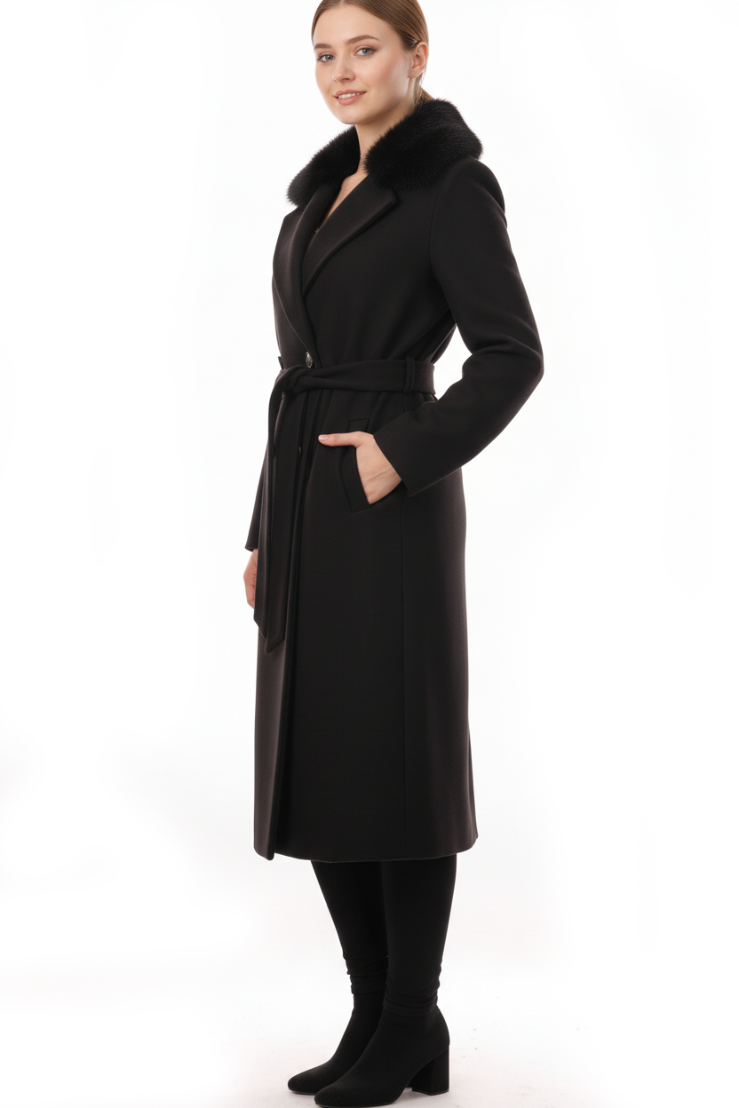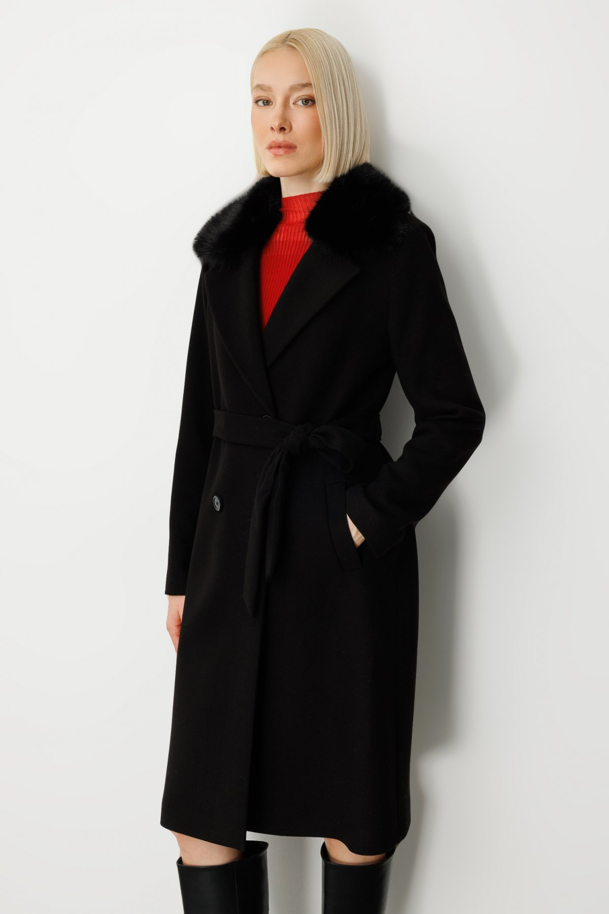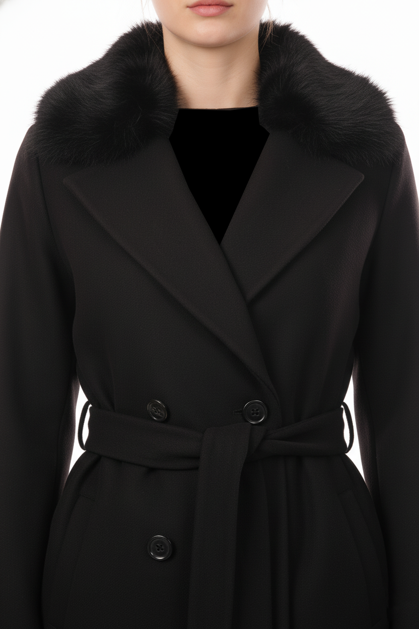 معطف إيكول ذو ياقة مزينة بالفرو وحزام