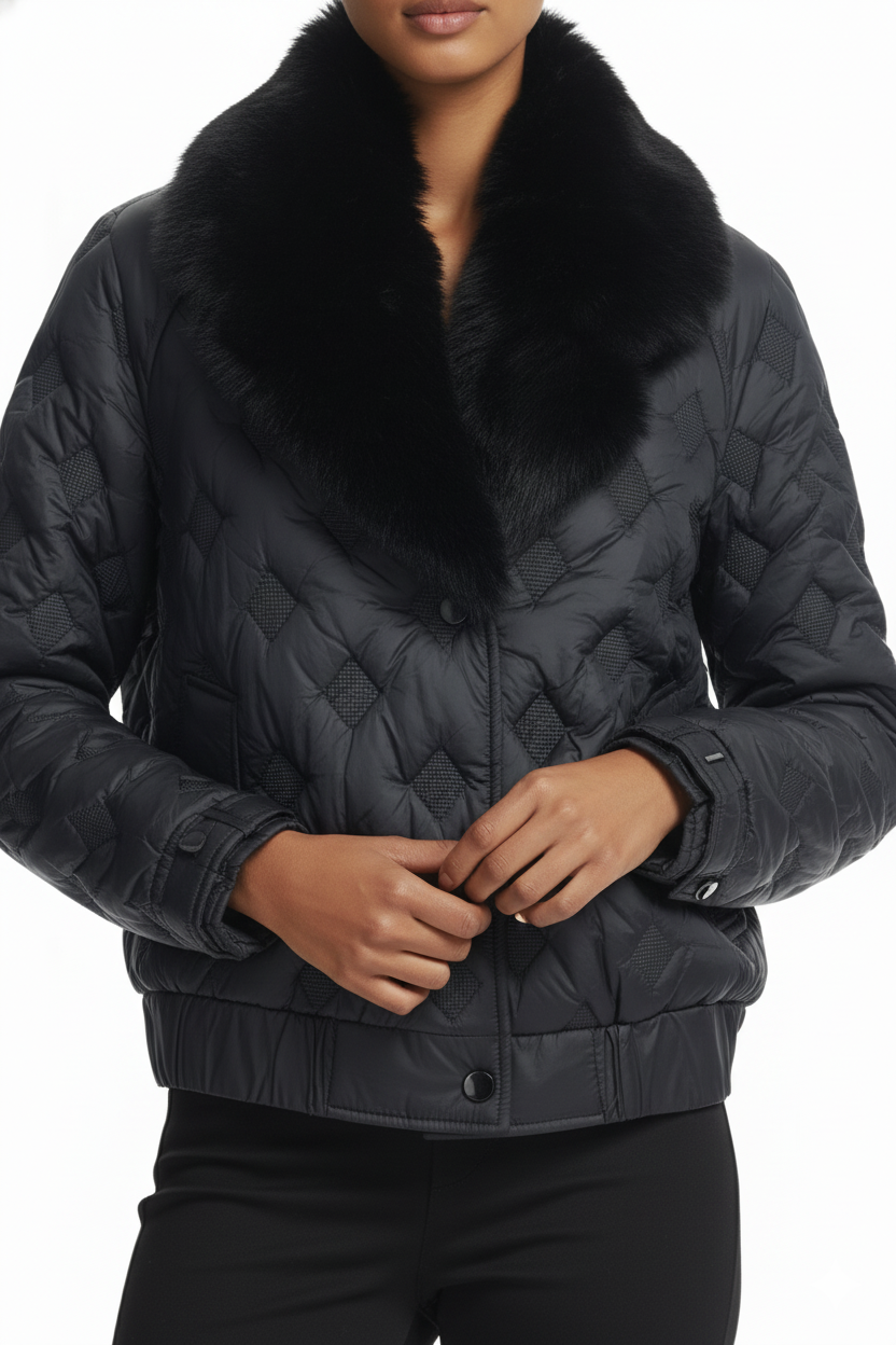 جاكيت مبطن بالفرو من إيكول، أسود