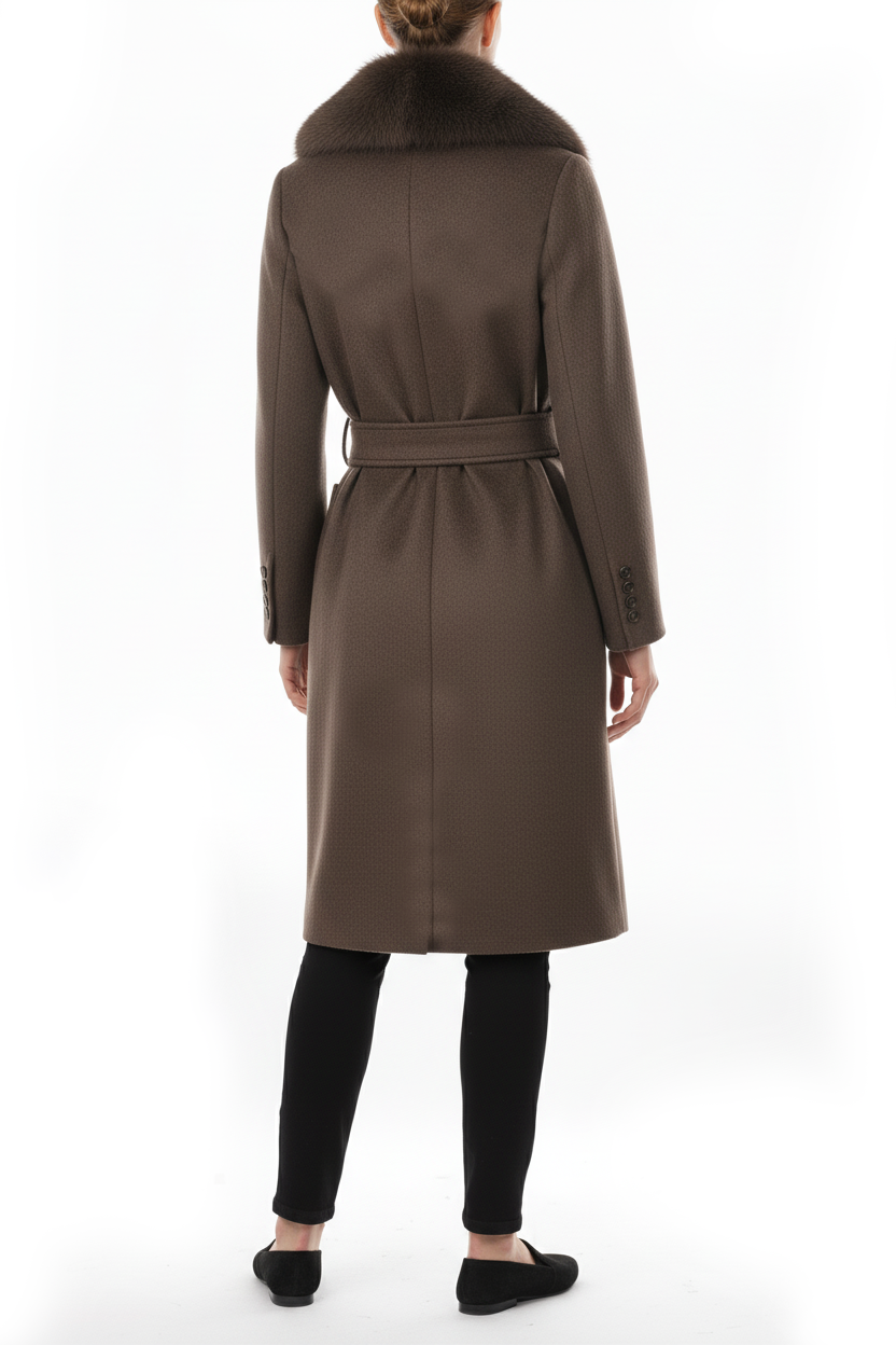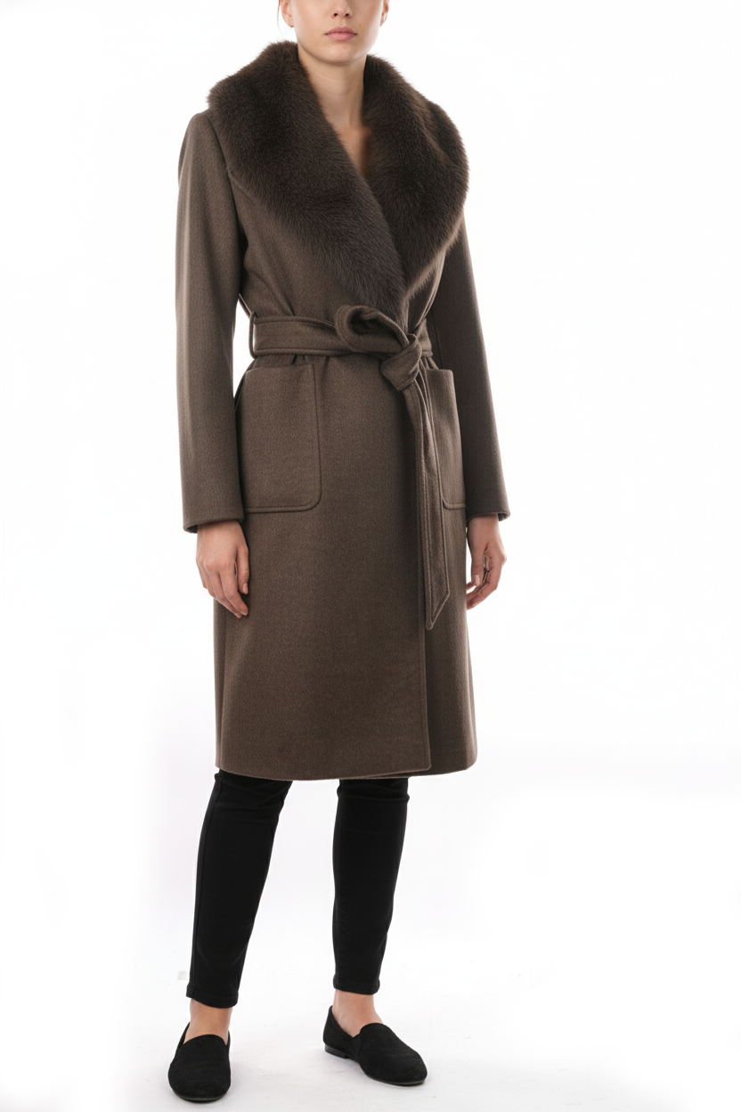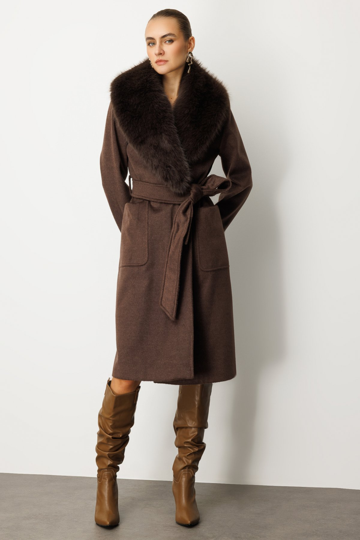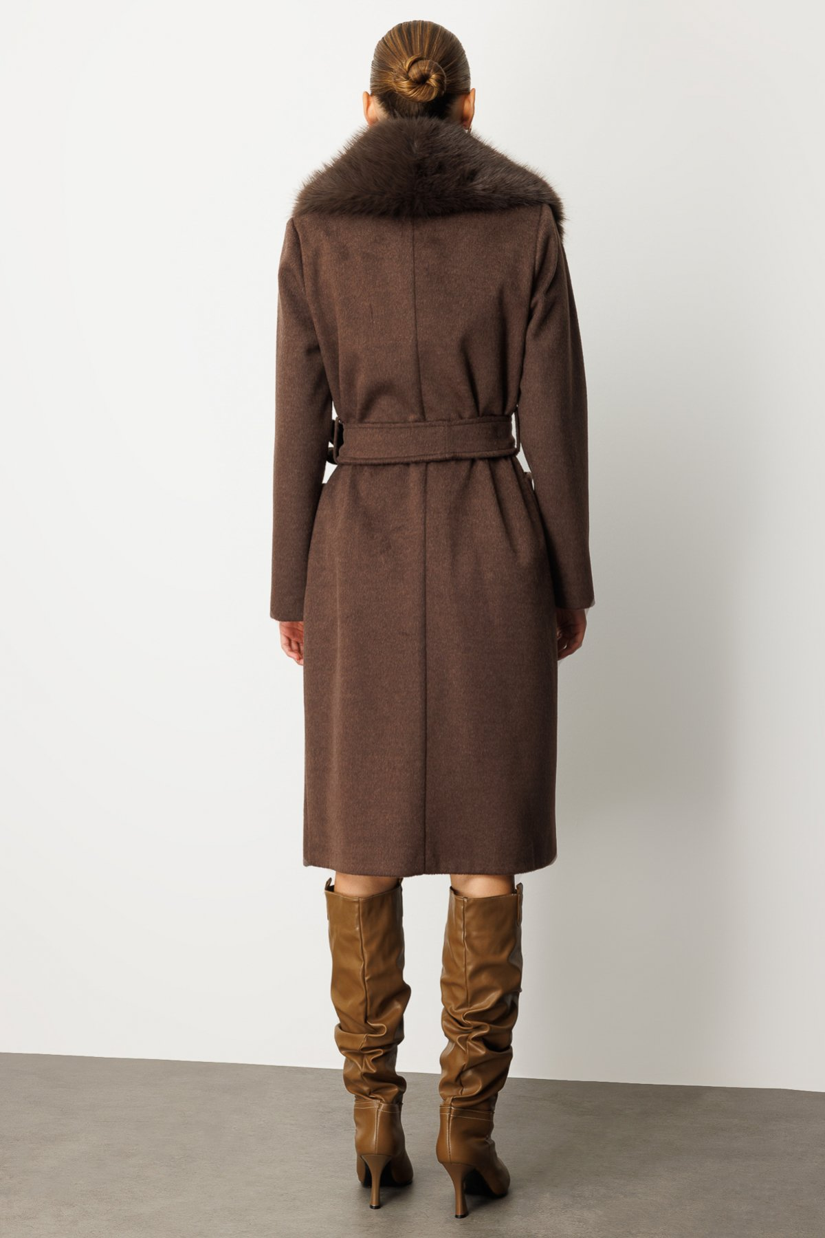 معطف إيكول بياقة مزينة بالفرو وجيوب رقعة