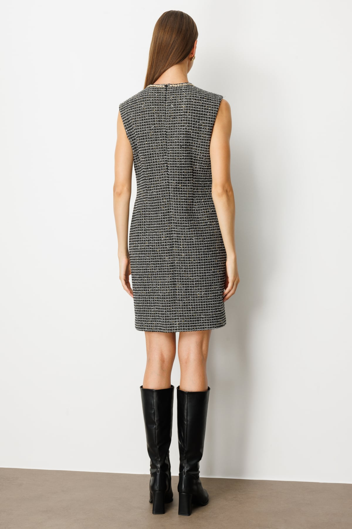 فستان إيكول متوسط الطول من التويد بتفاصيل سلسلة