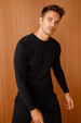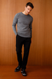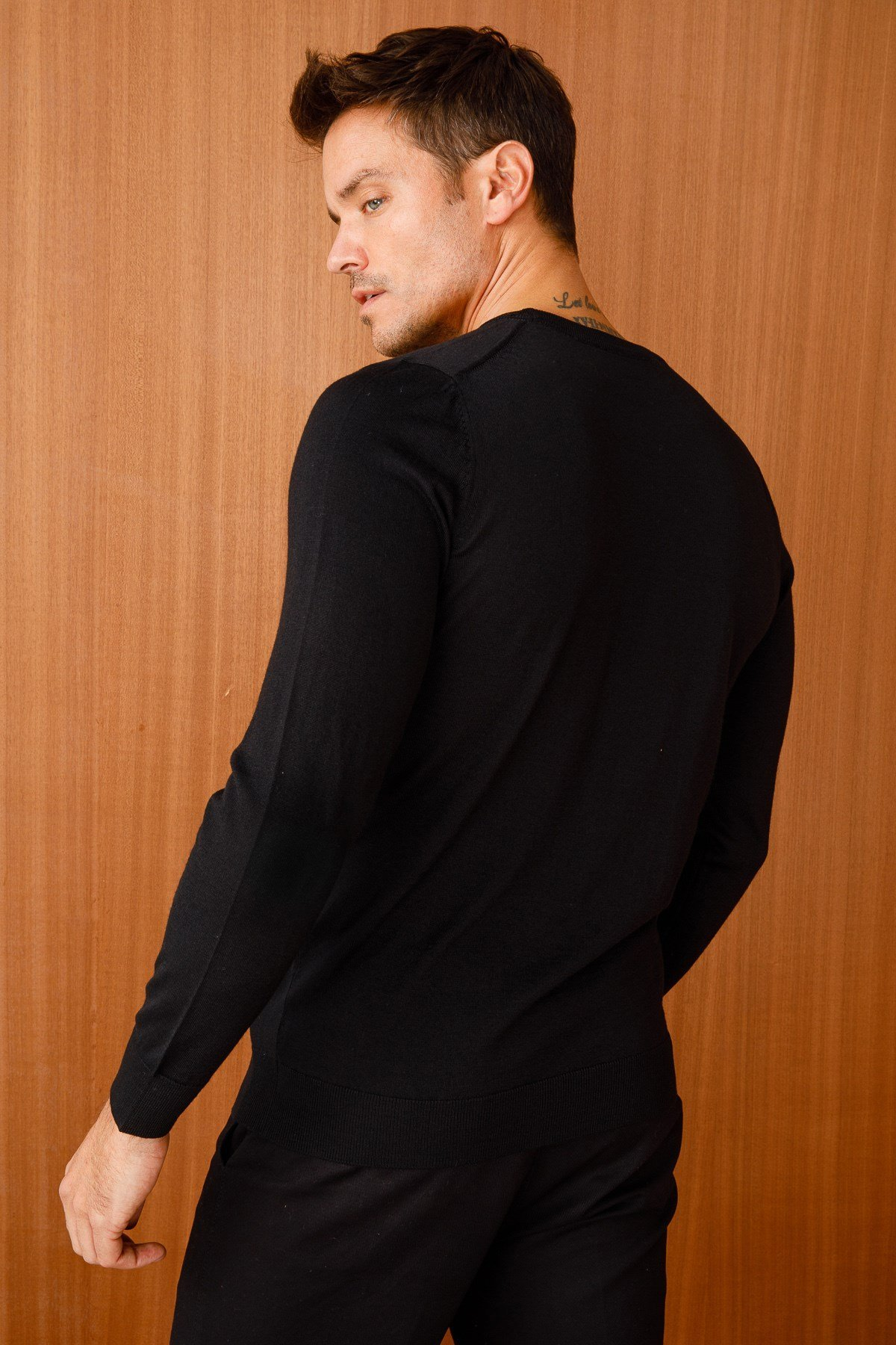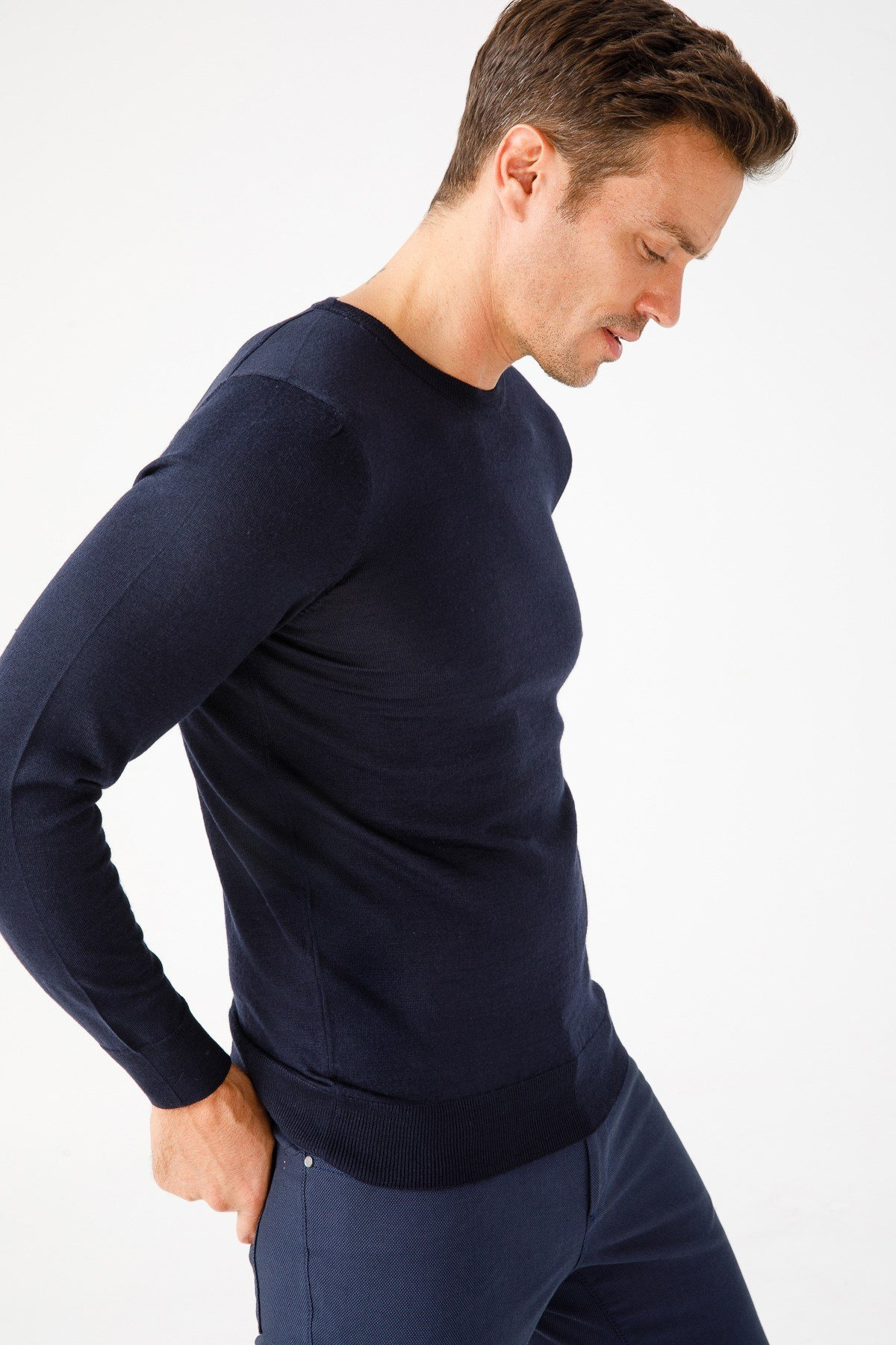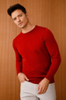 نمط سترة رجالية أساسية برقبة دائرية من نسيج رقيق