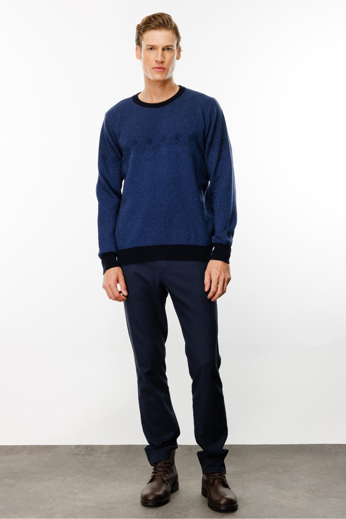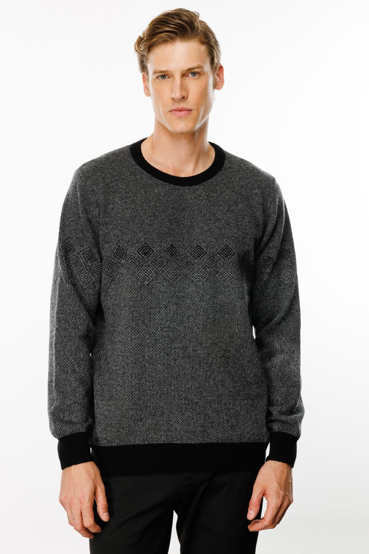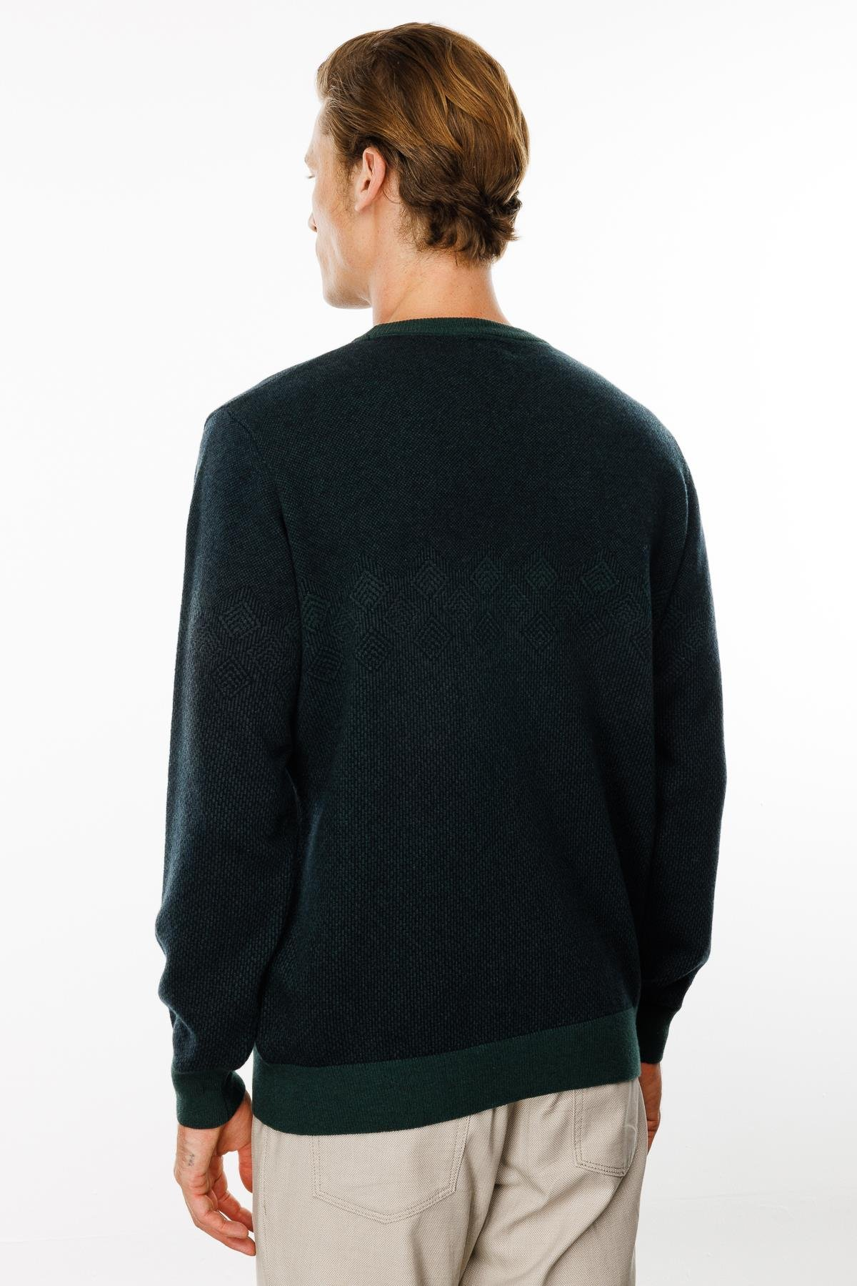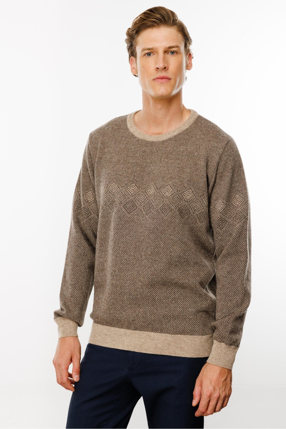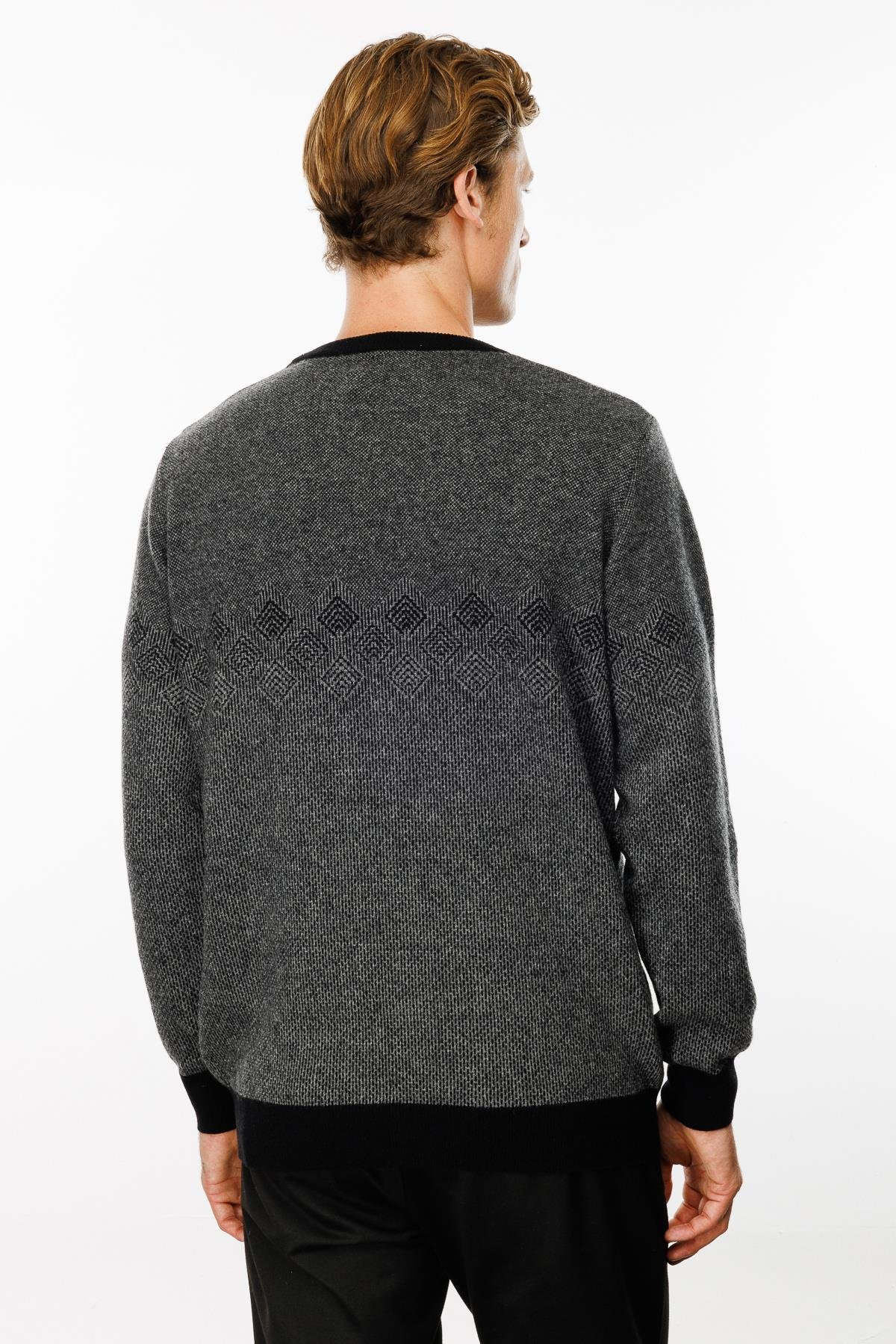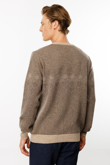 كنزة صوفية رجالية برقبة دائرية ونقشة ماسية على الصدر