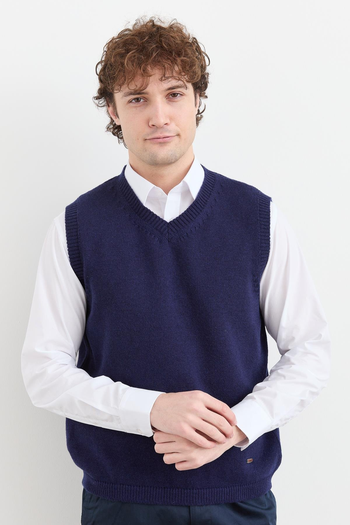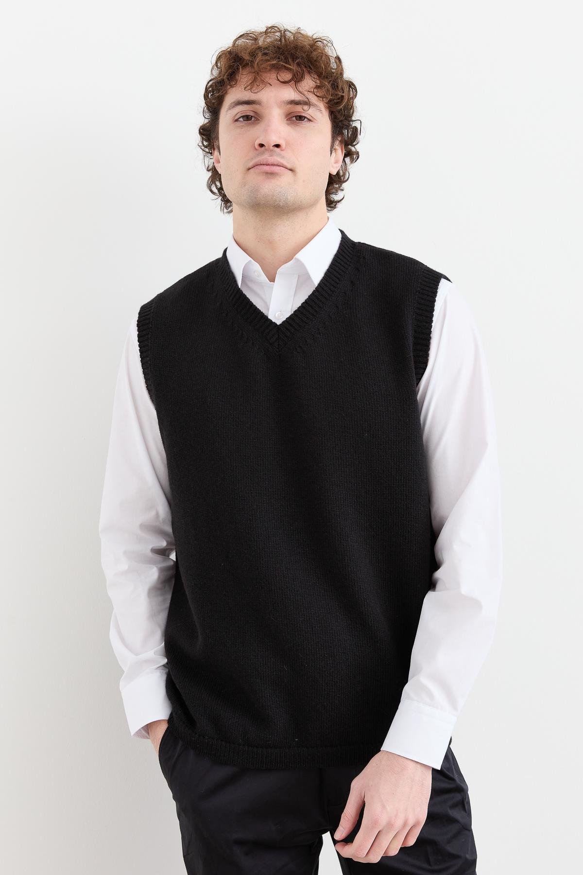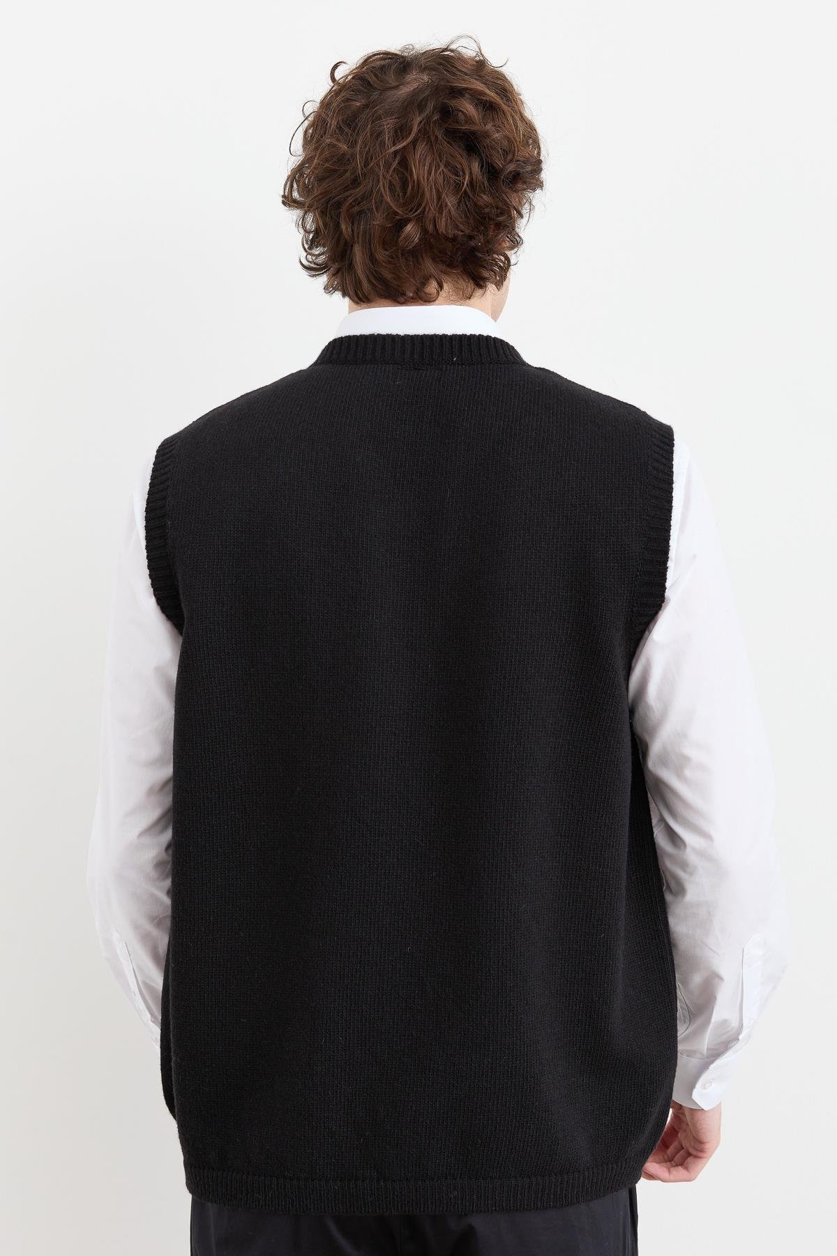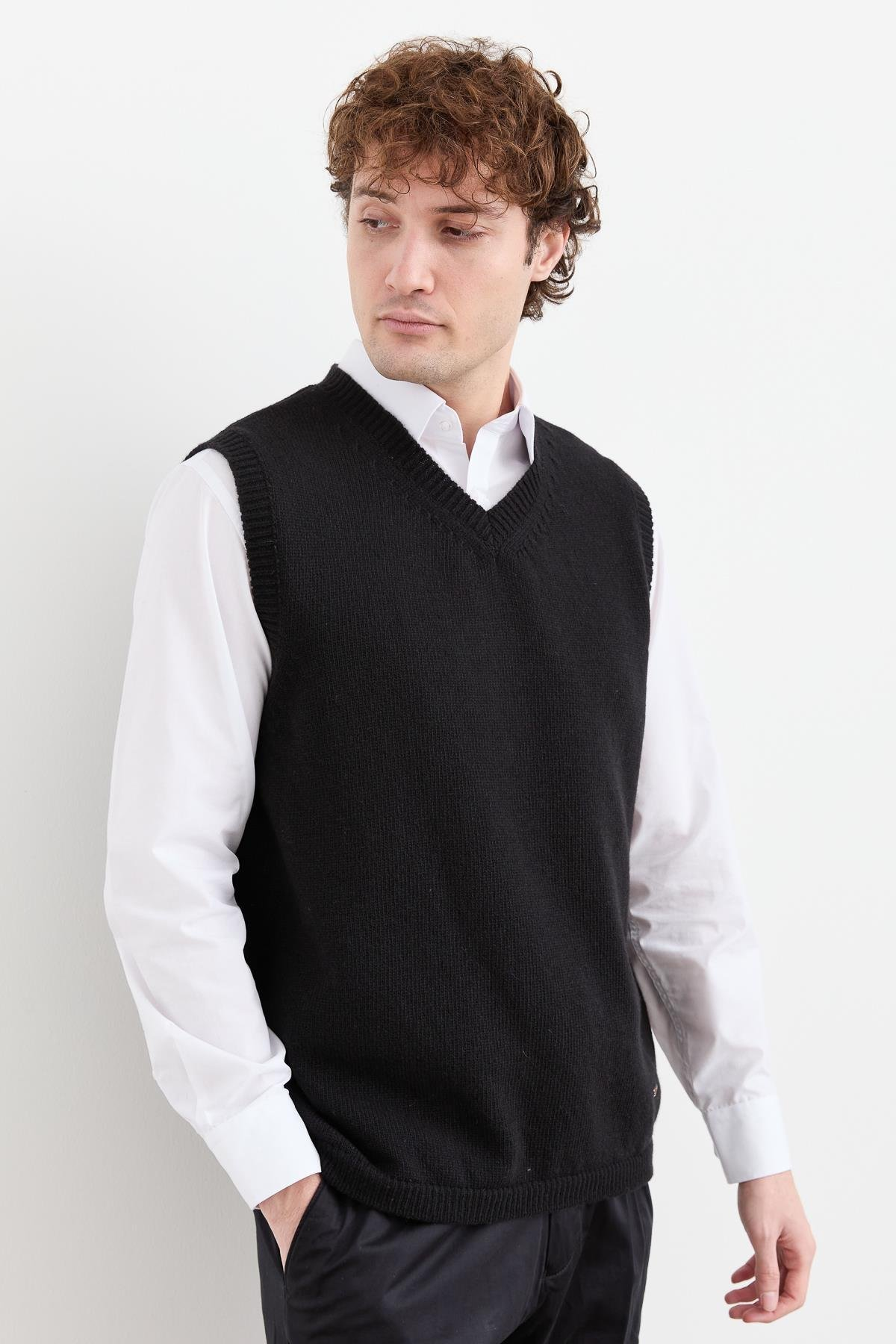 نمط سترة صوفية كلاسيكية سميكة برقبة على شكل حرف V للرجال
