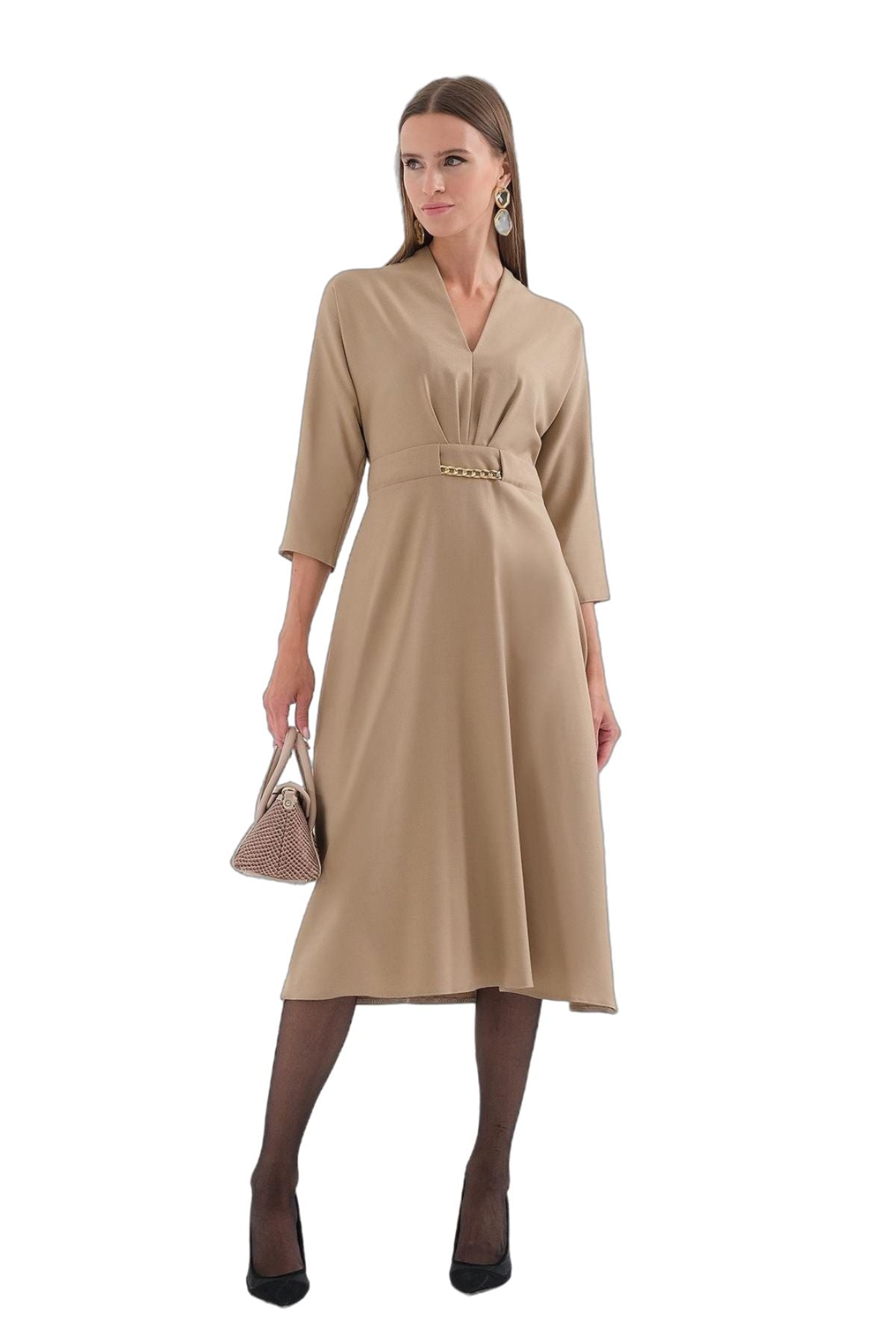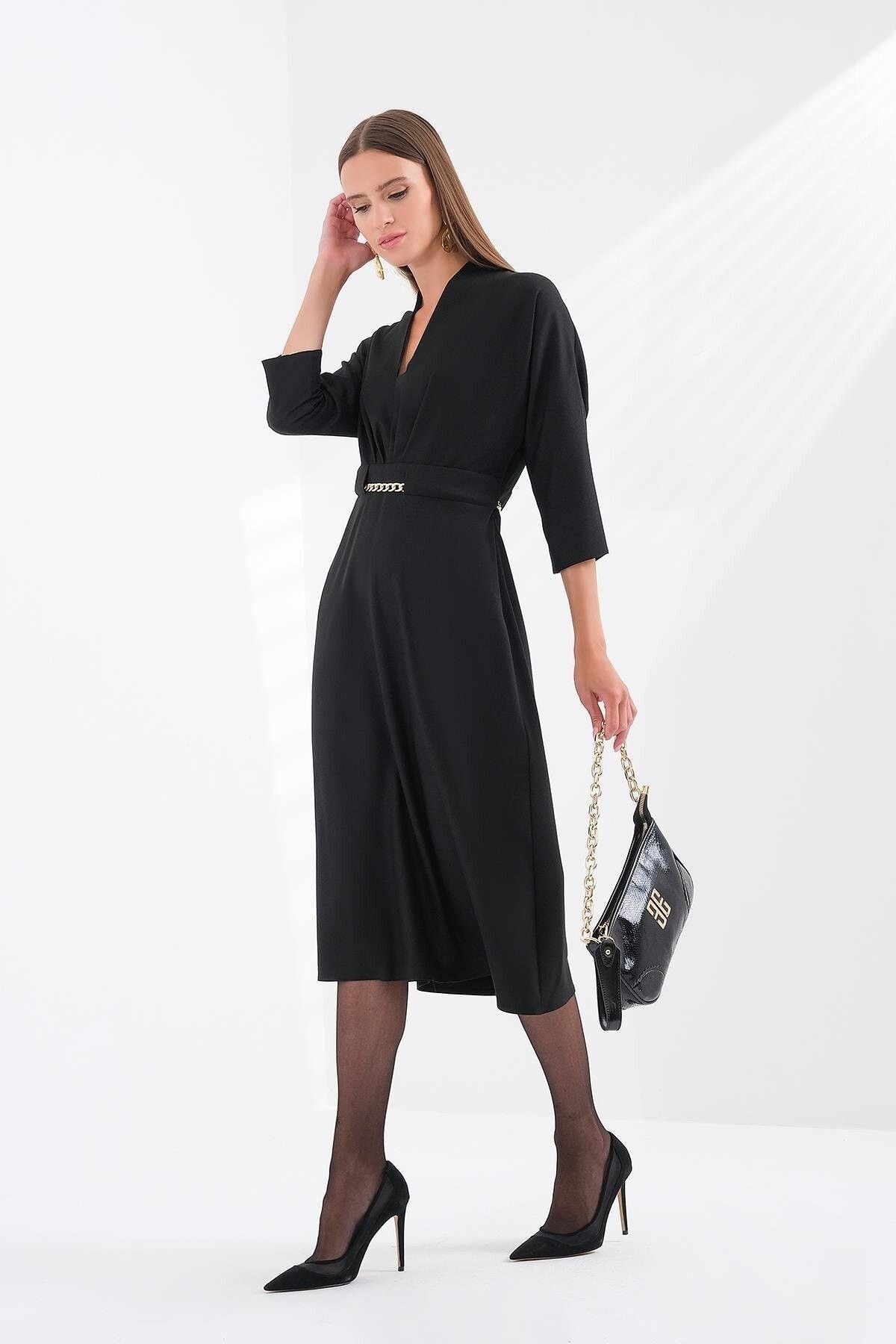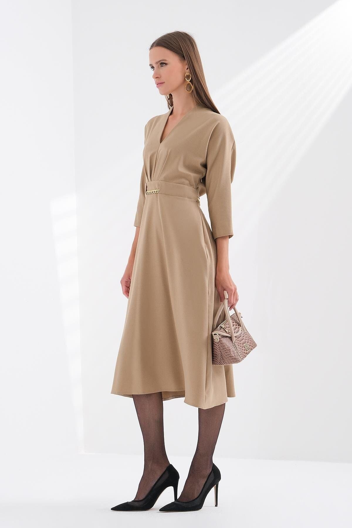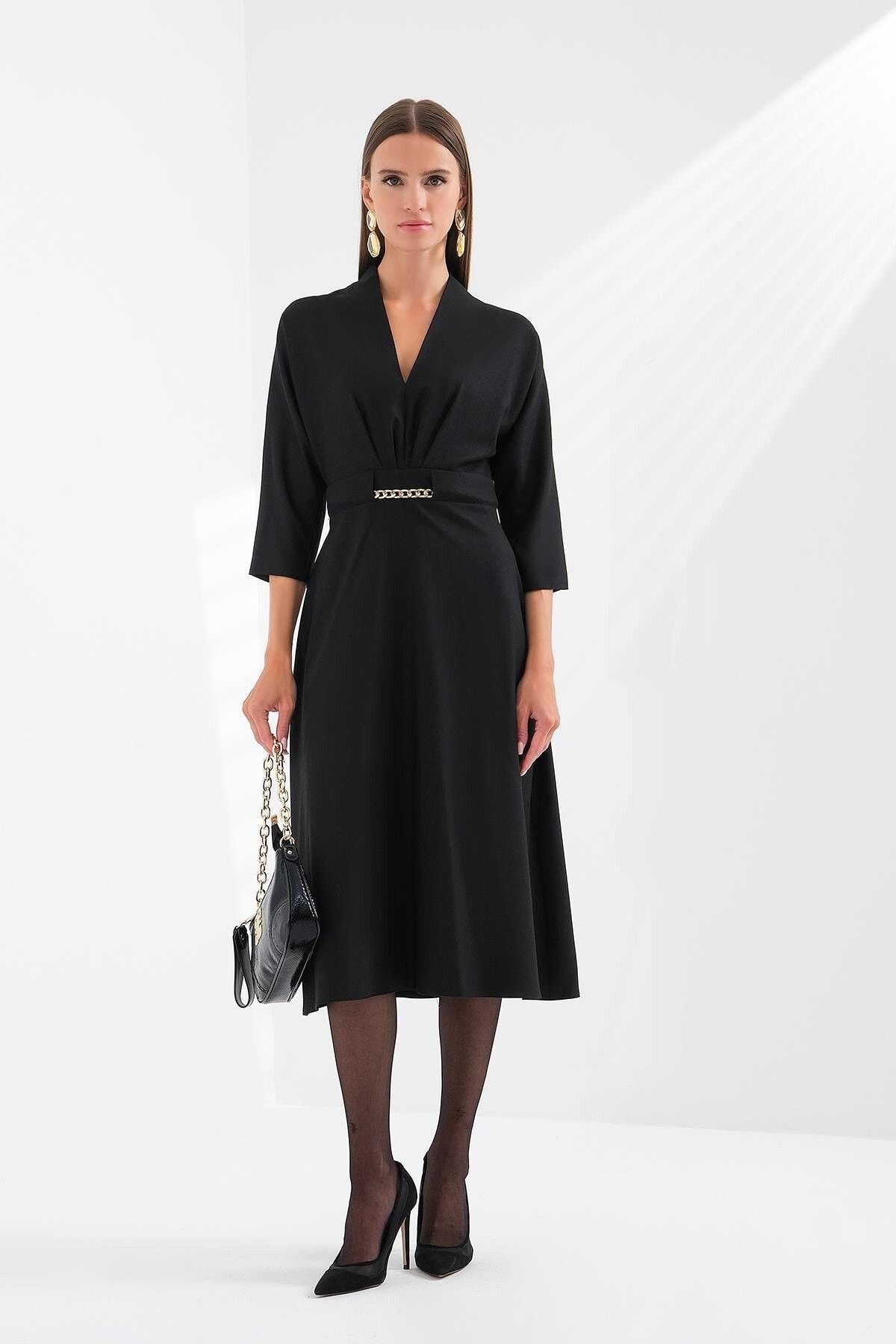 محتويات:؛ 96% بوليستر 4% إيلاستين؛ ميزات المنتج: فستان بياقة على شكل حرف V وأكمام من تصميم تروفاكار...