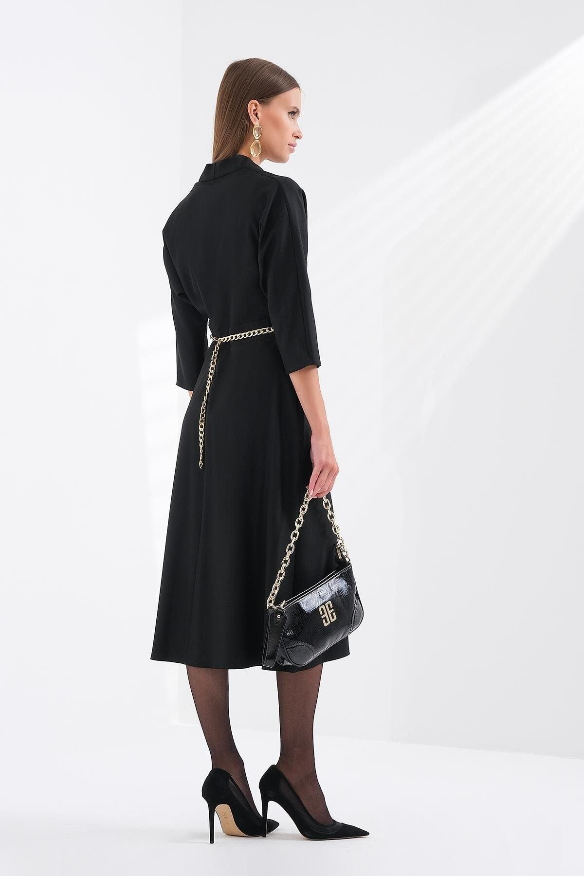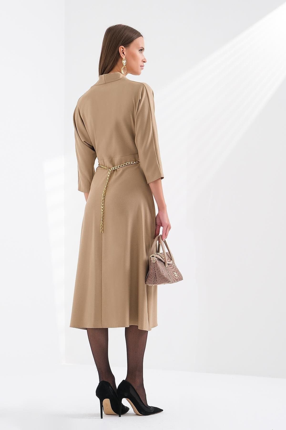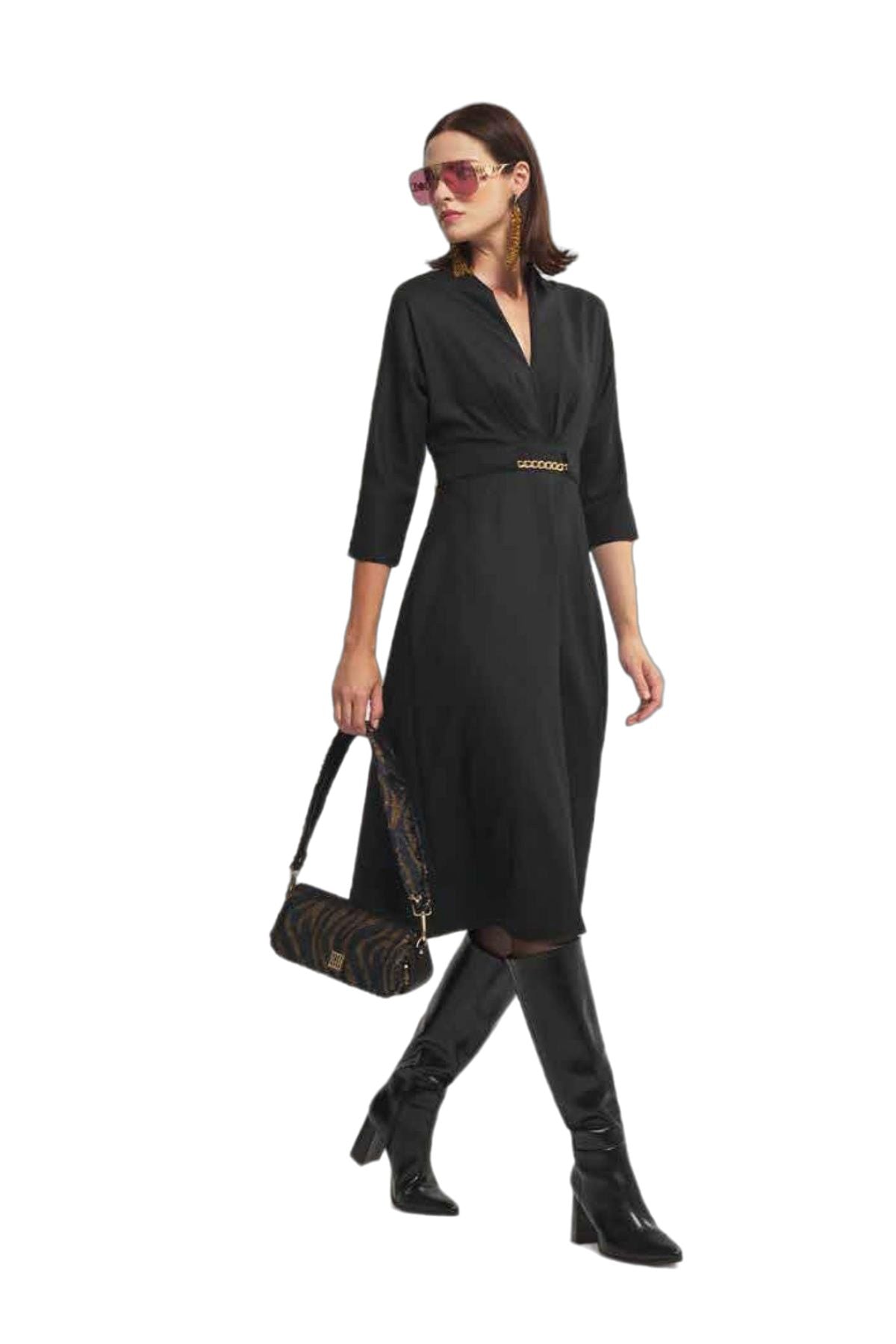 محتويات:؛ 96% بوليستر 4% إيلاستين؛ ميزات المنتج: فستان بياقة على شكل حرف V وأكمام من تصميم تروفاكار وتفاصيل مطوية؛ قياسات النموذج: قياسات العارضة: الطول: 175 سم. - الصدر: 85 سم. الخصر: 61 سم. الوركين: 91 سم. - مقاس المنتج: 36/S/1؛ رقم المقاس: 36 38 40 42؛ الصدر: 88 92 96 100؛ محيط الخصر: 68 72 76 80؛ الوركين: 94 98 102 106؛