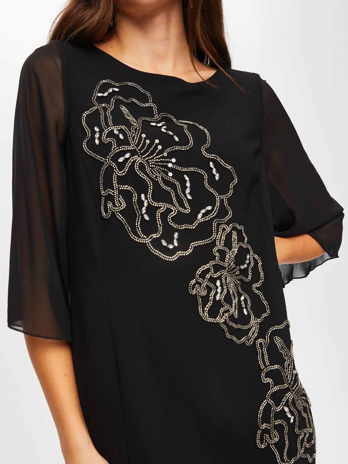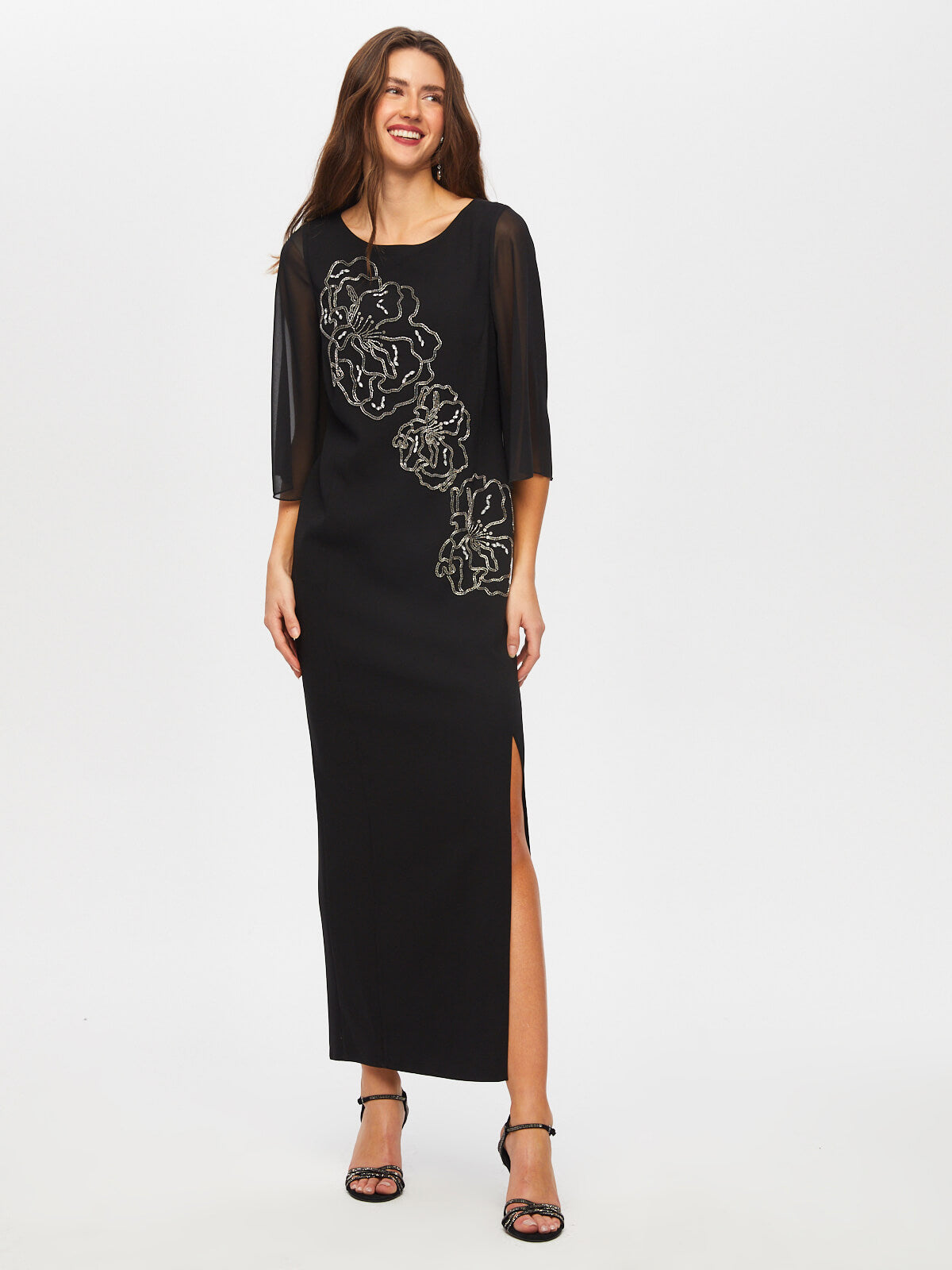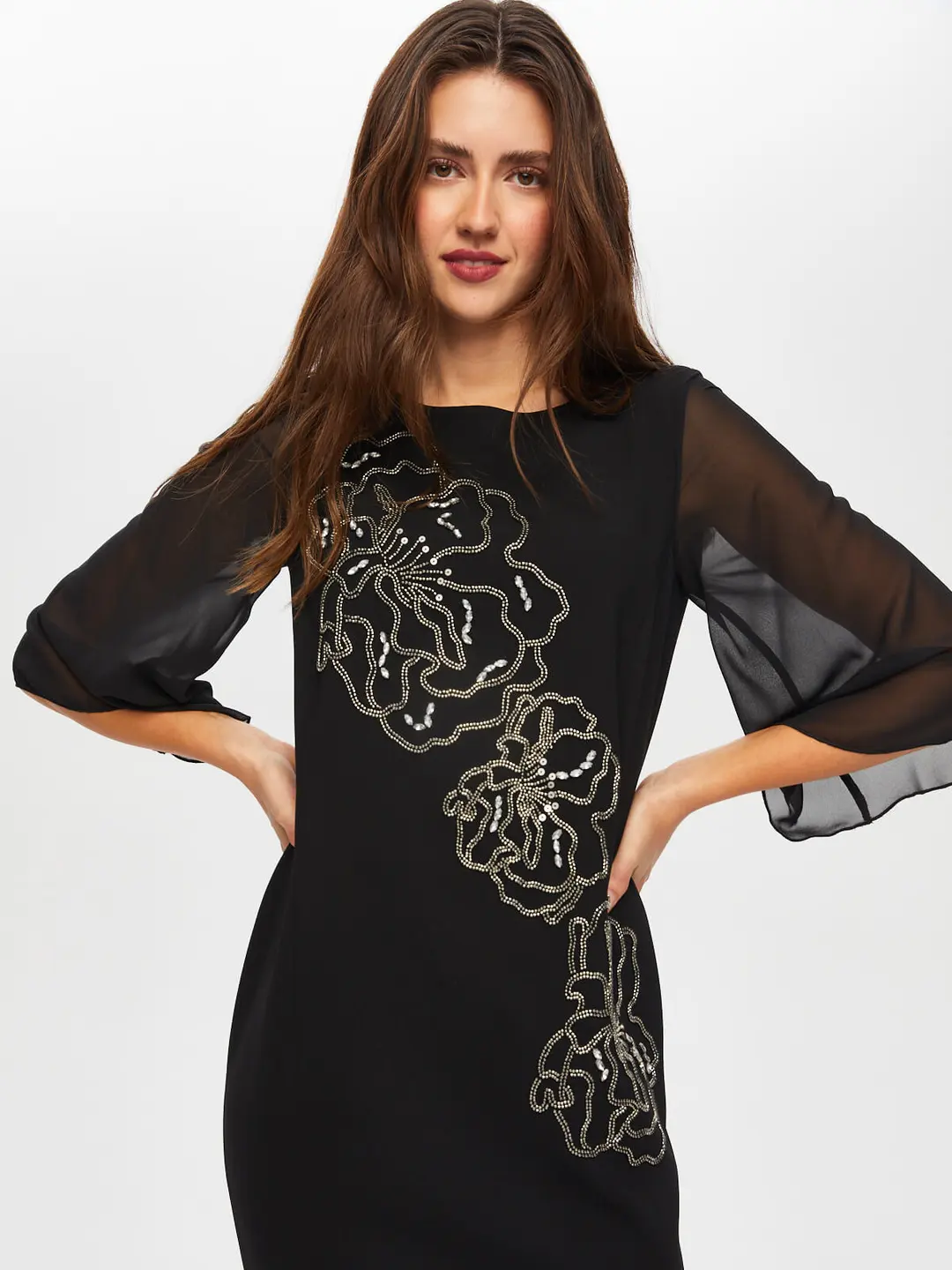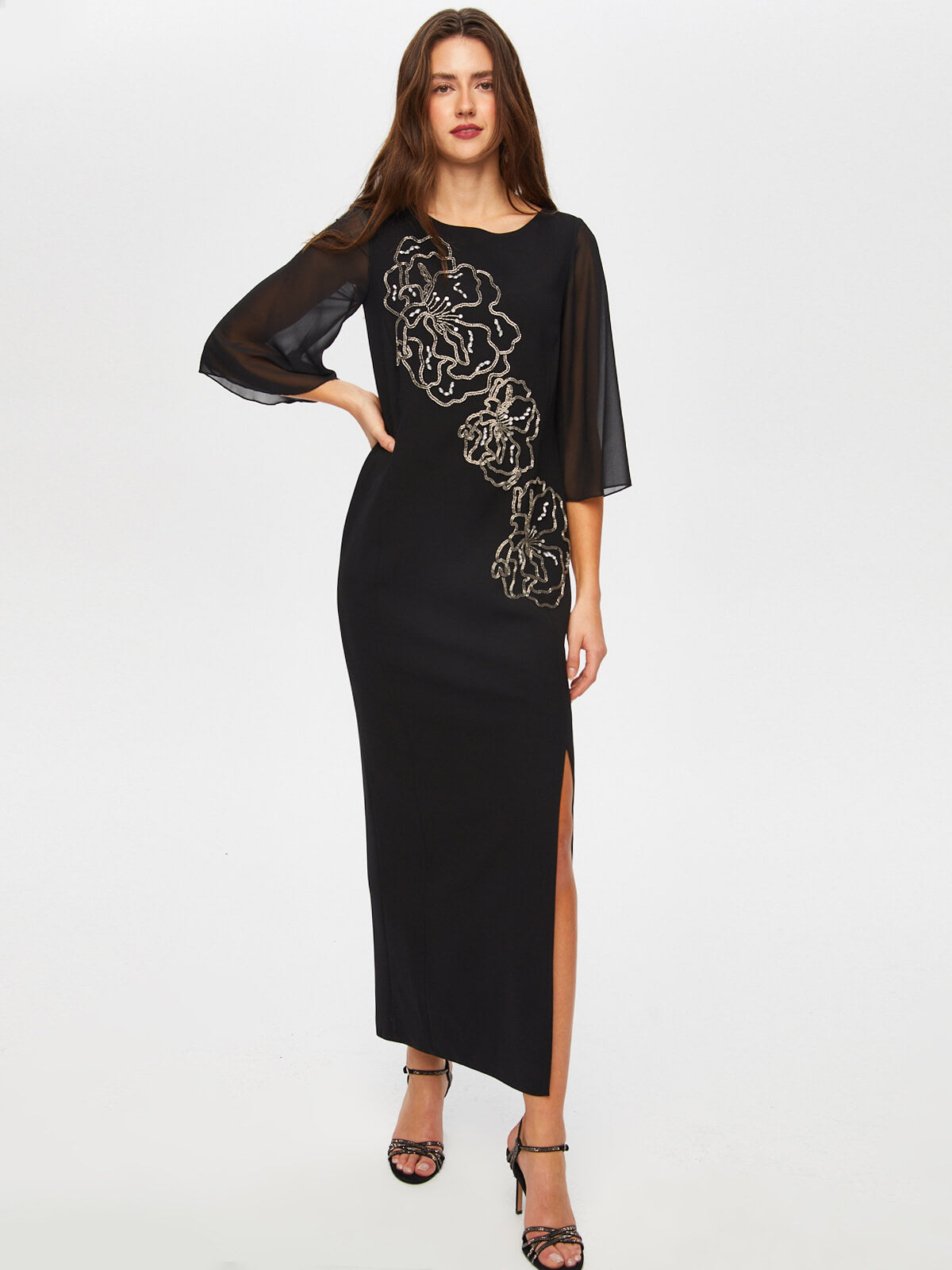 اسم المنتج: فستان سهرة طويل الأكمام من الشيفون مزين بالخرز والأحجار S25ABY008