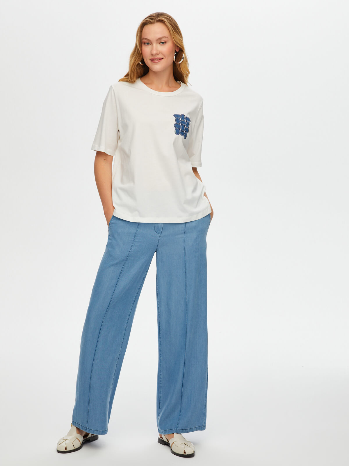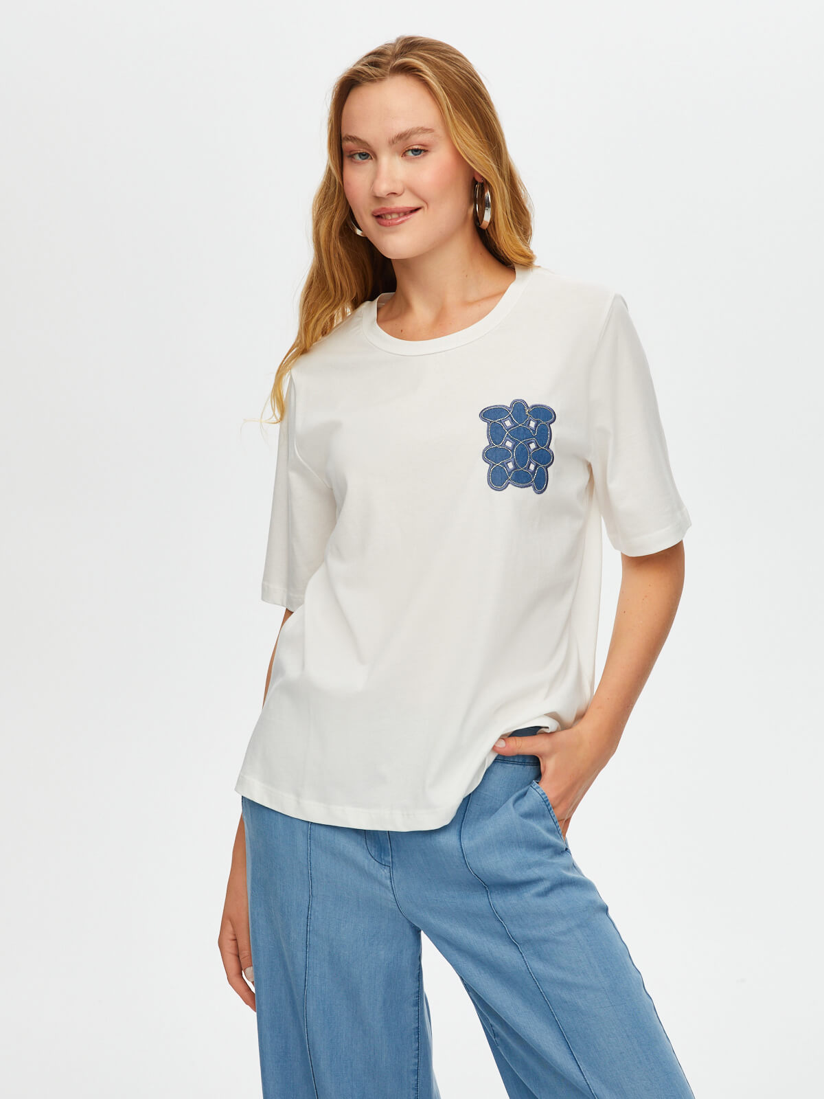اسم المنتج: تي شيرت قطني برقبة دائرية مطرز بتطريزات جين وسلسلة S25TSH082