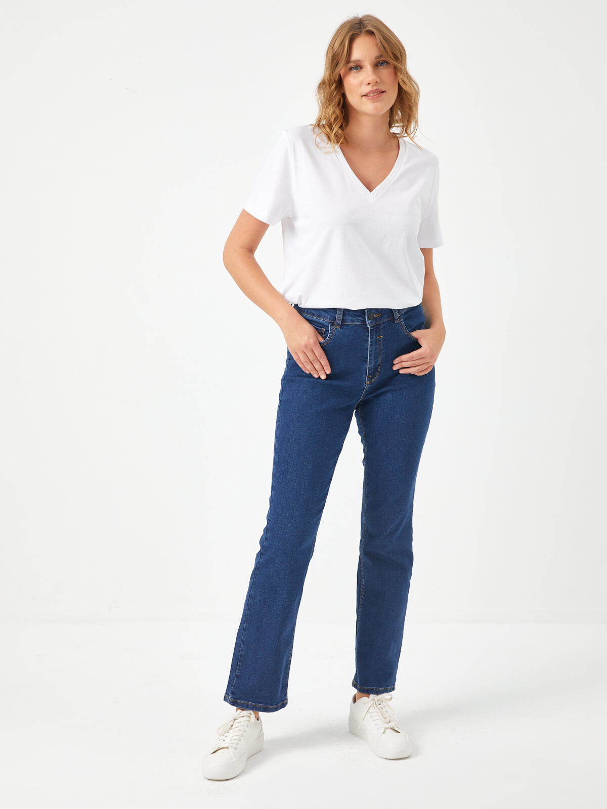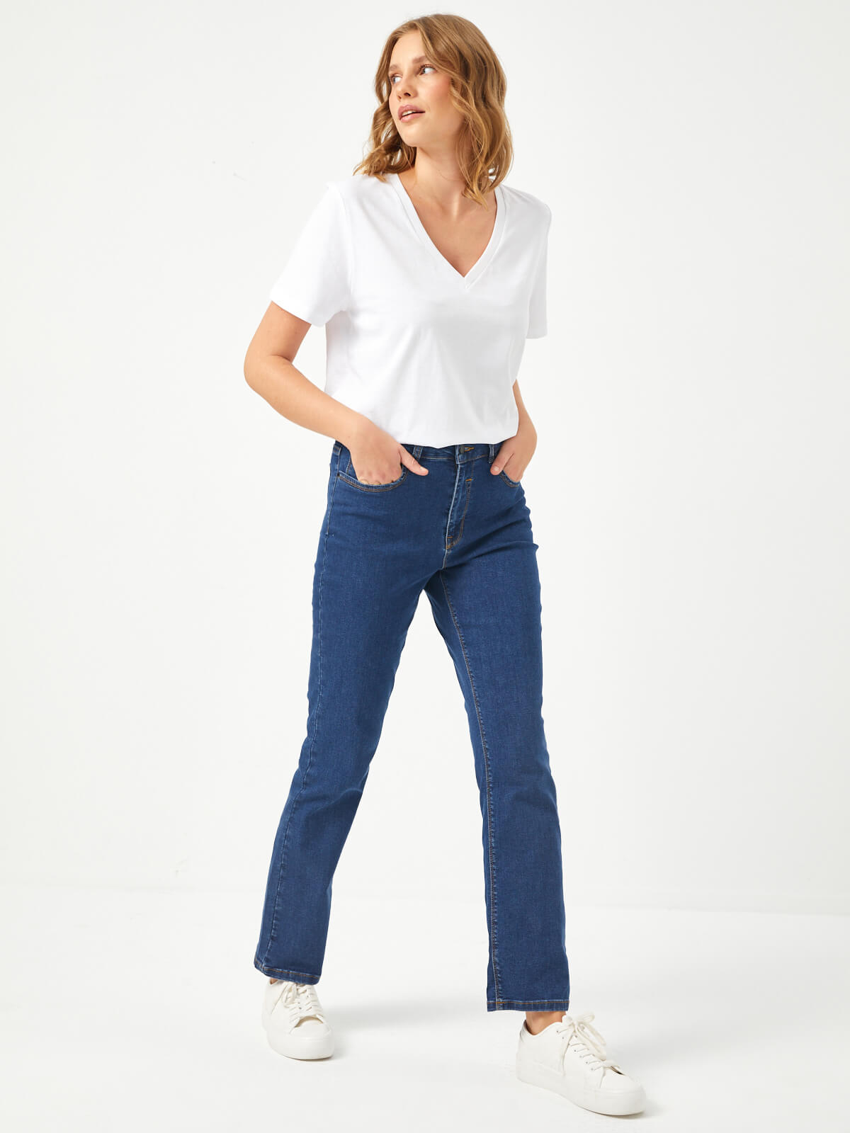 اسم المنتج: بنطلون جينز مستقيم بخصر عادي وطول عادي B00033 مكان الإنتاج: تركيا 98% قطن، 2% إيلاستين  اكوي على...