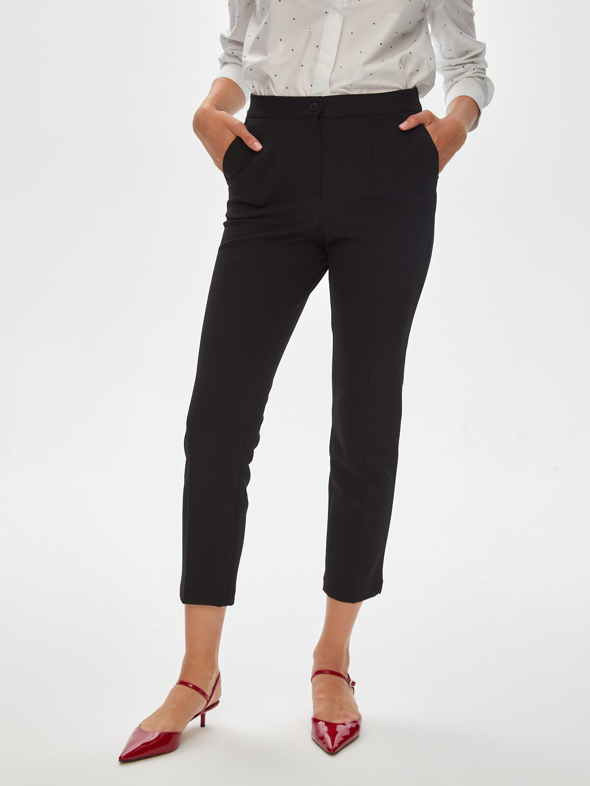 اسم المنتج: بنطال ضيق بقصة مستقيمة مع حزام خصر مطاطي من الخلف B00088