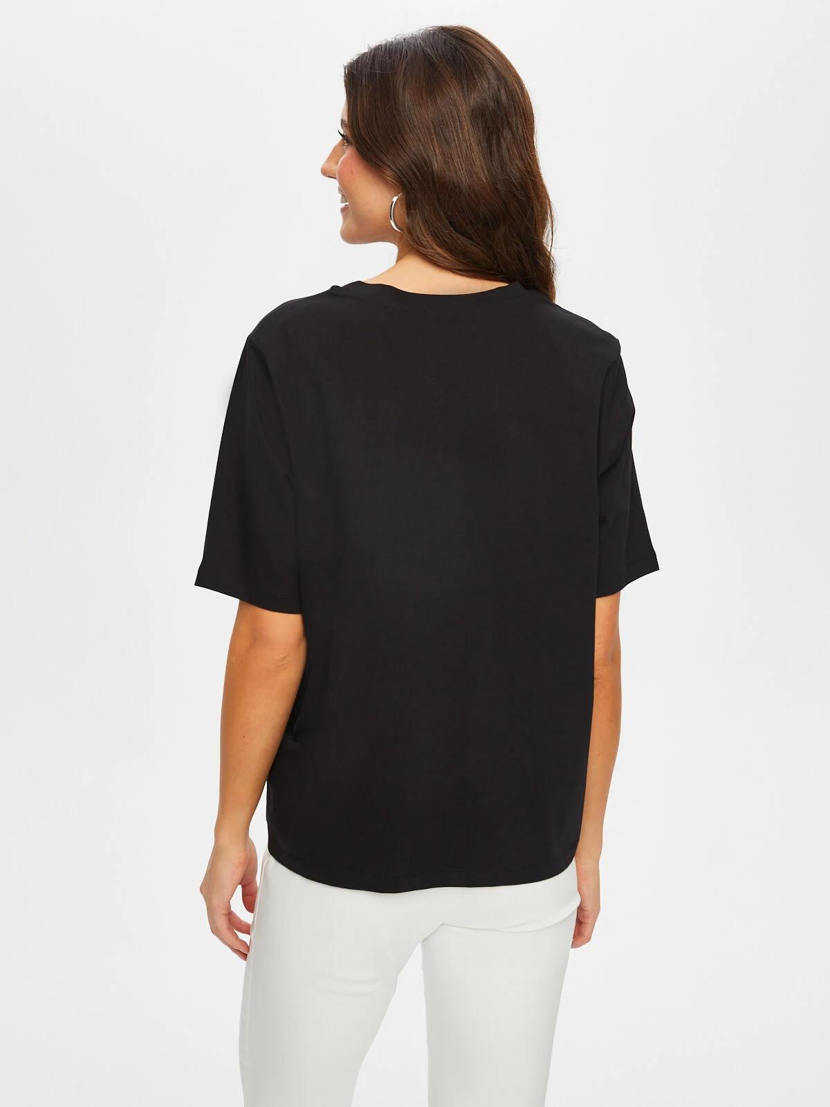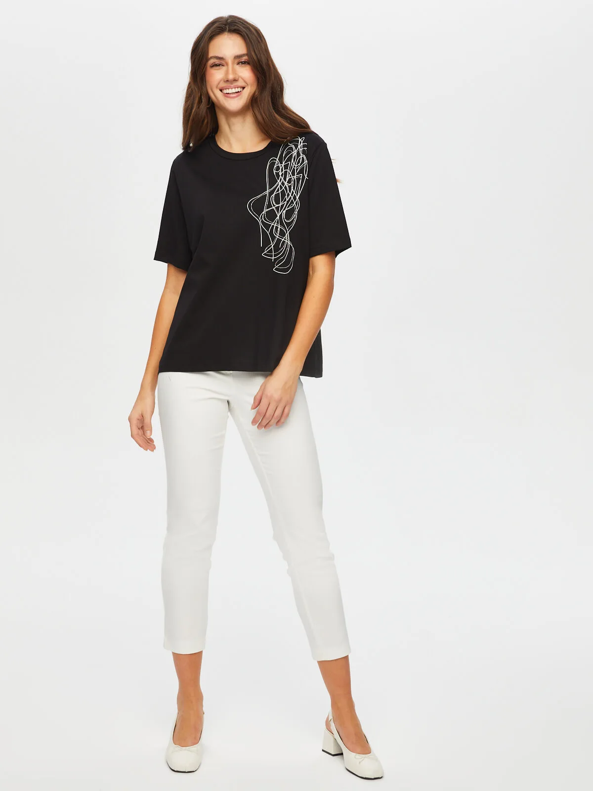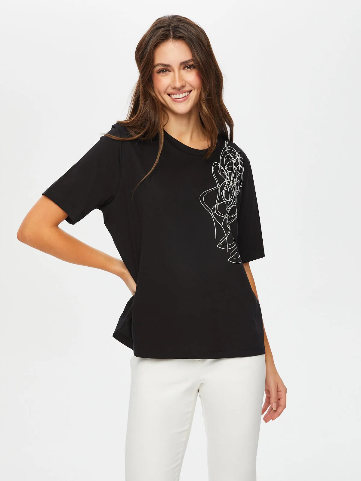 اسم المنتج: تي شيرت بأكمام قصيرة ورقبة دائرية مزينة بتطريز سلسلة مطبوع S25TSH079