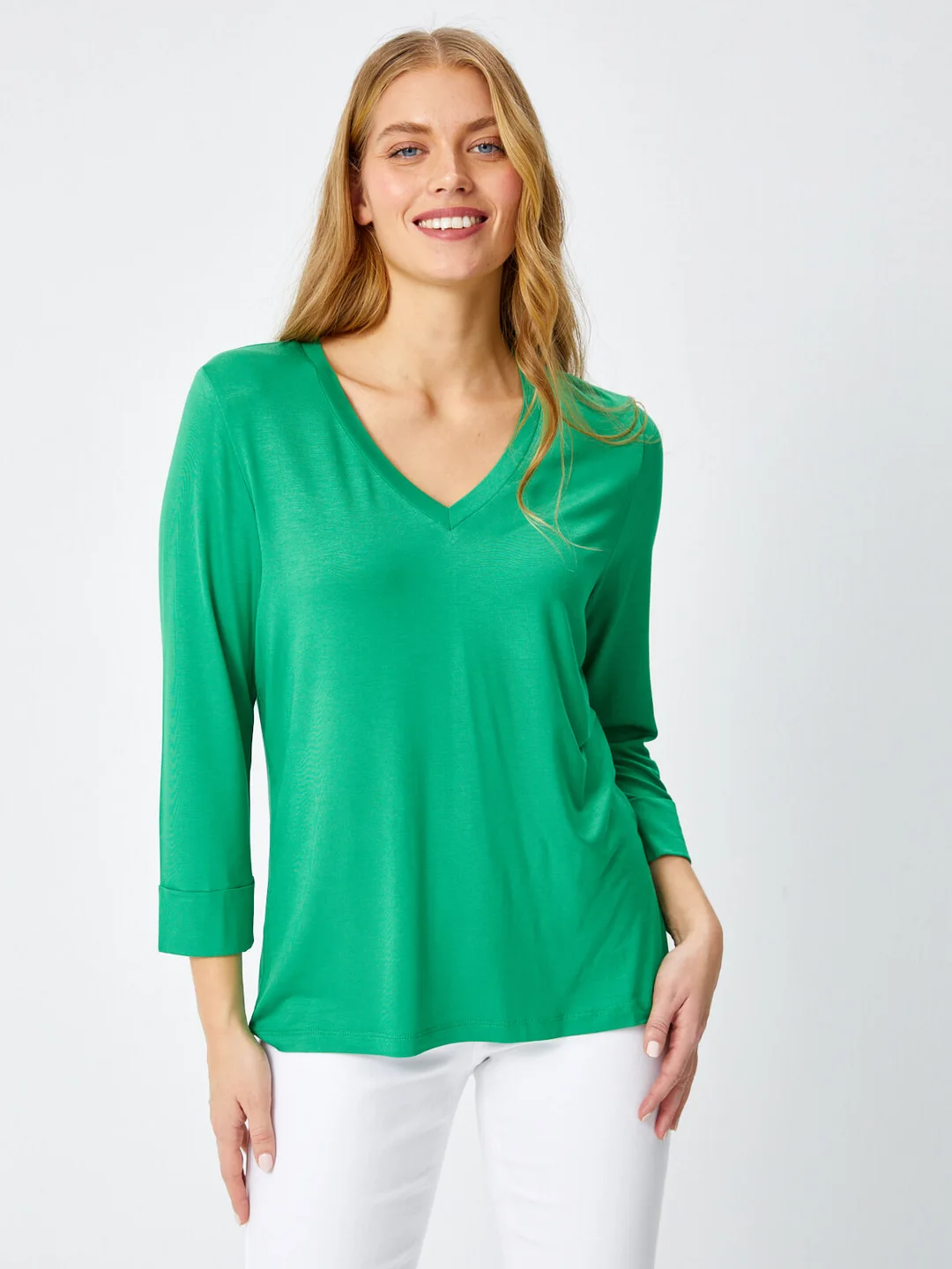 اسم المنتج: تيشيرت بياقة على شكل حرف V وأكمام ثلاثة أرباع 68025