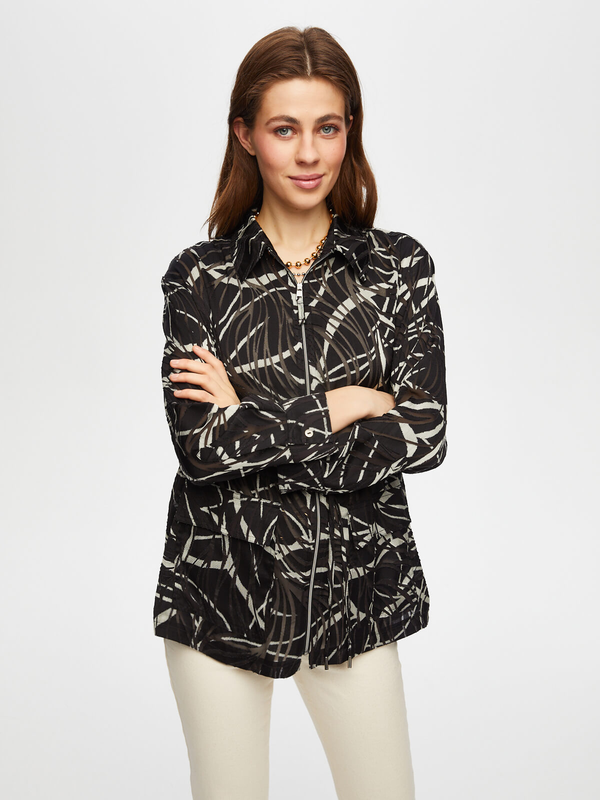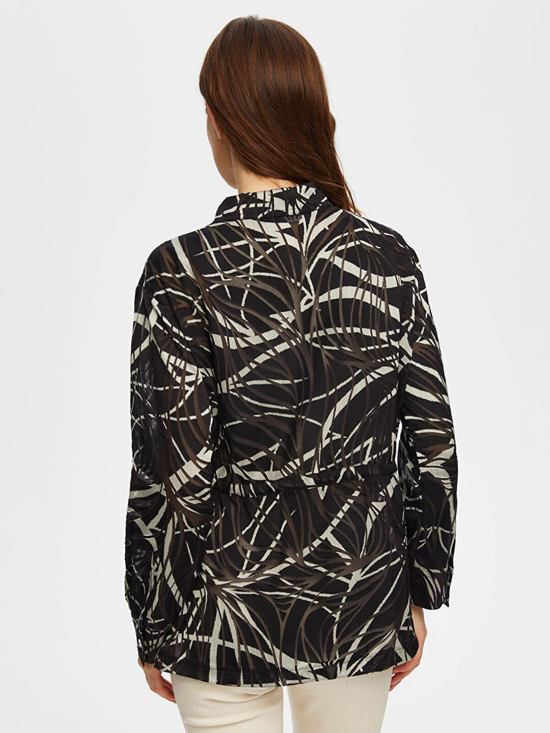 تونيك نسائي من تصميم فائق سونميز، بنقوش ذاتية وخصر مرتفع. 65% رايون 35% بوليستر