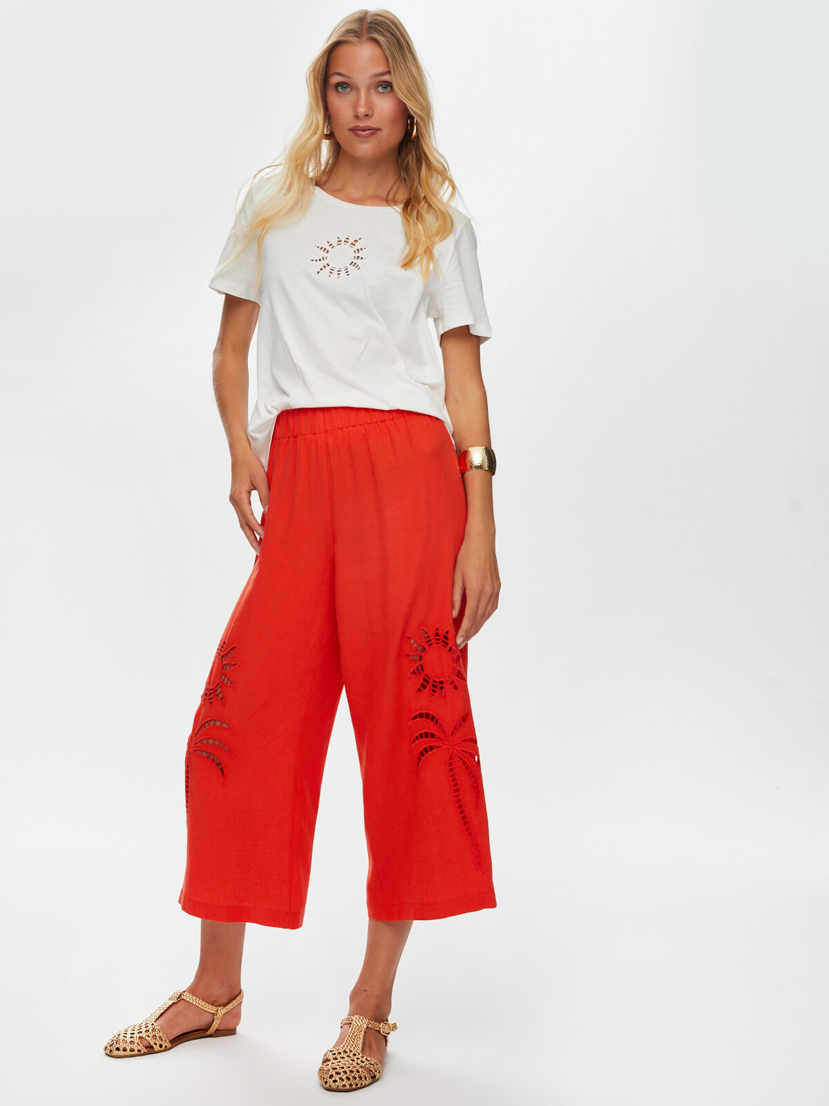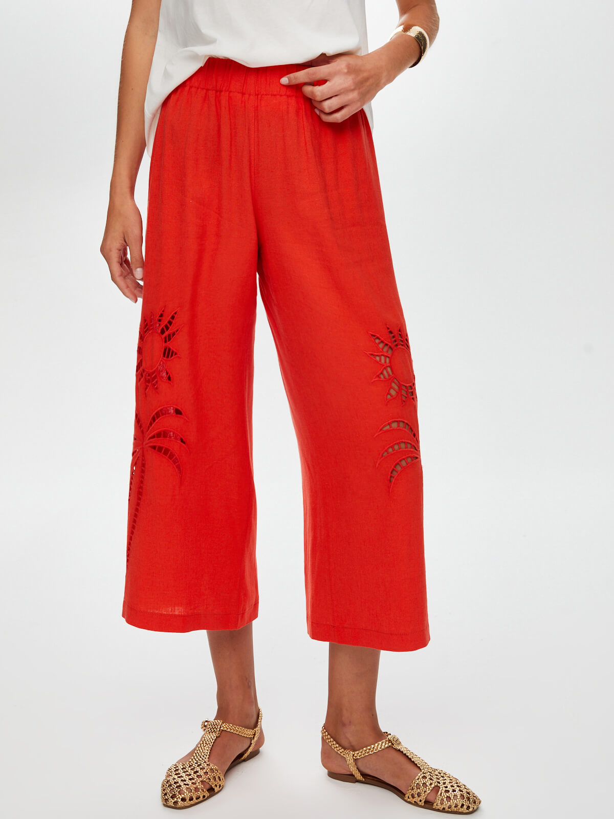 Faik Sönmez بنطال كتان قصير متوسط الطول - صيفي