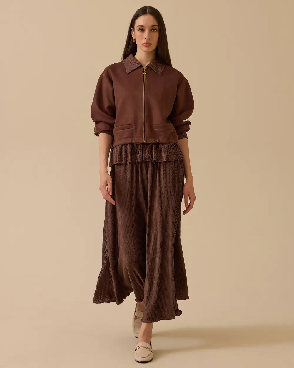 جاكيت من جلد الغزال بتفاصيل الكشكشة