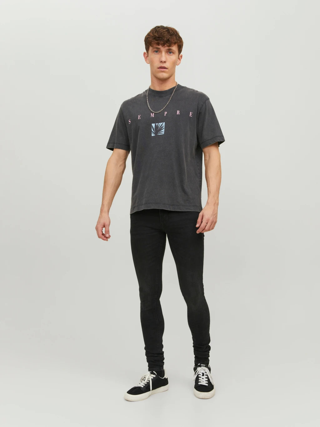 تيشيرت مريح وأنيق؛ مصنوع من قماش جيرسي ناعم الملمس؛ - نوع المنتج: تيشيرت؛ - الرقبة: دائرية؛ - طول الكم: قصير؛ - الغسيل/التشطيب: غسيل حجري لإضفاء مظهر مغسول وممزق؛ - الطباعة: طباعة مطاطية لملمس ناعم؛ 100% قطن؛