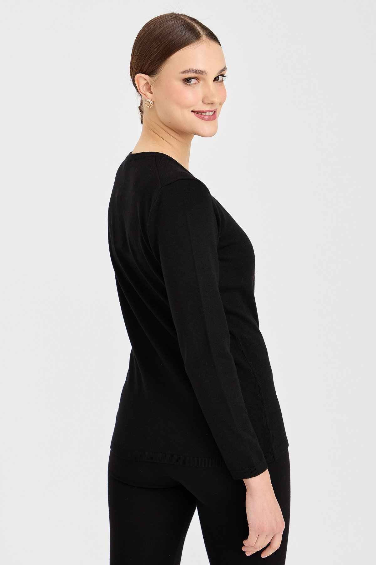 نمط بلوزة نسائية أساسية بأكمام طويلة وياقة دائرية من الليكرا