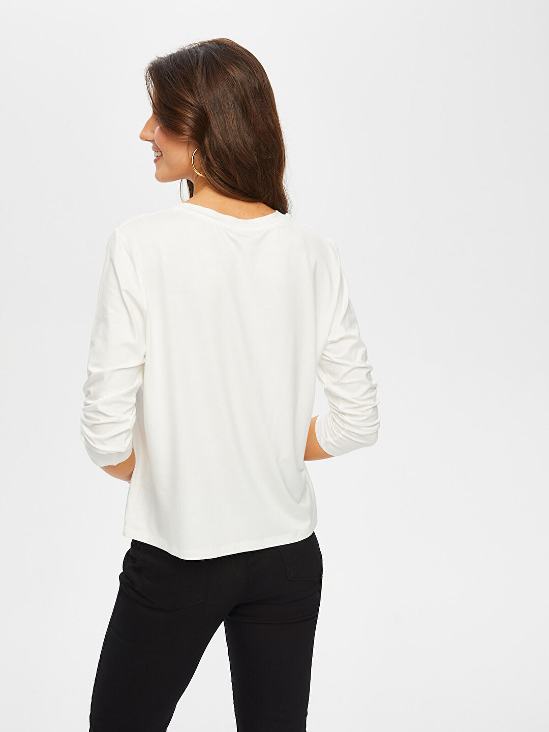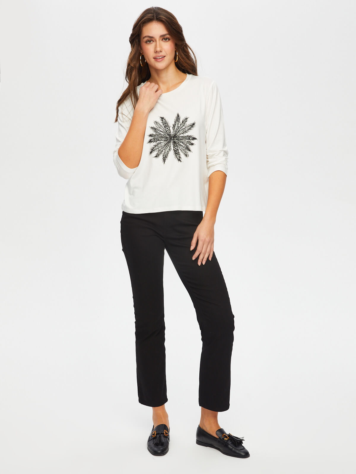 تيشيرت نسائي برقبة دائرية مزين بتطريز دانتيل زهري في الأمام - فائق سونميز