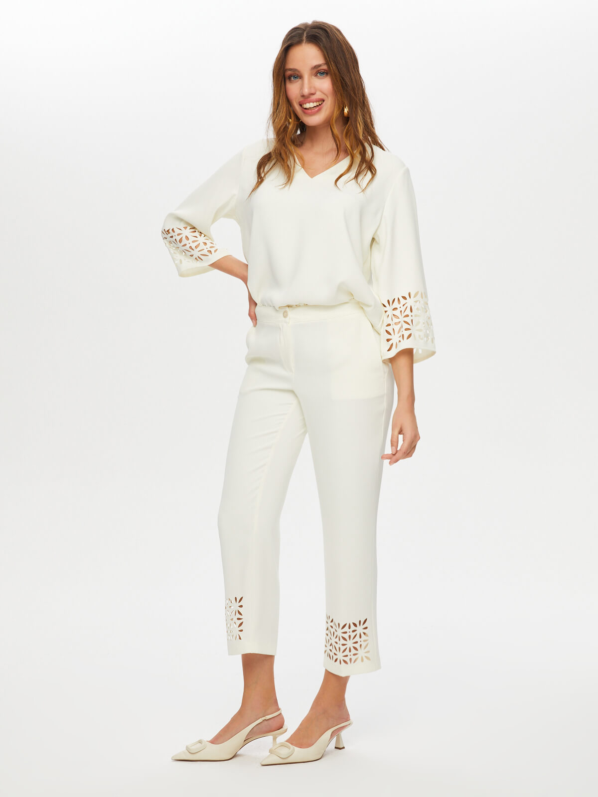 بنطلون نسائي ضيق بفتحات في الحافة - فائق سونميز
