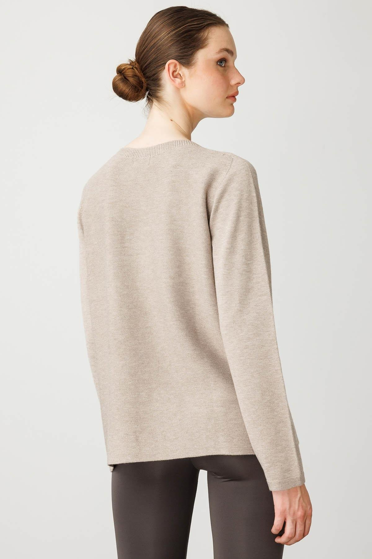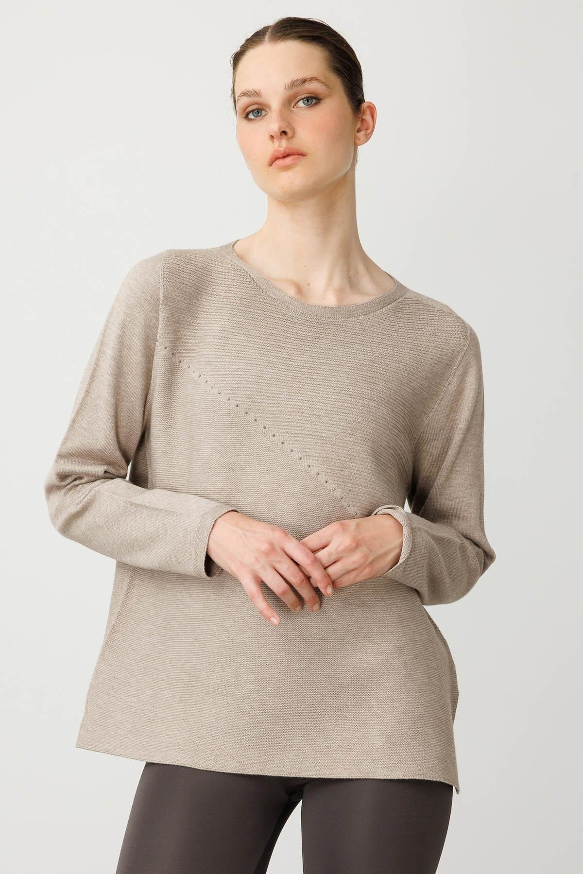 نمط سترة نسائية برقبة دائرية مزينة بخطوط مائلة