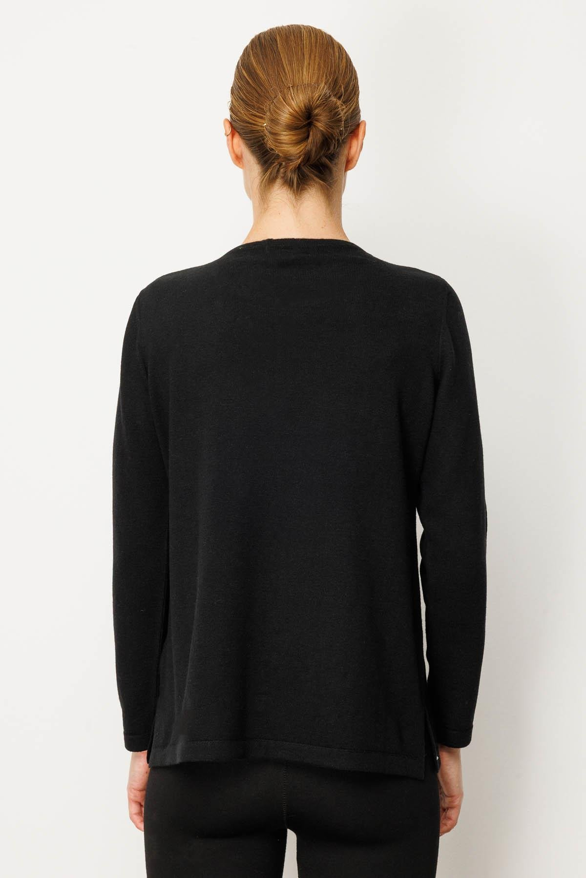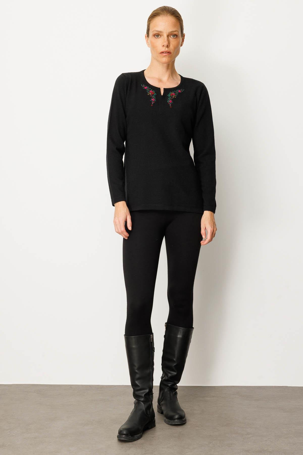 بلوزة صوفية نسائية برقبة دائرية ونقشة مطرزة على خط العنق