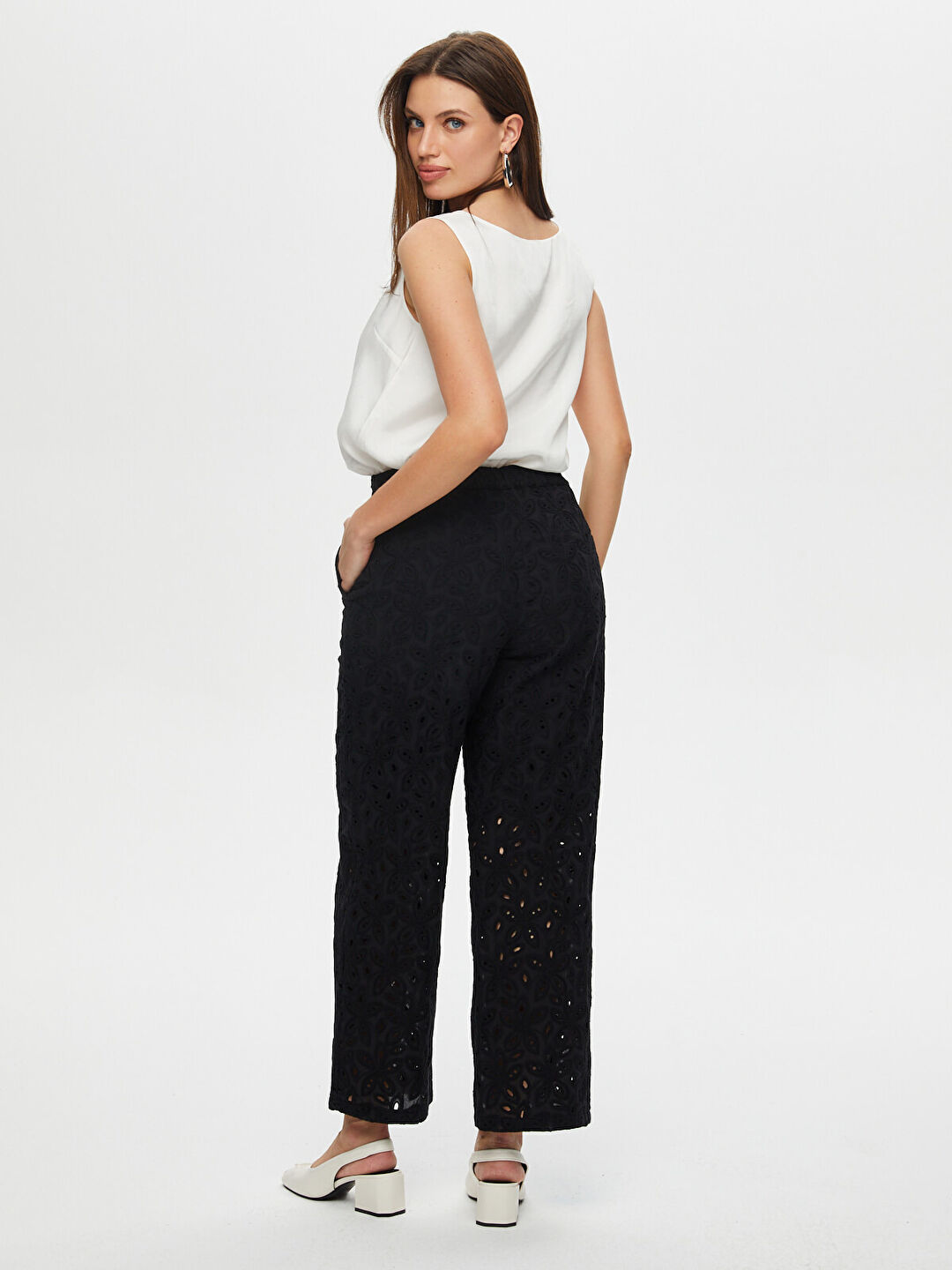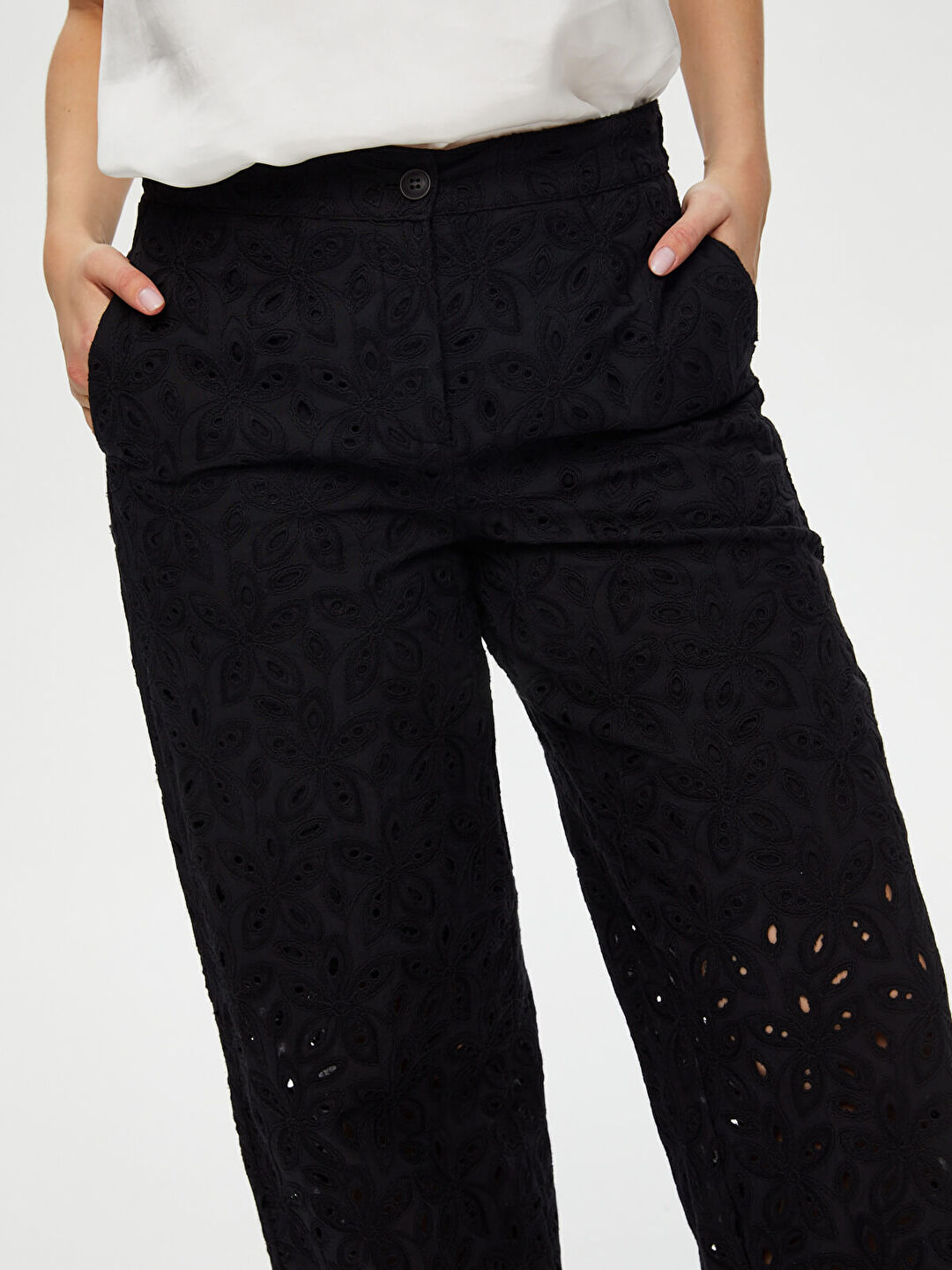بنطلون نسائي واسع الساقين بتفاصيل مطرزة من تصميم فائق سونميز