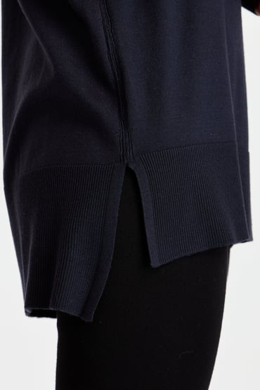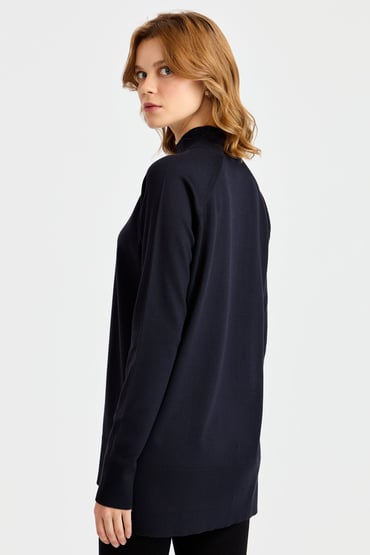 كنزة نسائية بنصف ياقة عالية ونقشة فتحات جانبية