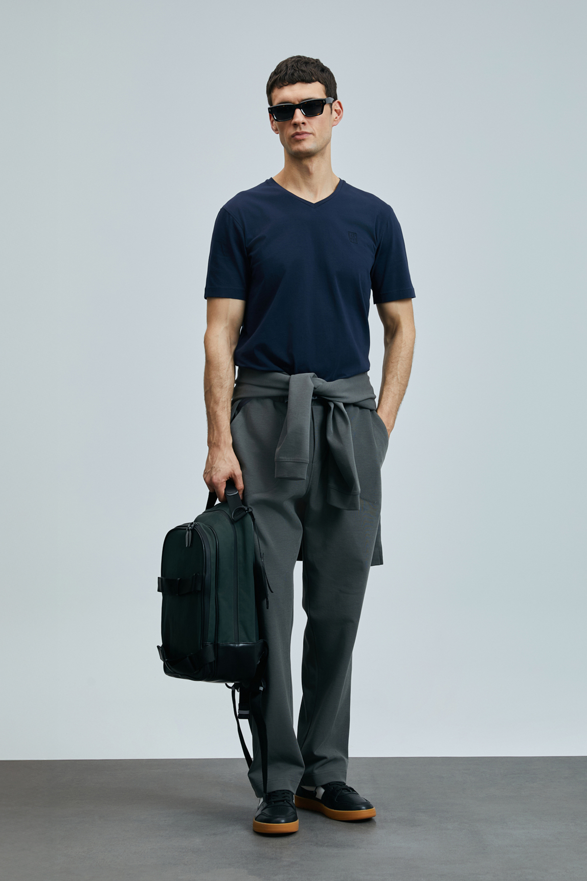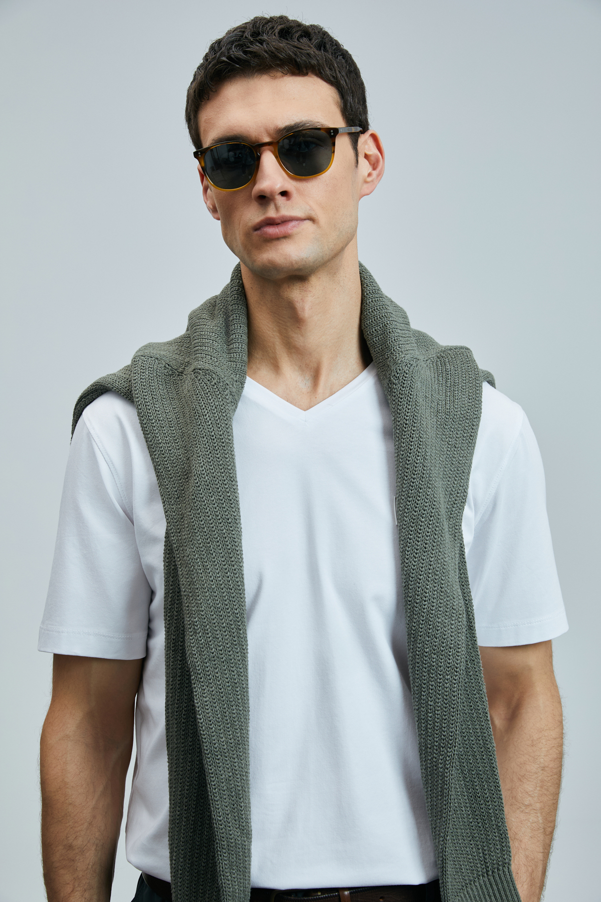 تيشيرت رجالي من لوفيان بتصميم بسيط، بياقة على شكل حرف V وأكمام قصيرة - مناسب للارتداء اليومي